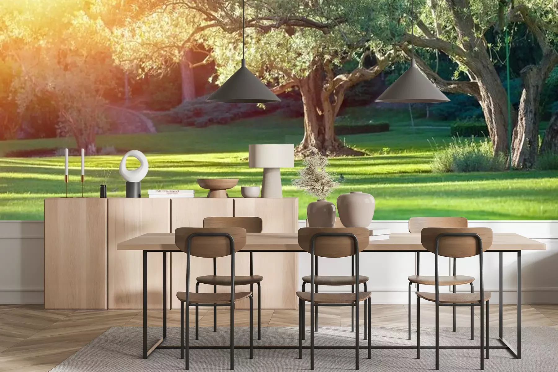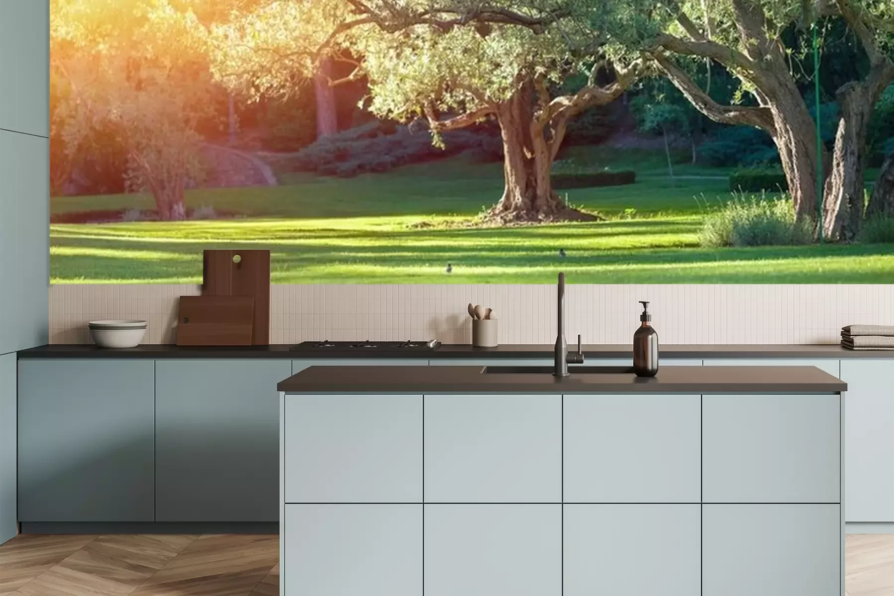 Papier peint  Herbe dans le jardin et arbres