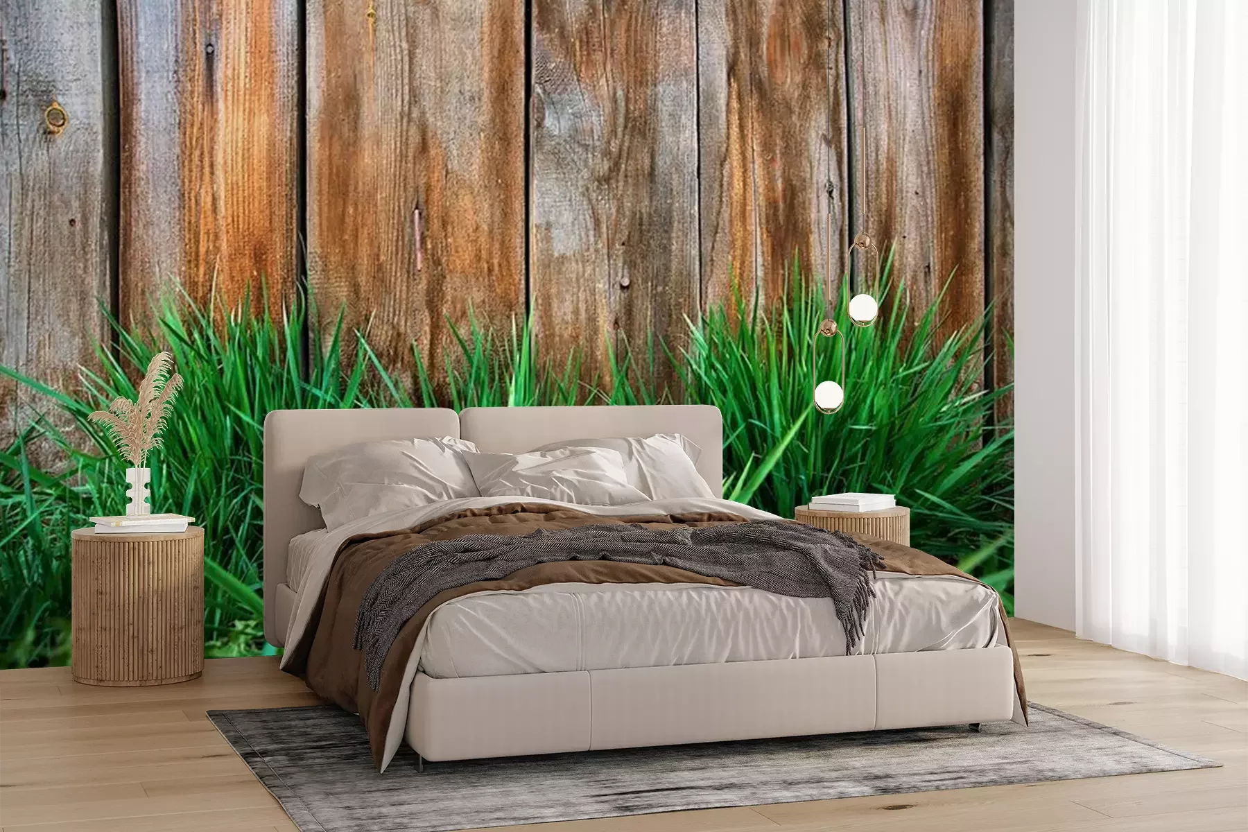 Papier peint  Herbe sur un fond de bois