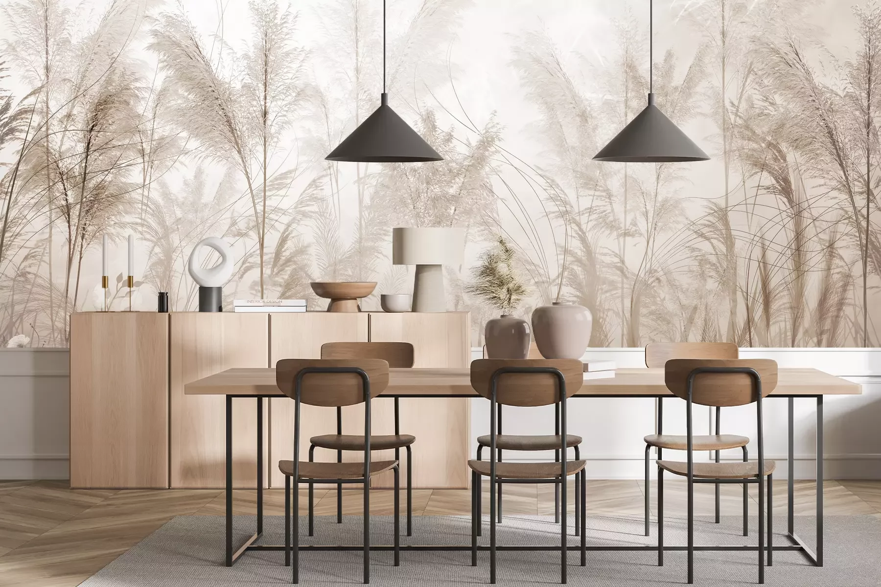*Le rabais ne s'applique pas aux adhésifs, accessoires et cartes-cadeaux.Un papier peint beige au motif botanique est une proposition qui s’adapte à de nombreux styles de décoration. Il est important de souligner que les motifs inspirés de la nature suscitent un intérêt constant, ce qui en fait une excellente solution pour décorer votre intérieur durant de longues années. Le papier peint boho que nous avons sélectionné, représentant une prairie fleurie avec des fleurs et des herbes de la pampa, introduira une ambiance bucolique et insouciante dans votre pièce. Ce motif botanique est réalisé dans des tons beiges délicats ce qui permet à cette décoration murale, bien qu’expressive, de s’intégrer harmonieusement dans l’espace. Nous avons préparé plusieurs idées pour montrer dans quels intérieurs ce papier peint plantes sera le mieux mis en valeur. Il s’agit notamment d’un excellent motif pour décorer un salon ou une chambre à coucher. C’est l’une des solutions les plus simples de transformer un intérieur jusqu’ici ordinaire en un véritable havre de paix. Associé à des meubles en bois ou en rotin, ce motif sera absolument magnifique. Ce papier peint floral trouvera également parfaitement sa place dans une salle à manger chaleureuse. Les fleurs formeront un fond subtil pour les repas en famille, favorisant une atmosphère calme et relaxante. Bien que nous ayons mentionné plus tôt qu’il s’agit d’un papier peint boho, ce motif que nous proposons s’adapte à divers styles de décoration. Une prairie fleurie est un motif idéal pour compléter les intérieurs de style rétro ou éco, où les meubles en bois et les textiles aux tons chauds prédominent. Dans un tout autre style, les intérieurs modernes et minimalistes misant sur des tons beiges et crème pourront eux aussi profiter de notre papier peint beige. Une telle prairie permettra de créer une décoration monochrome au caractère élégant. Étant donné que la nature a un effet apaisant et relaxant, c’est également une excellente idée pour décorer un bureau à domicile. Vous serez surpris de voir à quel point un tel motif végétal peut transformer cette partie de la maison. Notre papier peint fleurs y introduira une ambiance chaleureuse et paisible, rendant les heures travaillées bien plus agréables.