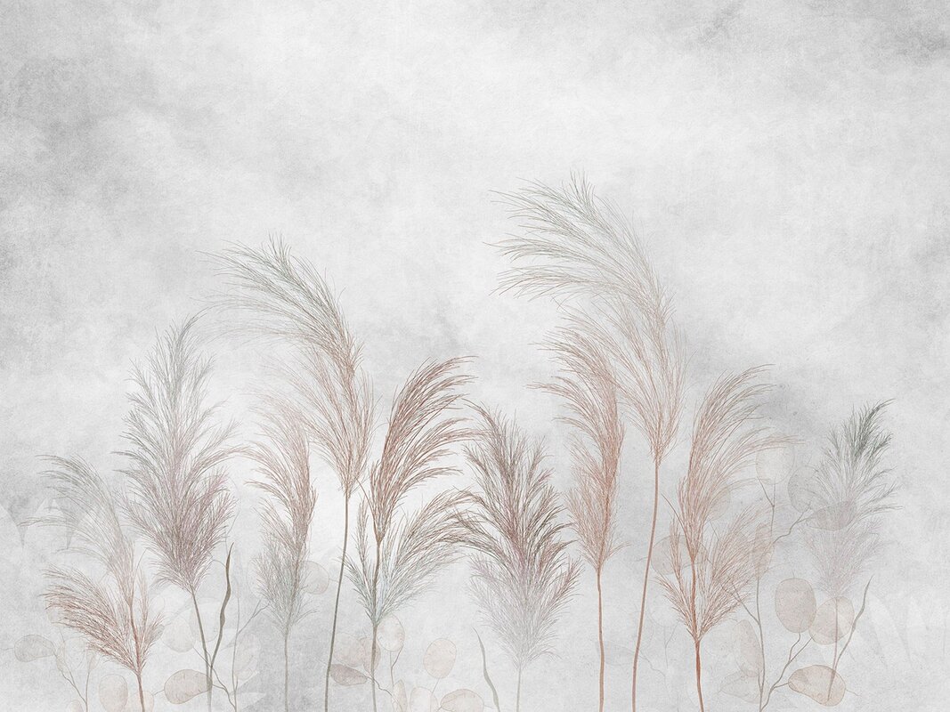 Papier peint : Herbes et Feuilles d'Eucalyptus sur un Fond en Béton