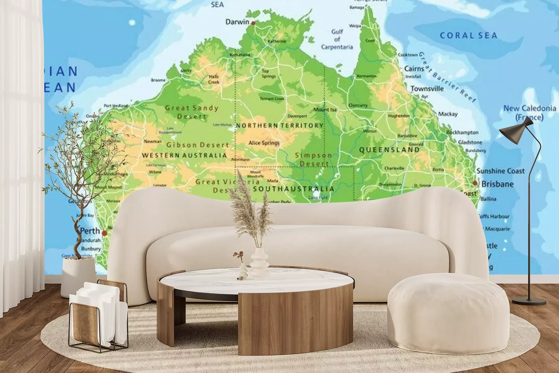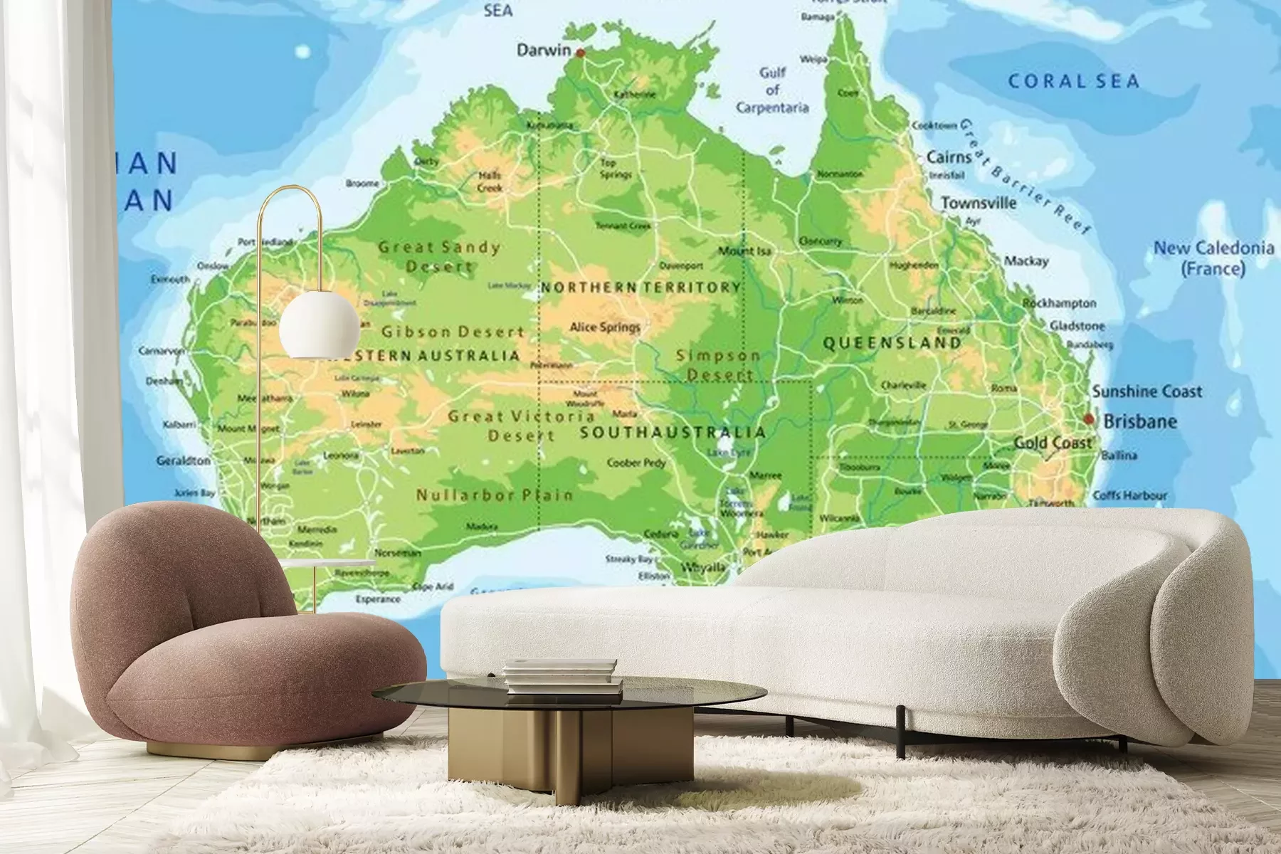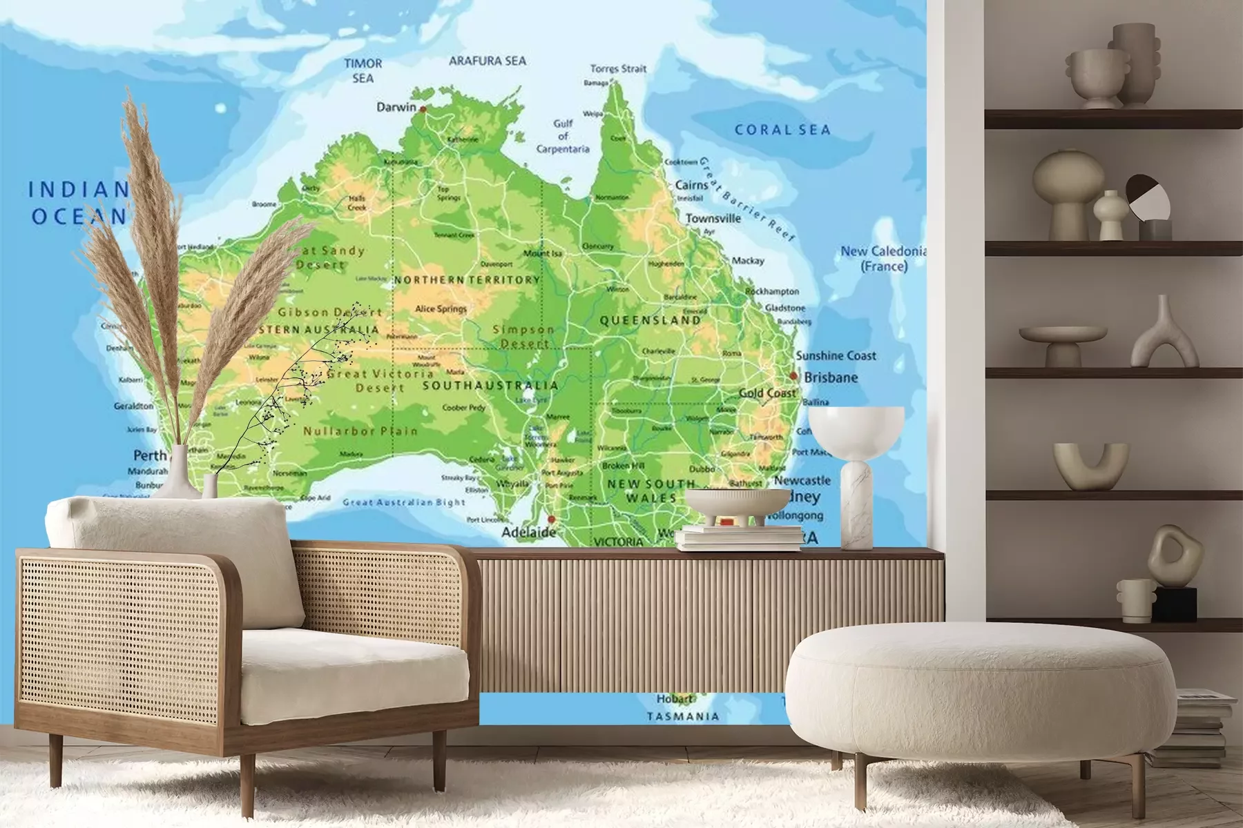Papier peint  High detailed Australia physical map with labeling.