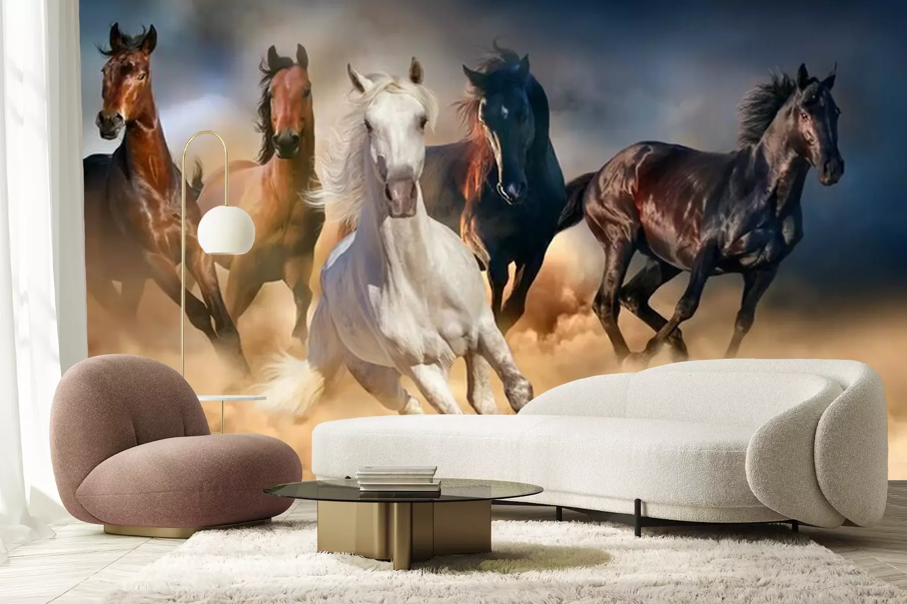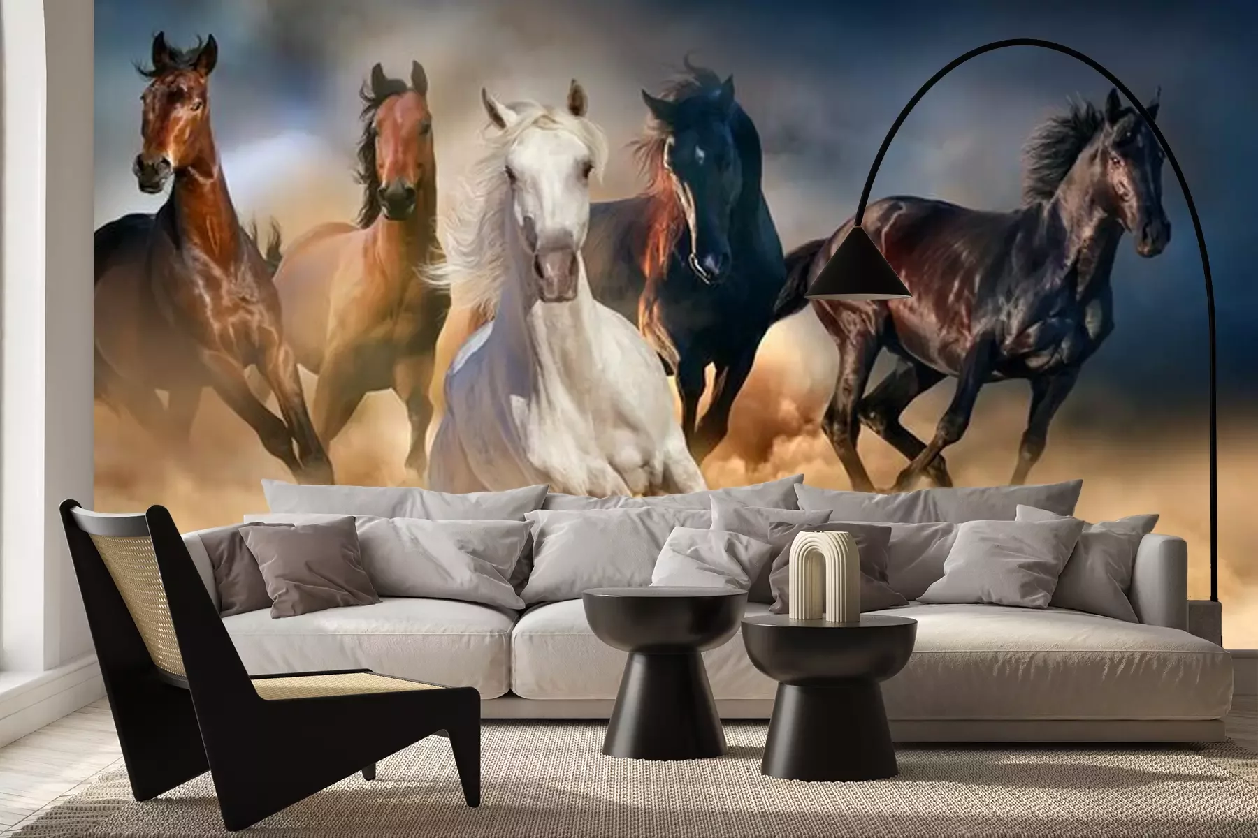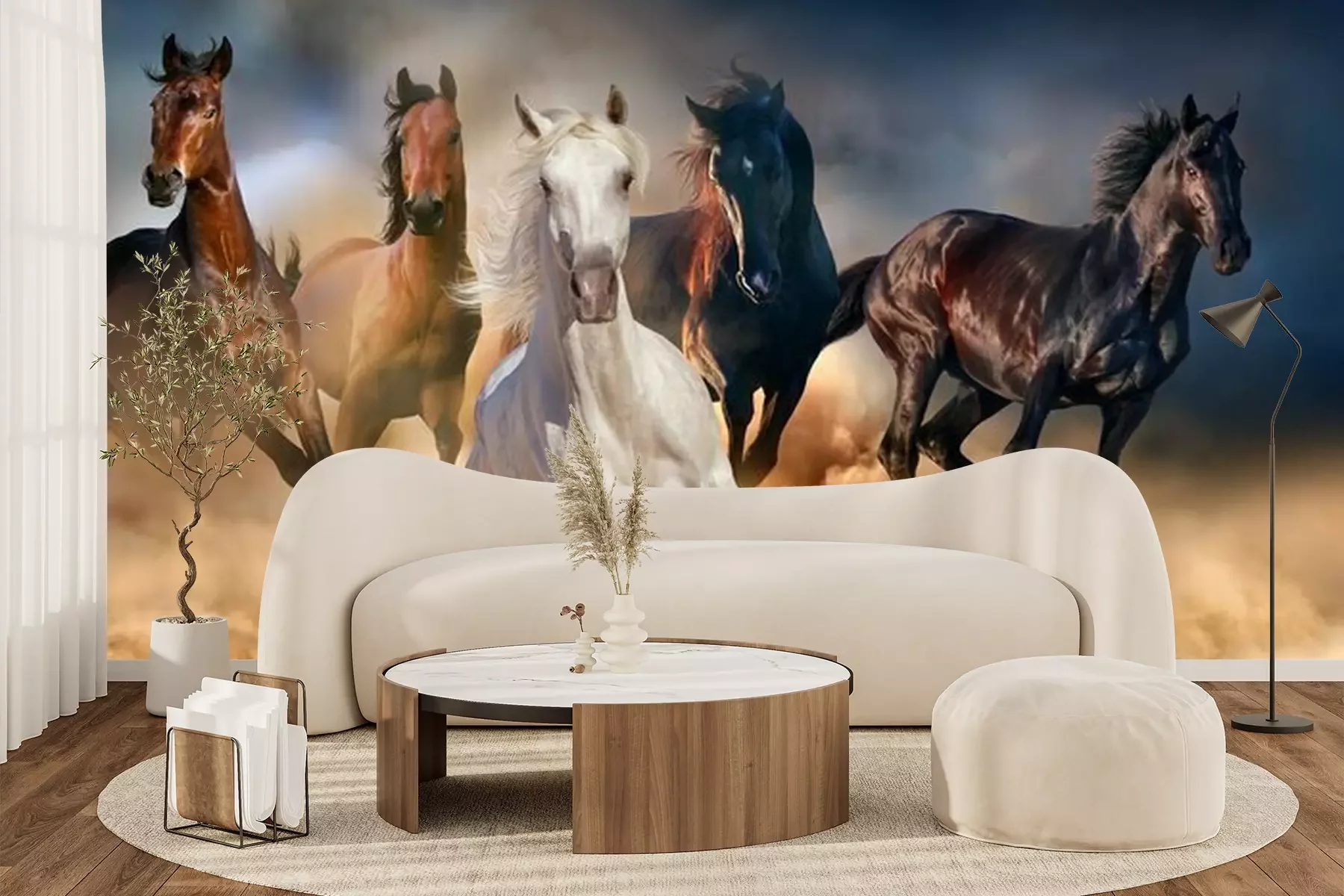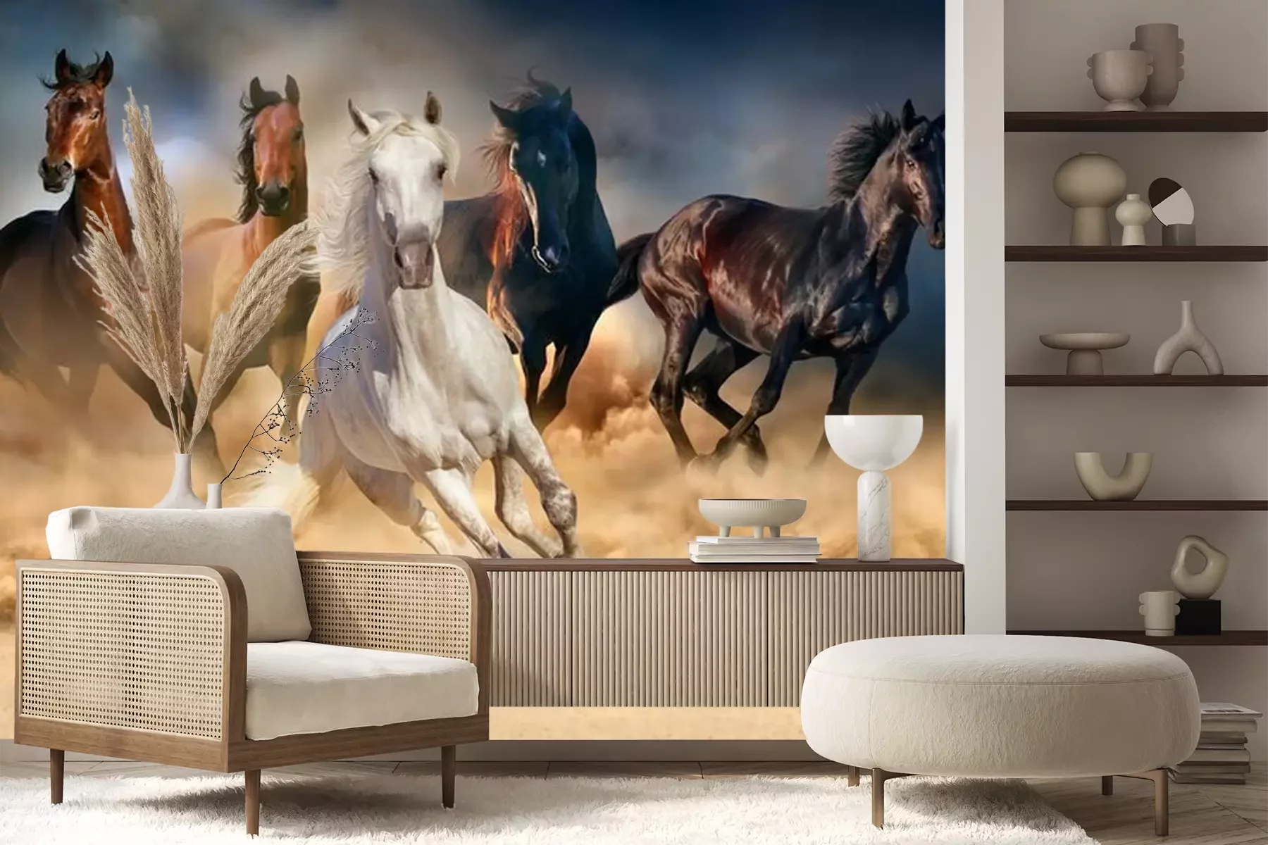 Papier peint  Horse herd run in desert sand storm against dramatic sky