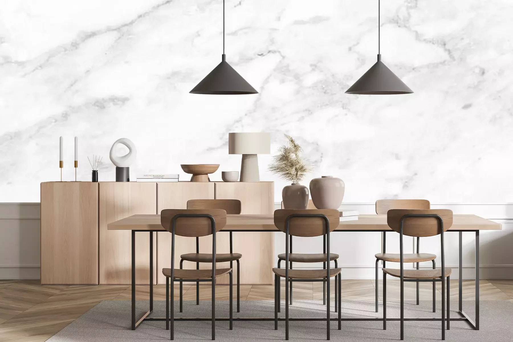 Papier peint  Illusion de marbre blanc