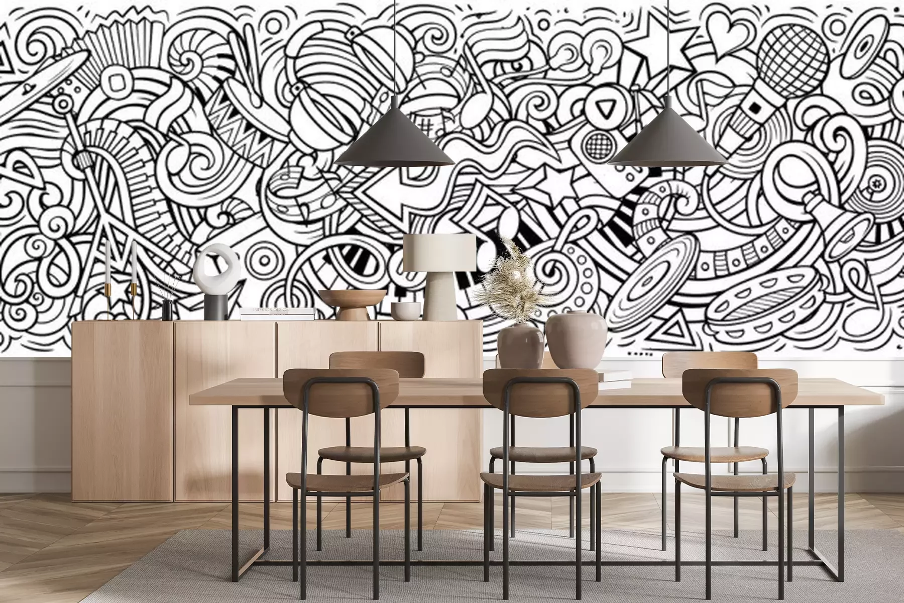 Papier peint  Illustration en noir et blanc avec un motif musical
