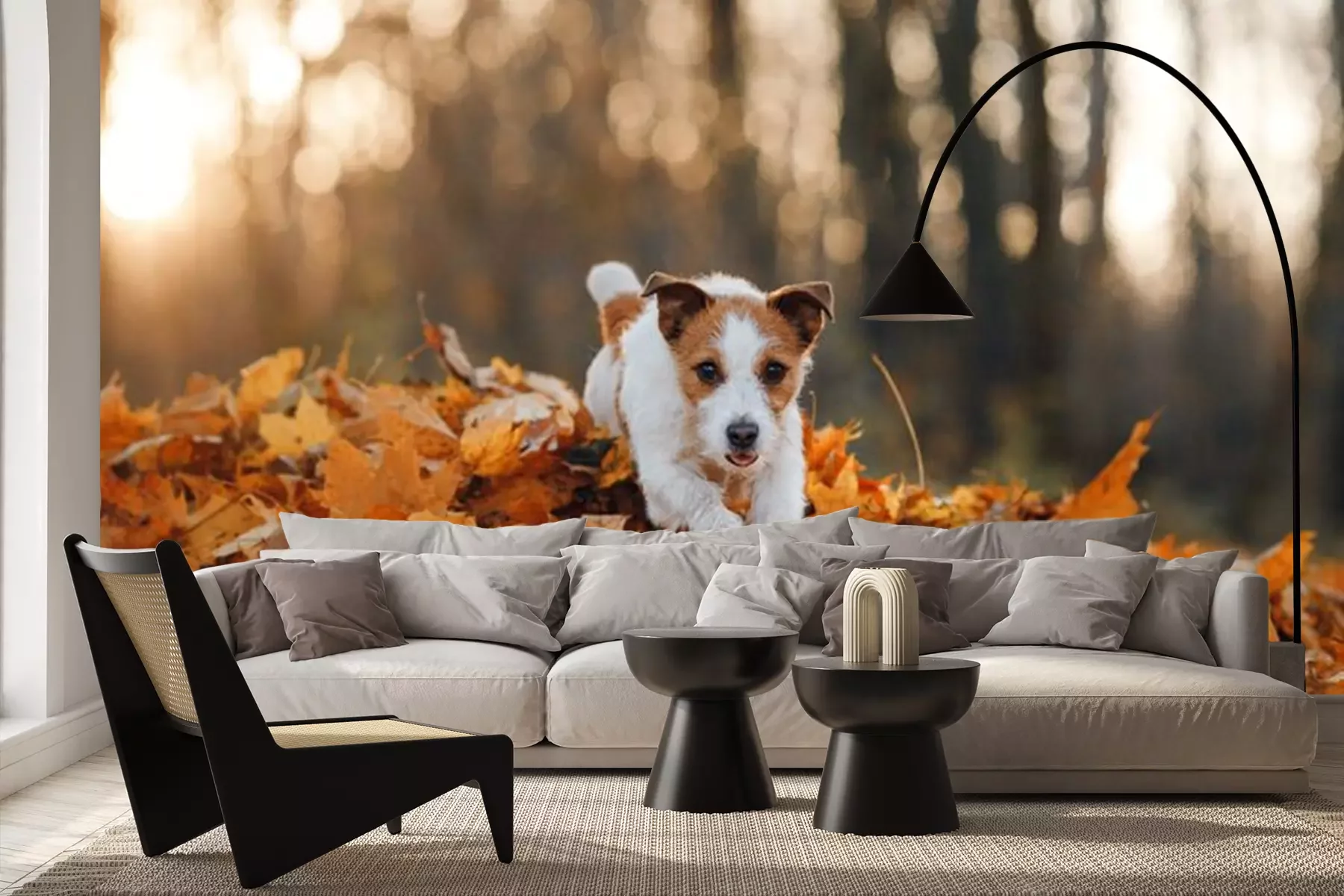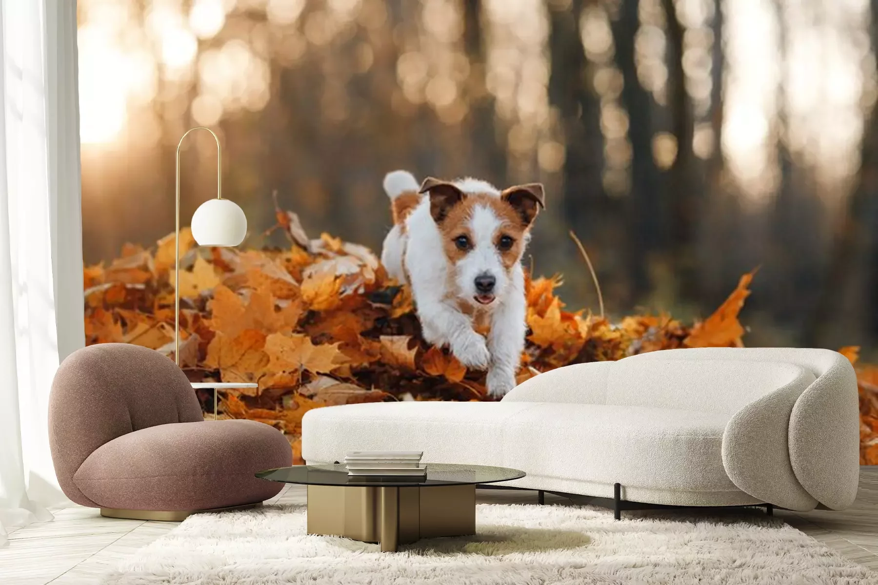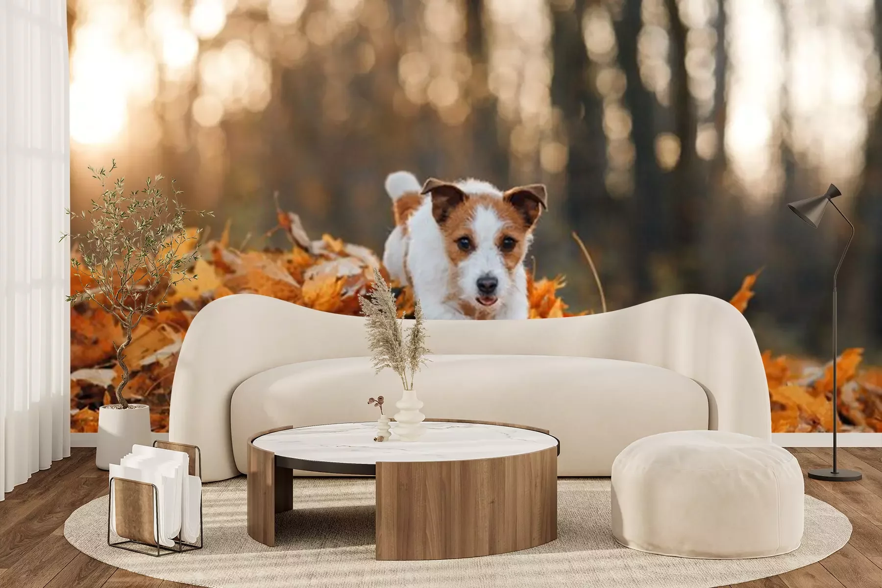 Papier peint  Jack russell terrier courant dans un parc en automne