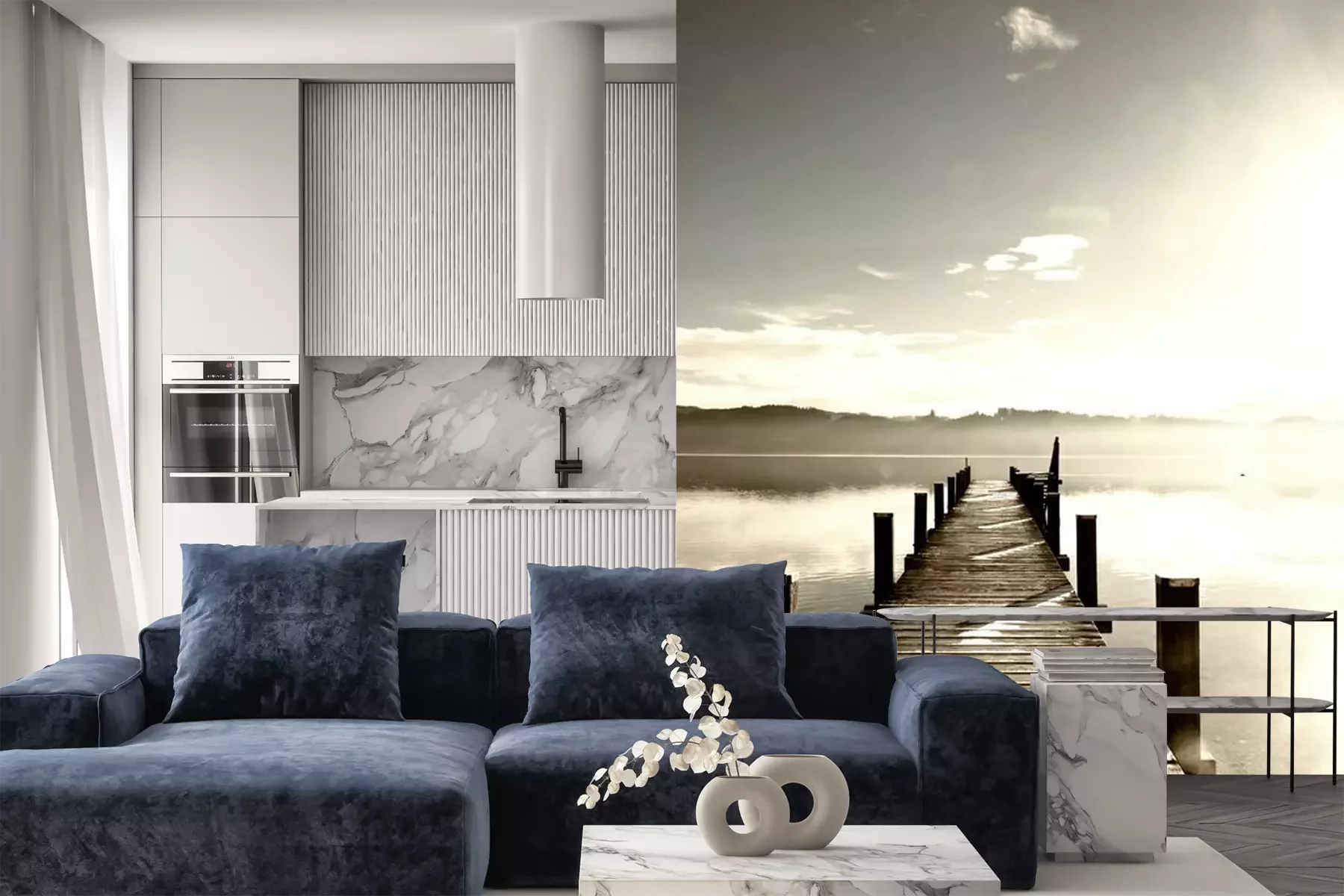 Papier peint  Jetée en bois sur un lac