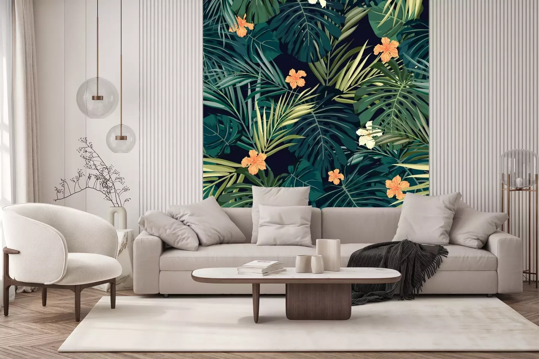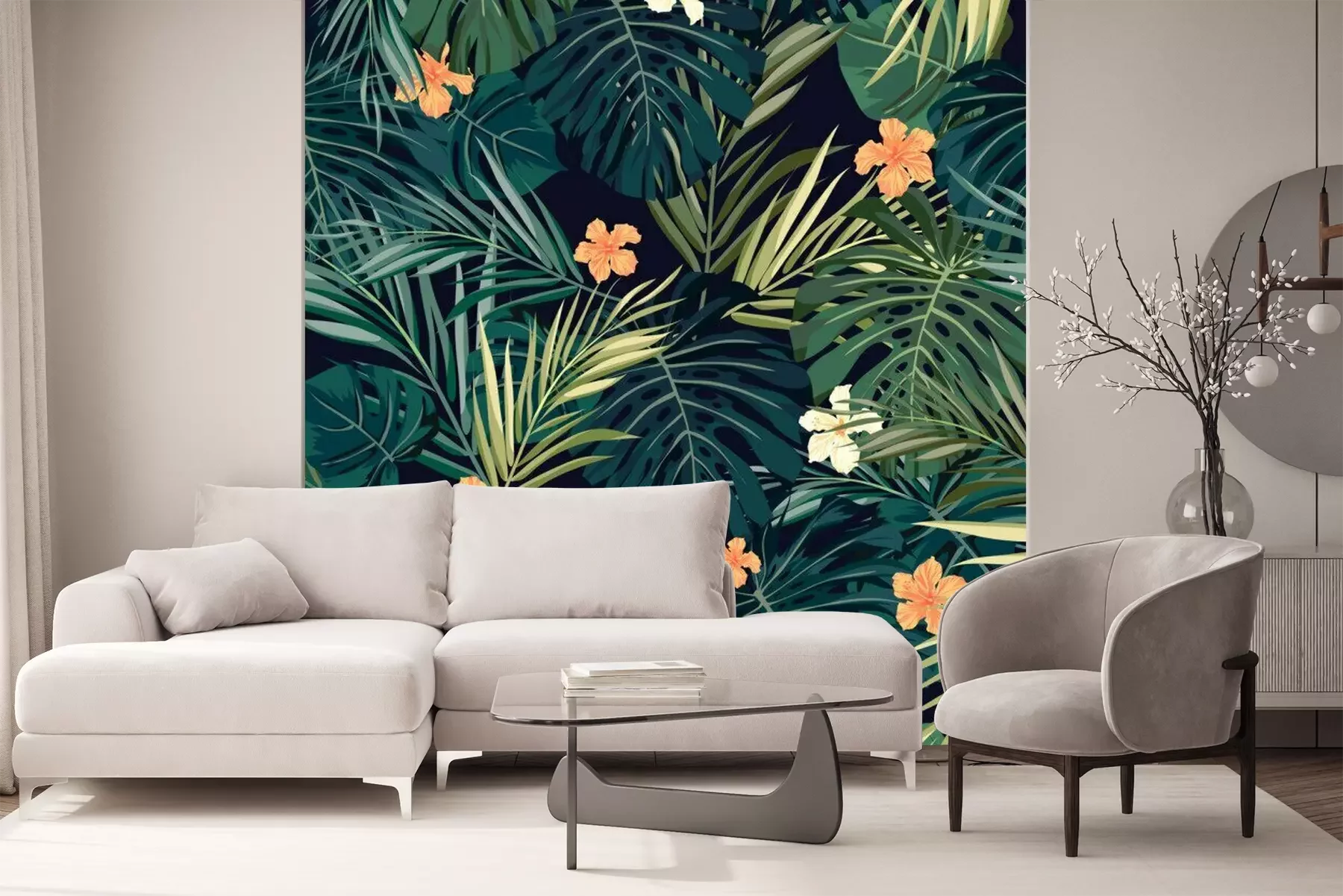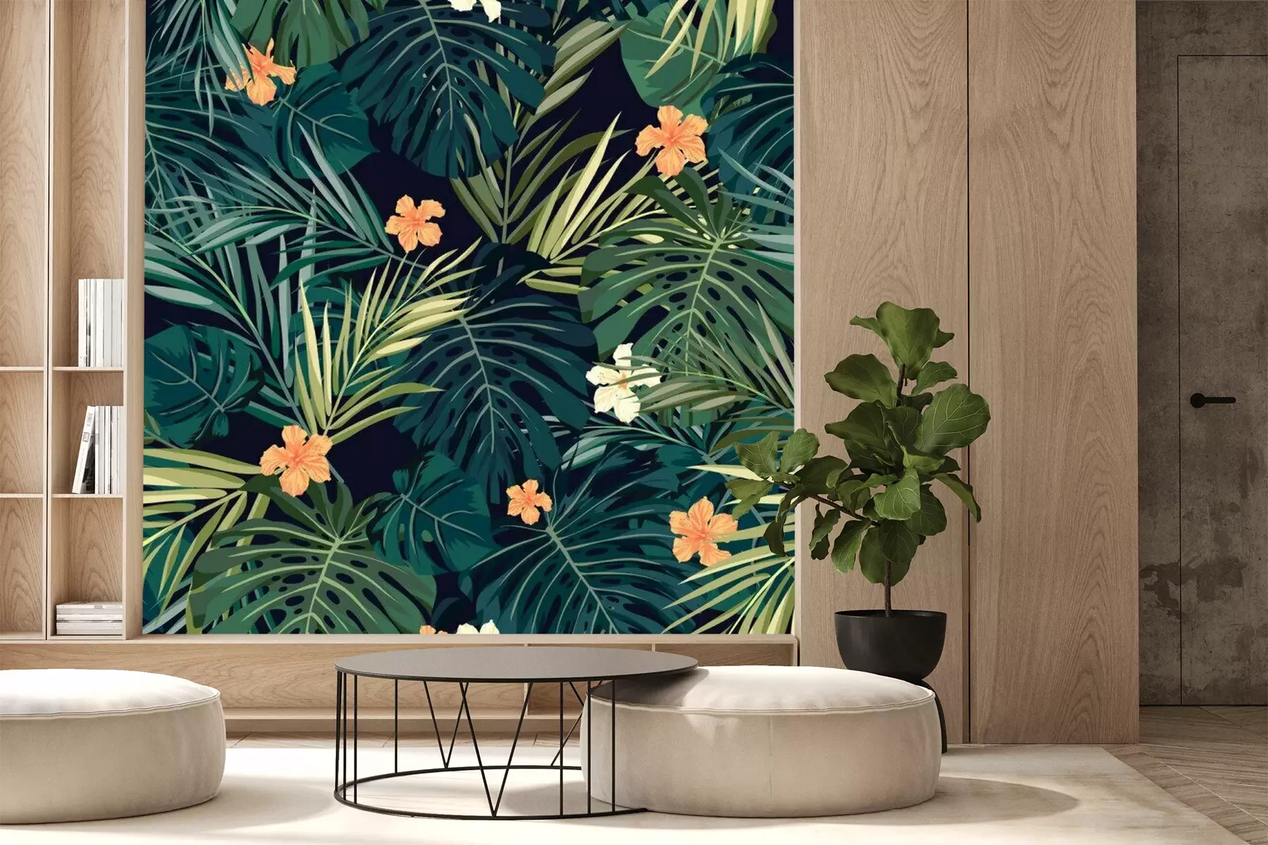 Fleurs et feuilles tropicales de la junglePapier peint à motif