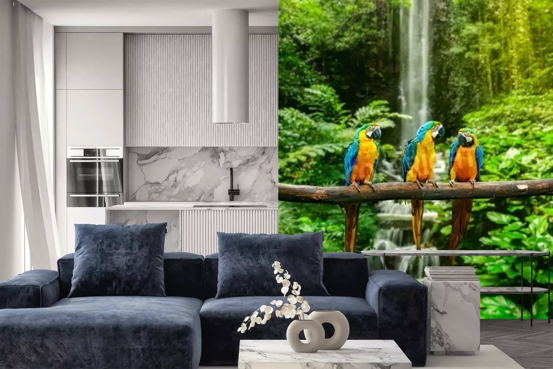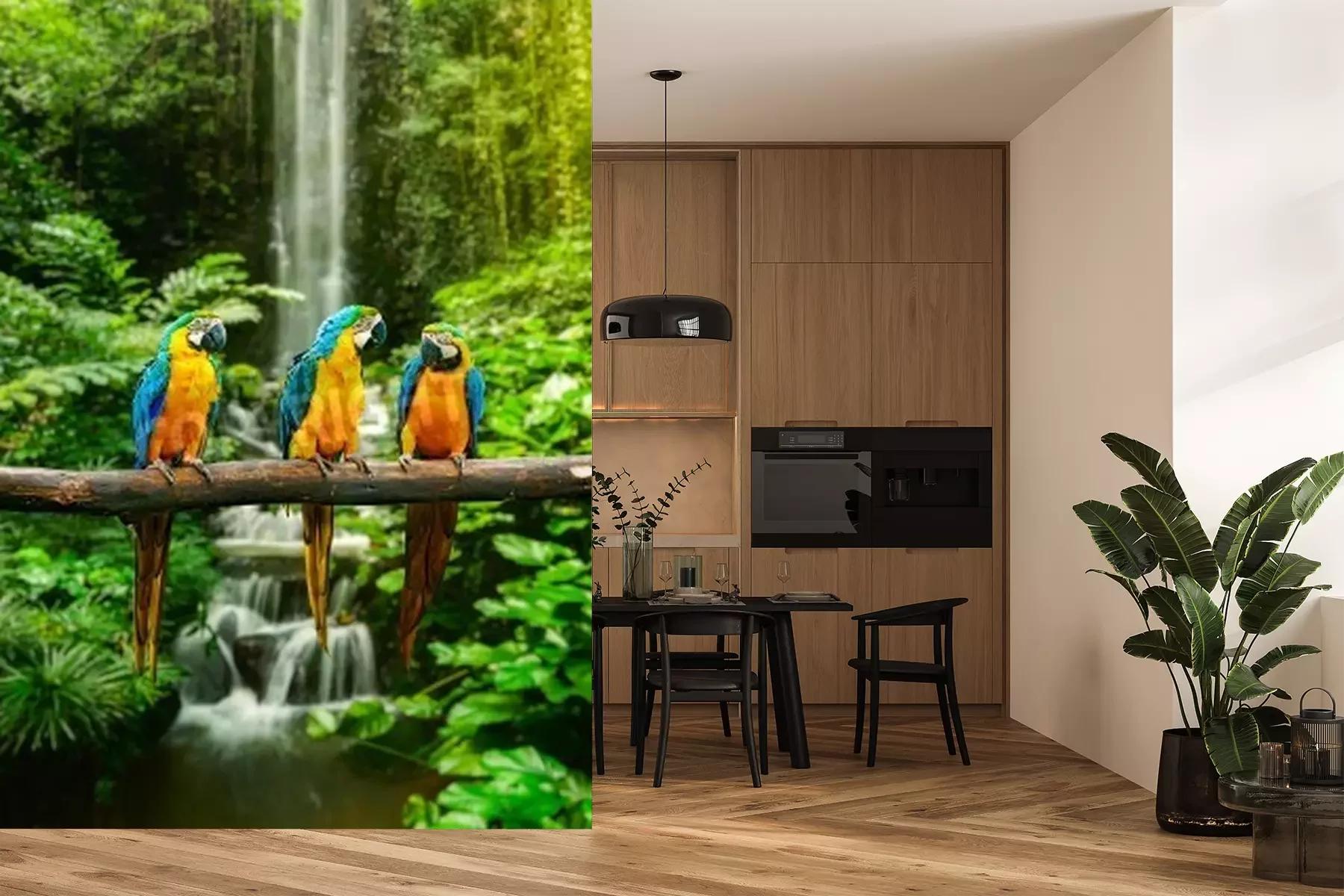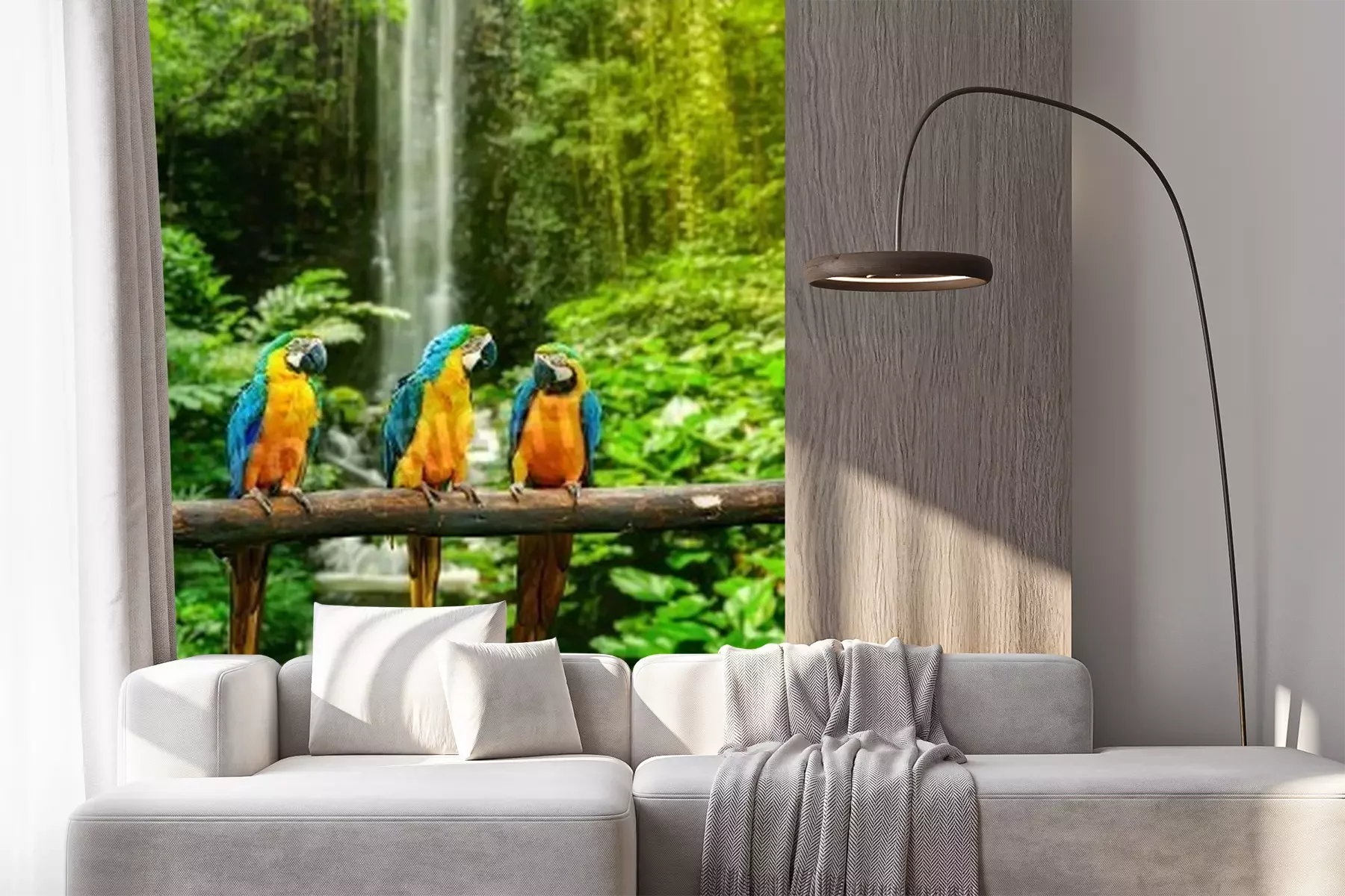 Papier peint  Jungle perroquets colorés