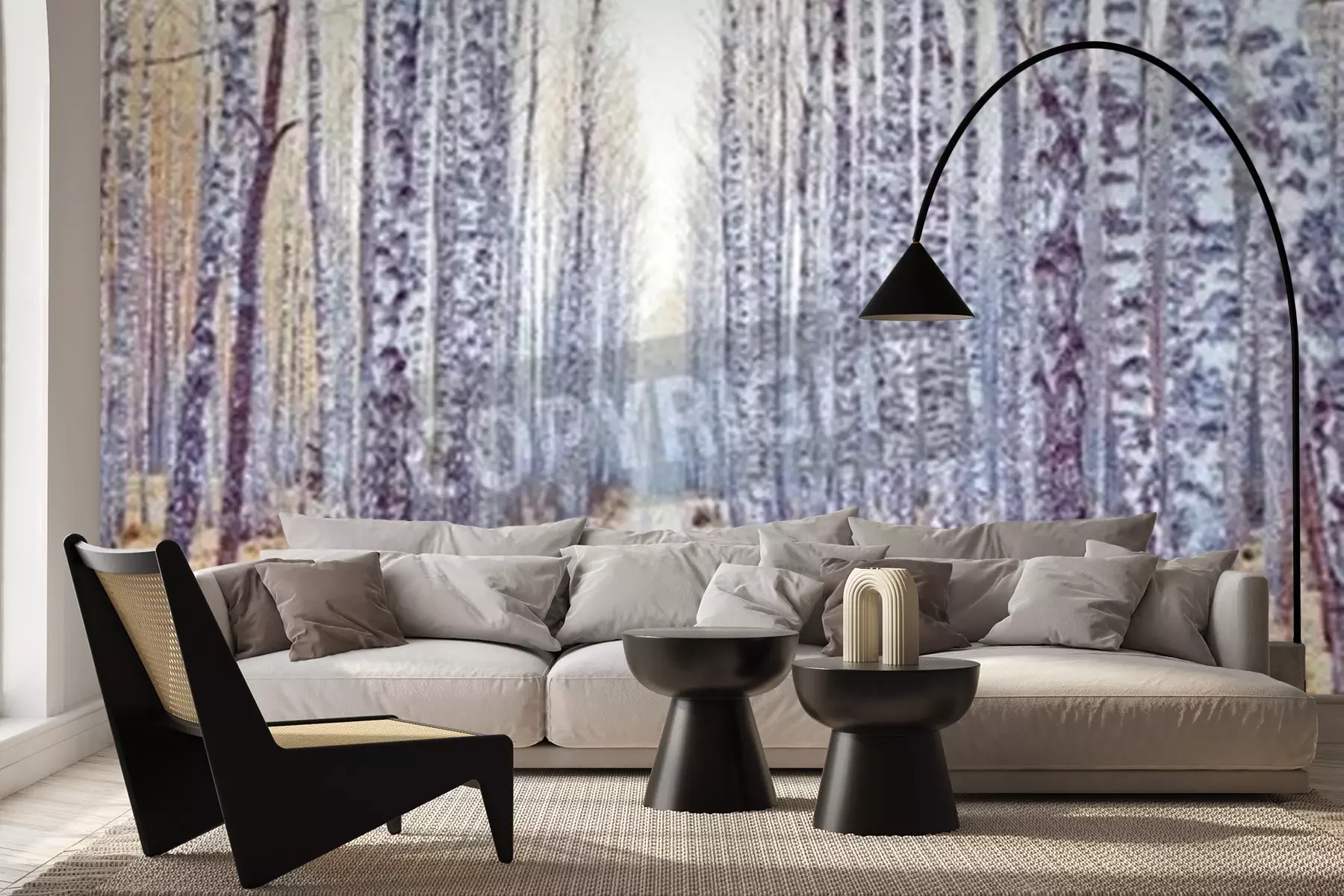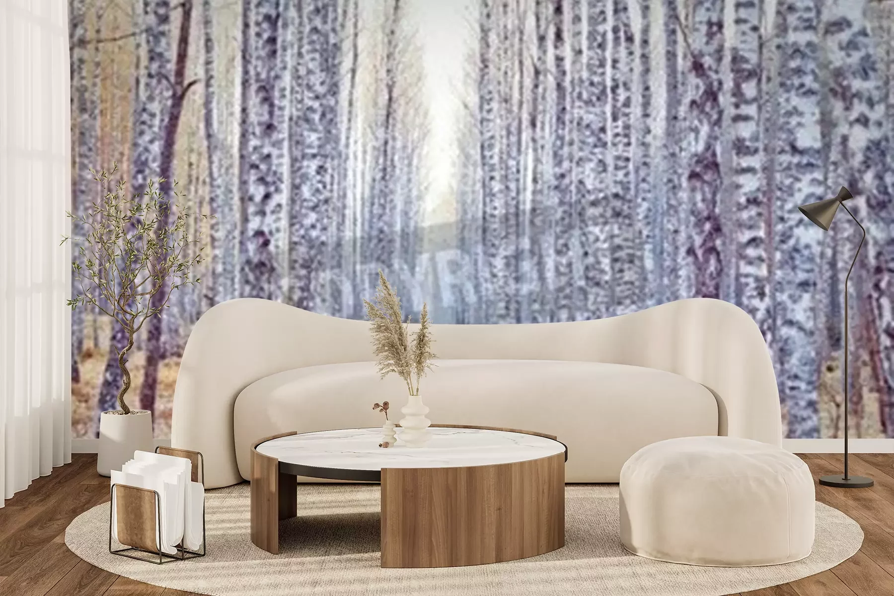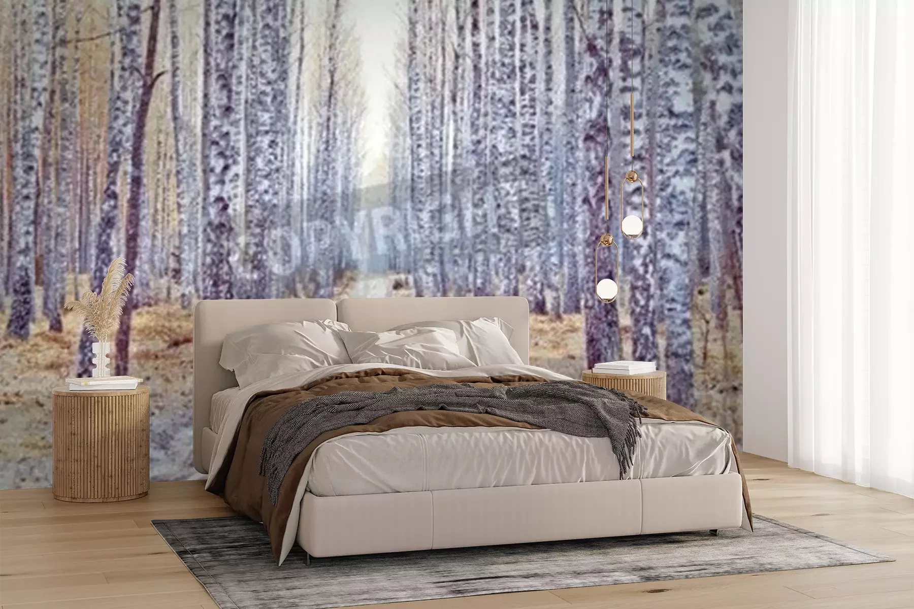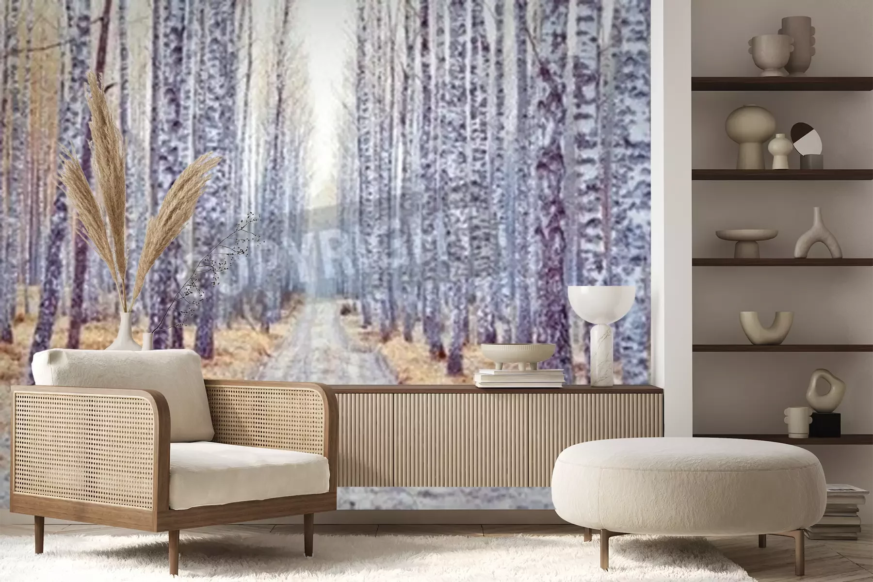 Papier peint  Le chemin de terre à travers un bosquet de bouleaux.