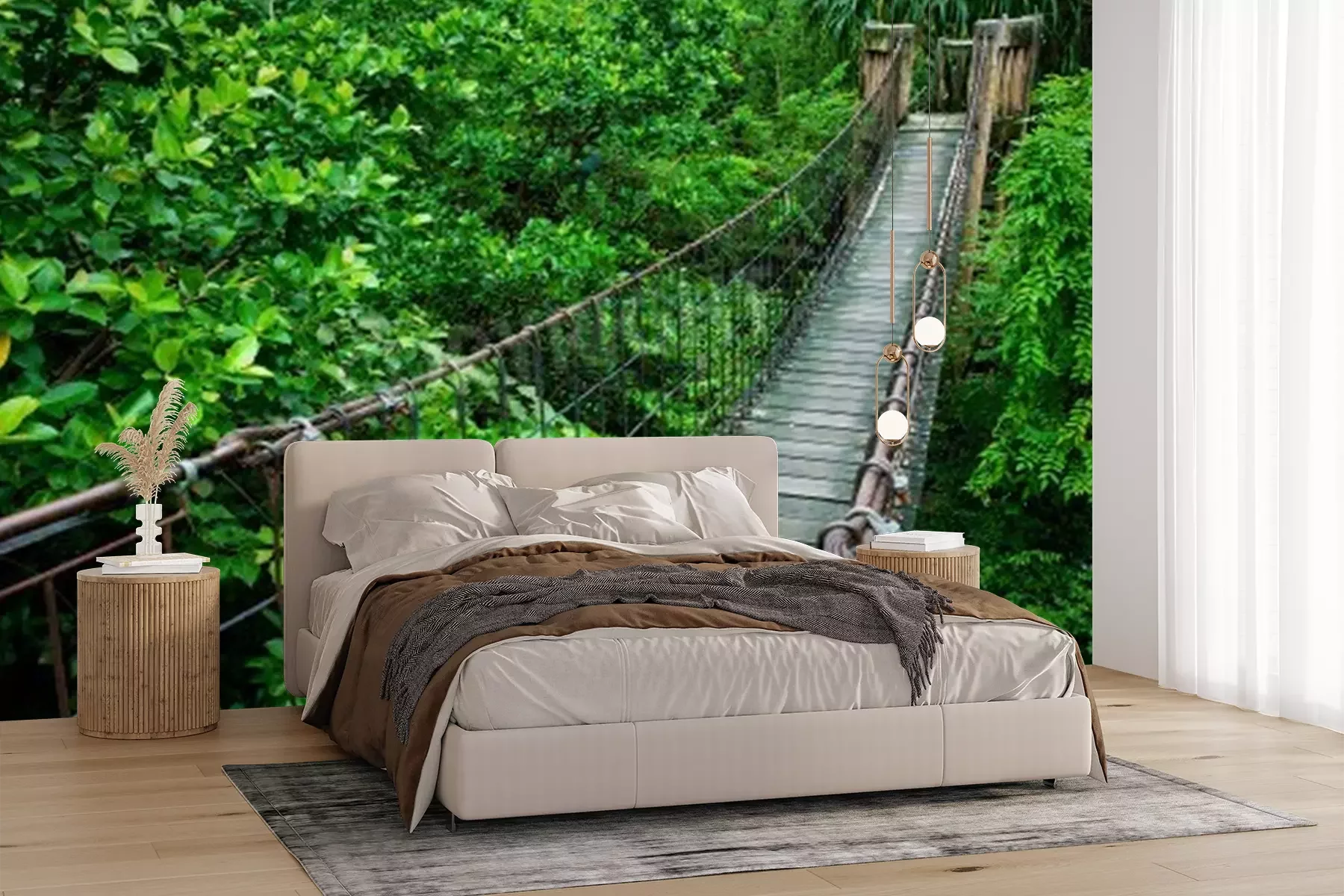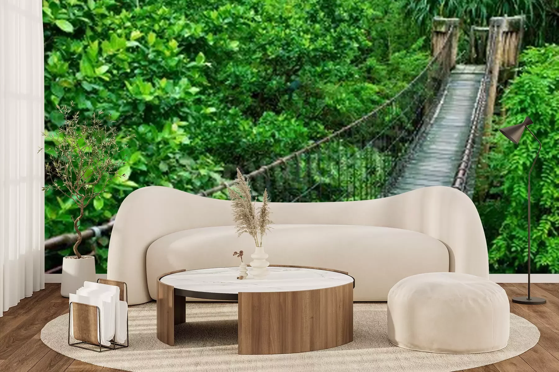 Papier peint  Le pont à câble en bois dans la forêt vierge