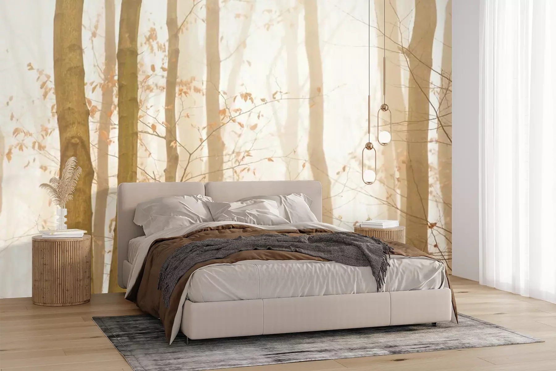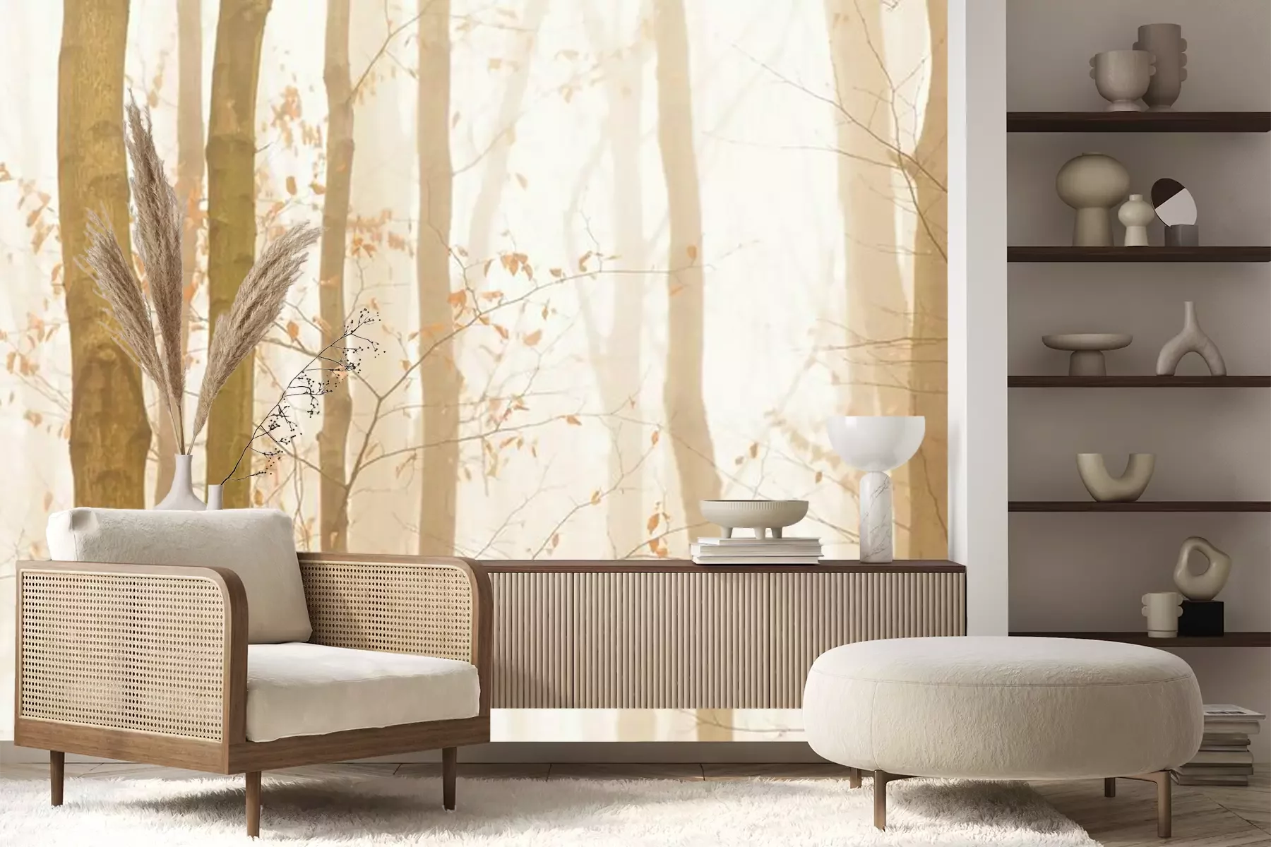 Papier peint  Les arbres disparaissent rapidement en jaune brouillard lumineux