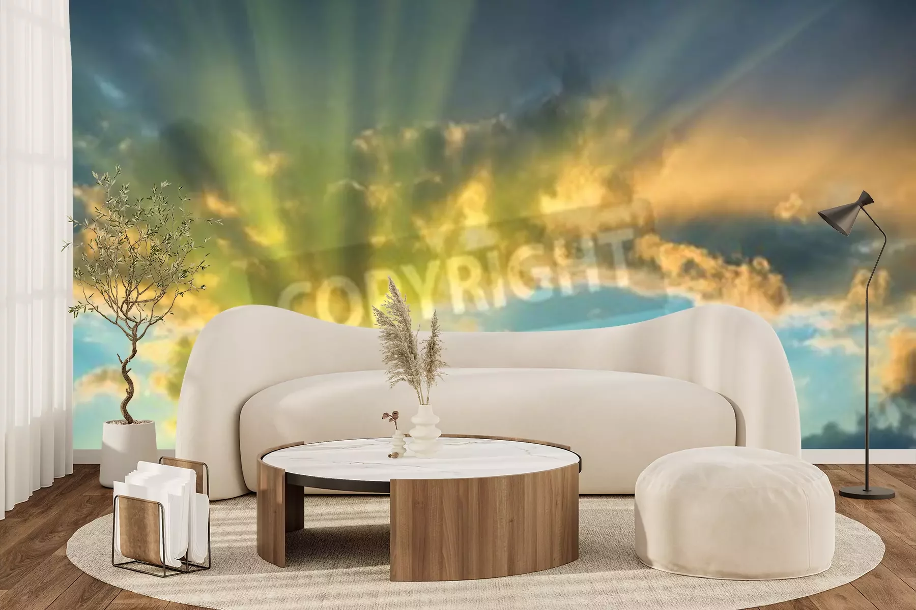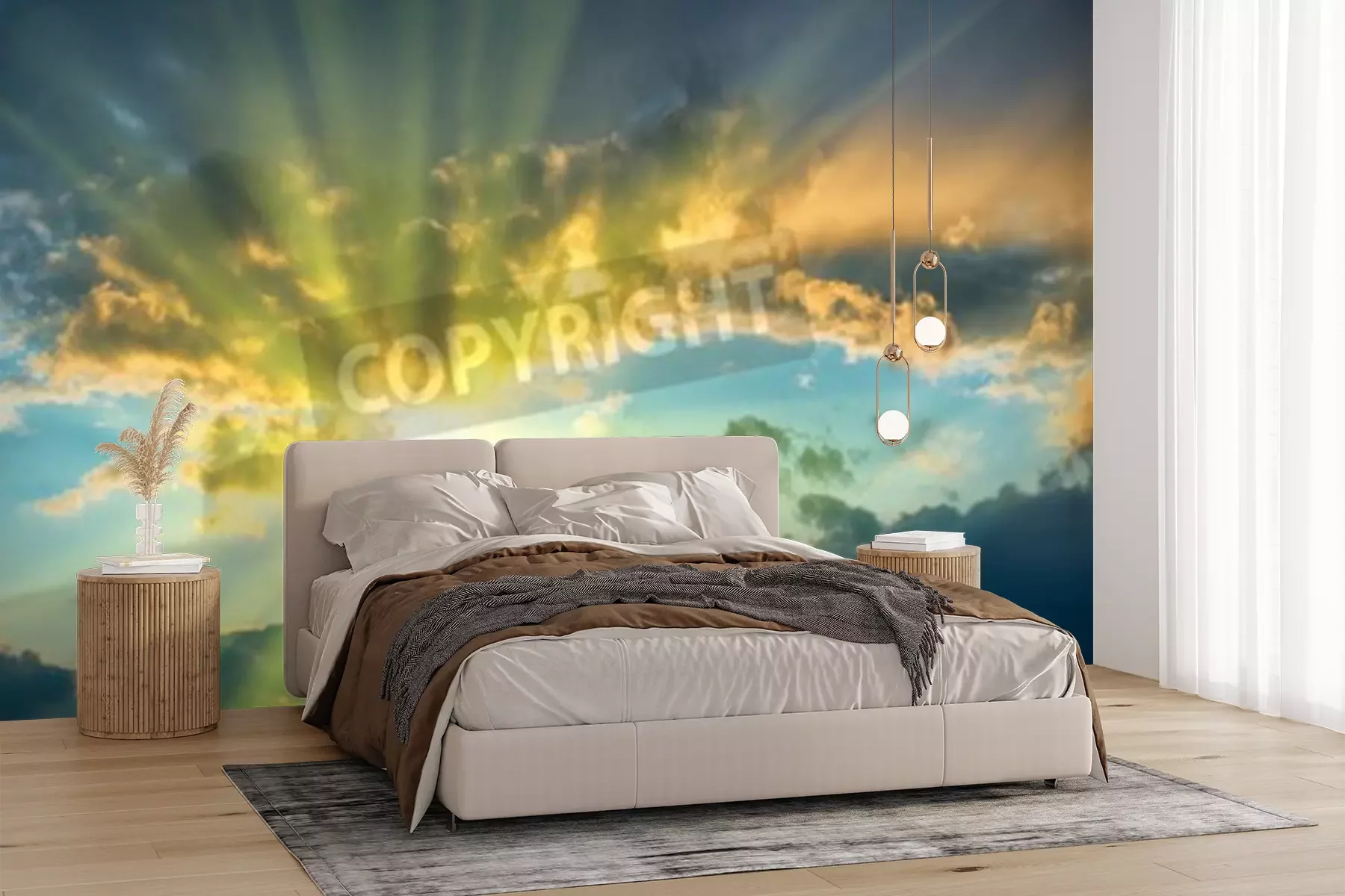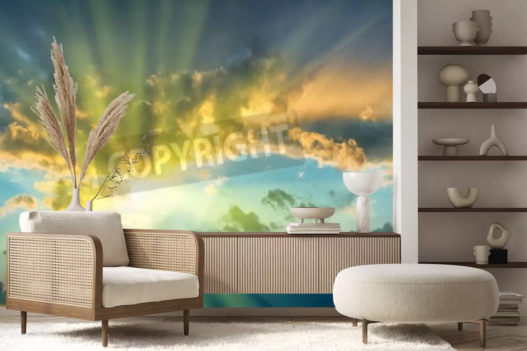 Papier peint  Lever de soleil avec des nuages blancs