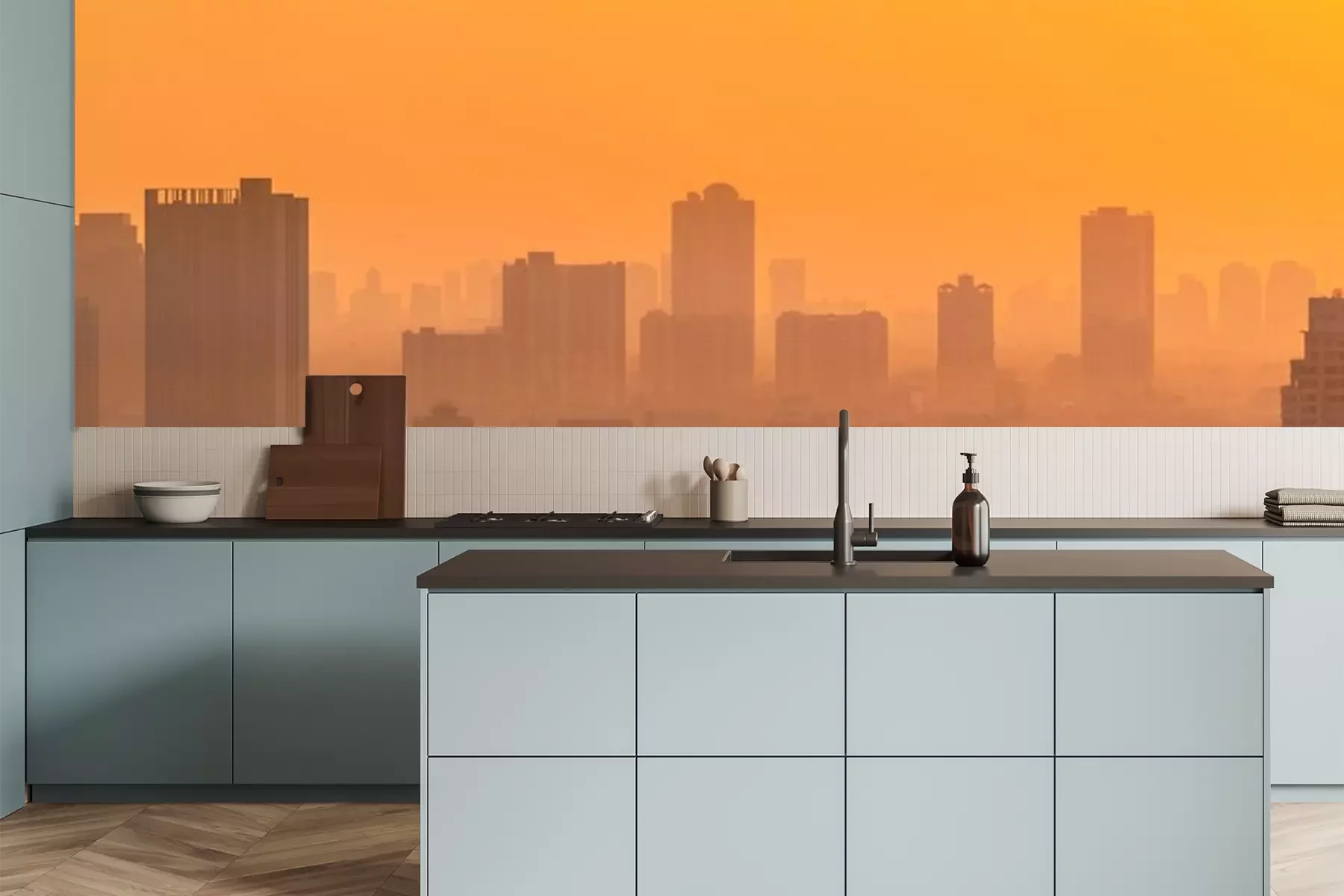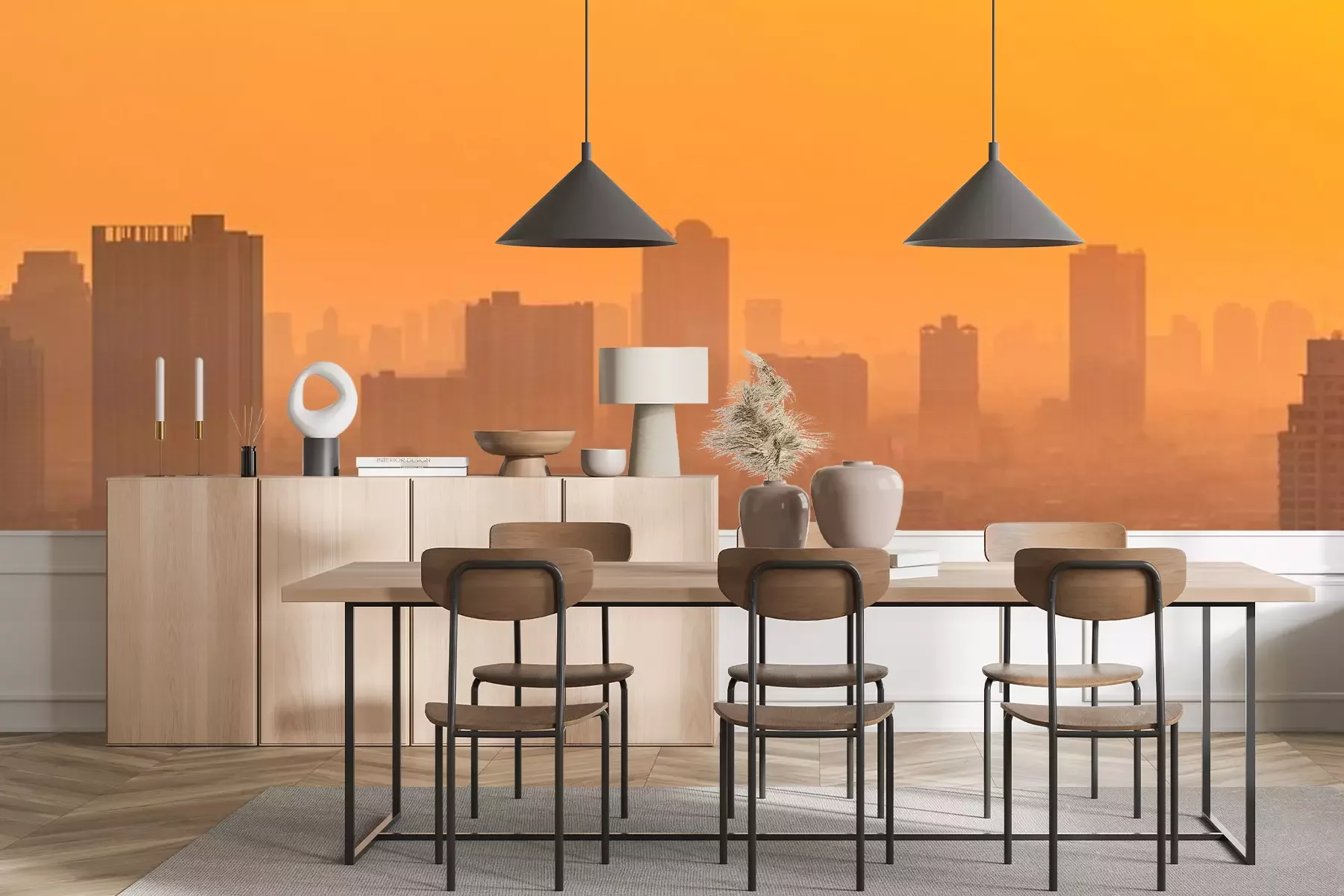 Papier peint  Lever de soleil d'aura orange sur le paysage urbain