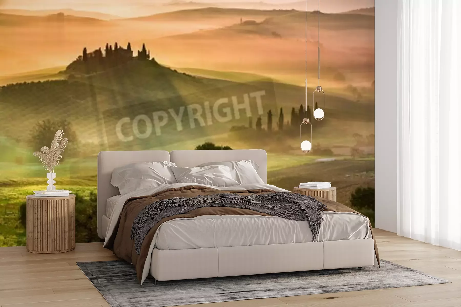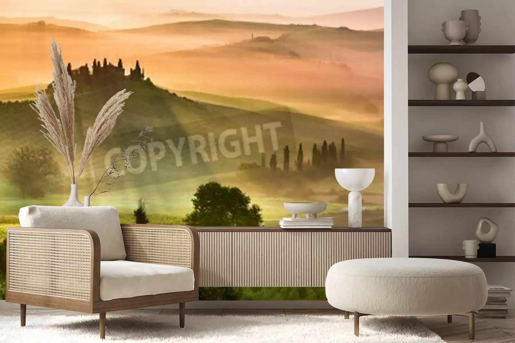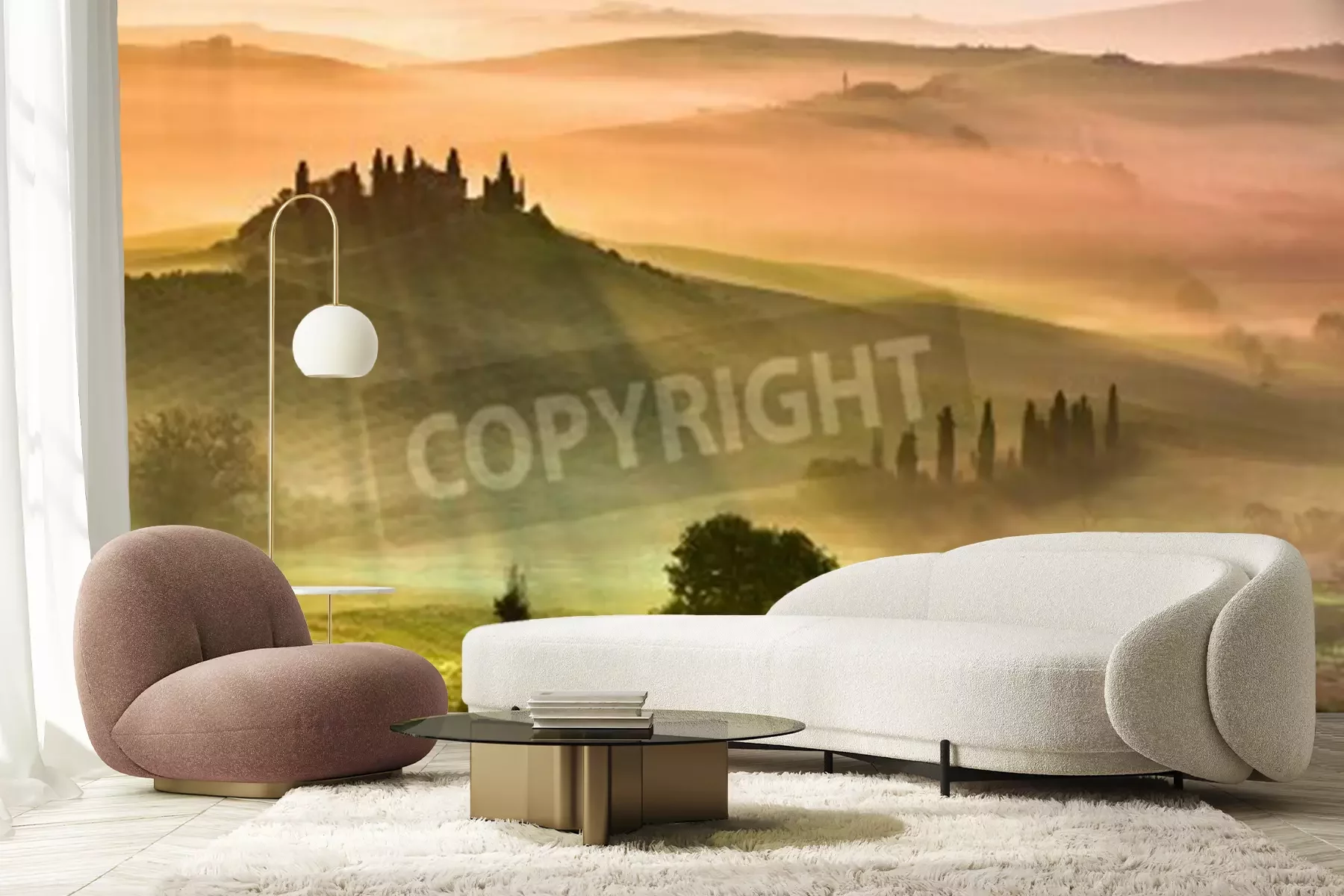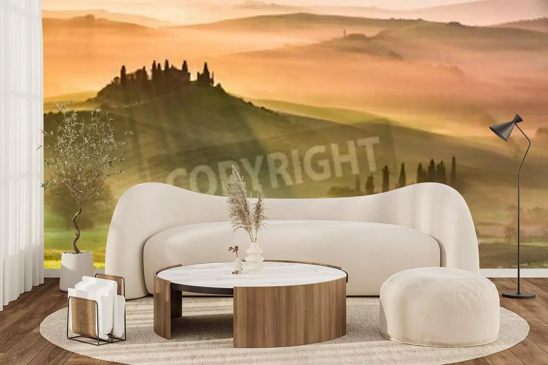 Papier peint  Lever de soleil et brouillard sur la Toscane