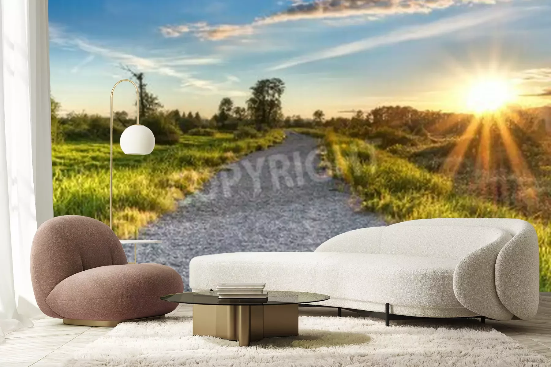 Papier peint  Lever de soleil et chemin de terre