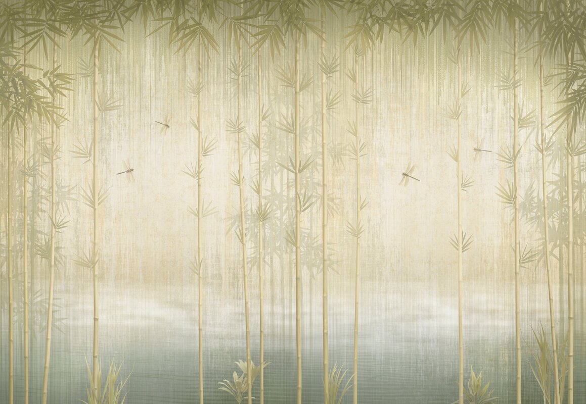 Papier peint : Libellules parmi les branches de bambou, motif botanique délicat
