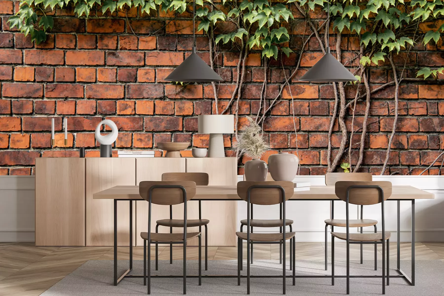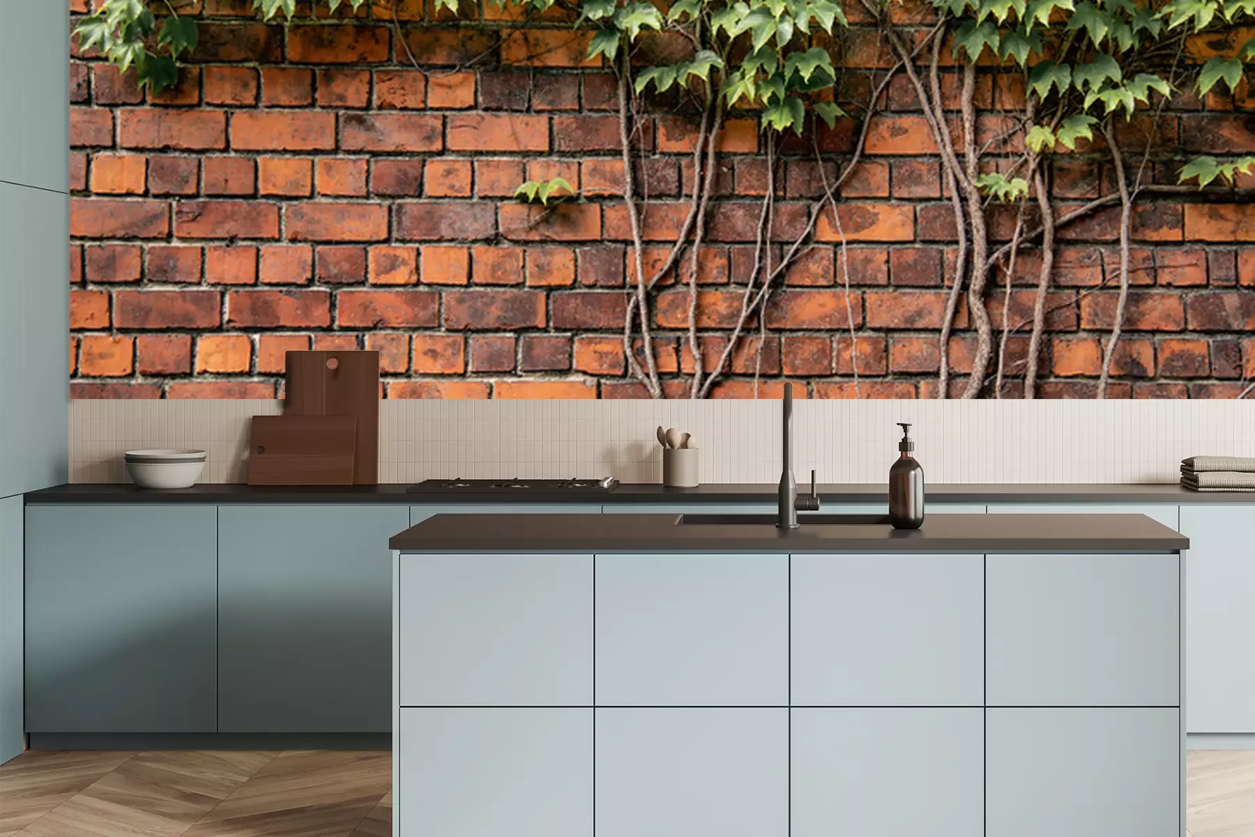 Papier peint  Lierre sur un mur de briques