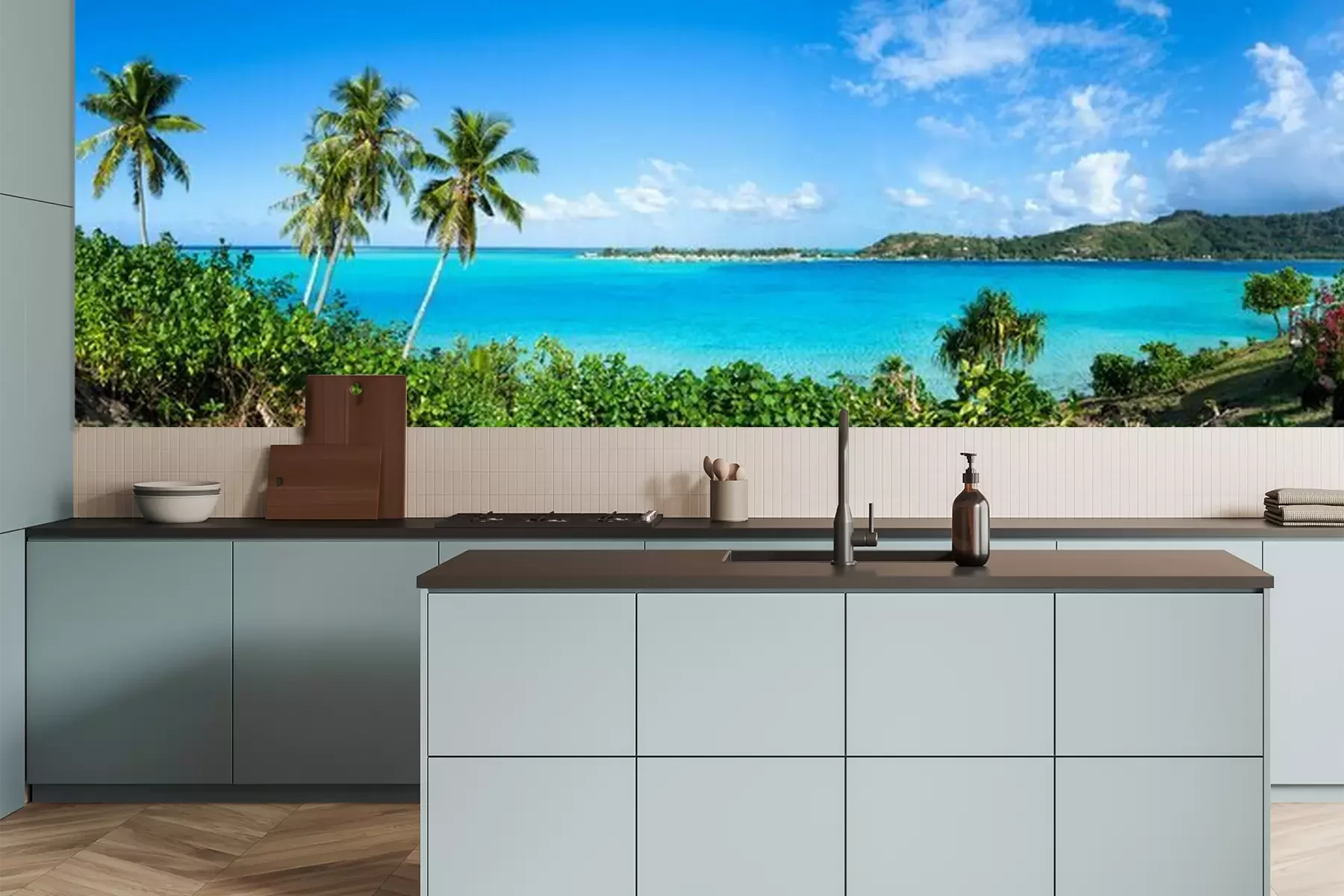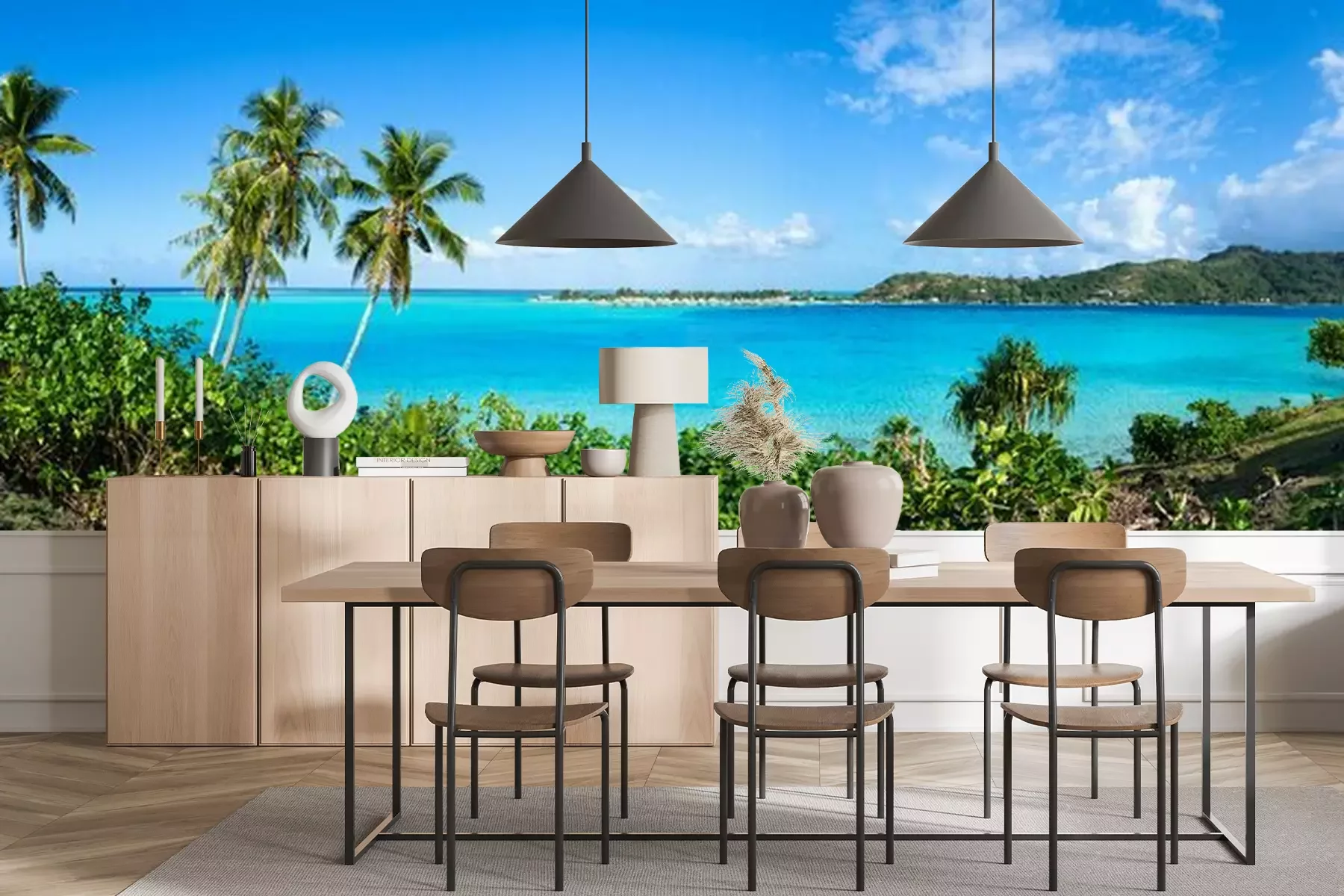 Panorama de plage avec mer et palmiersLivraison sans problème assurée par des transporteurs de confiance