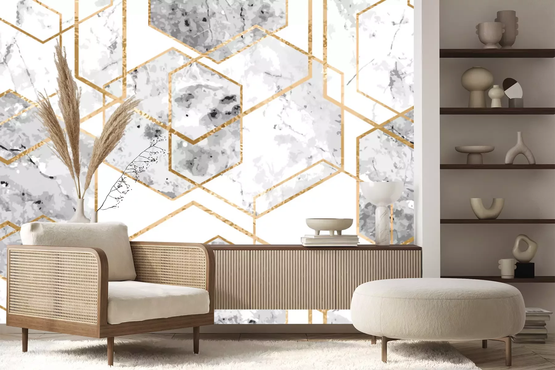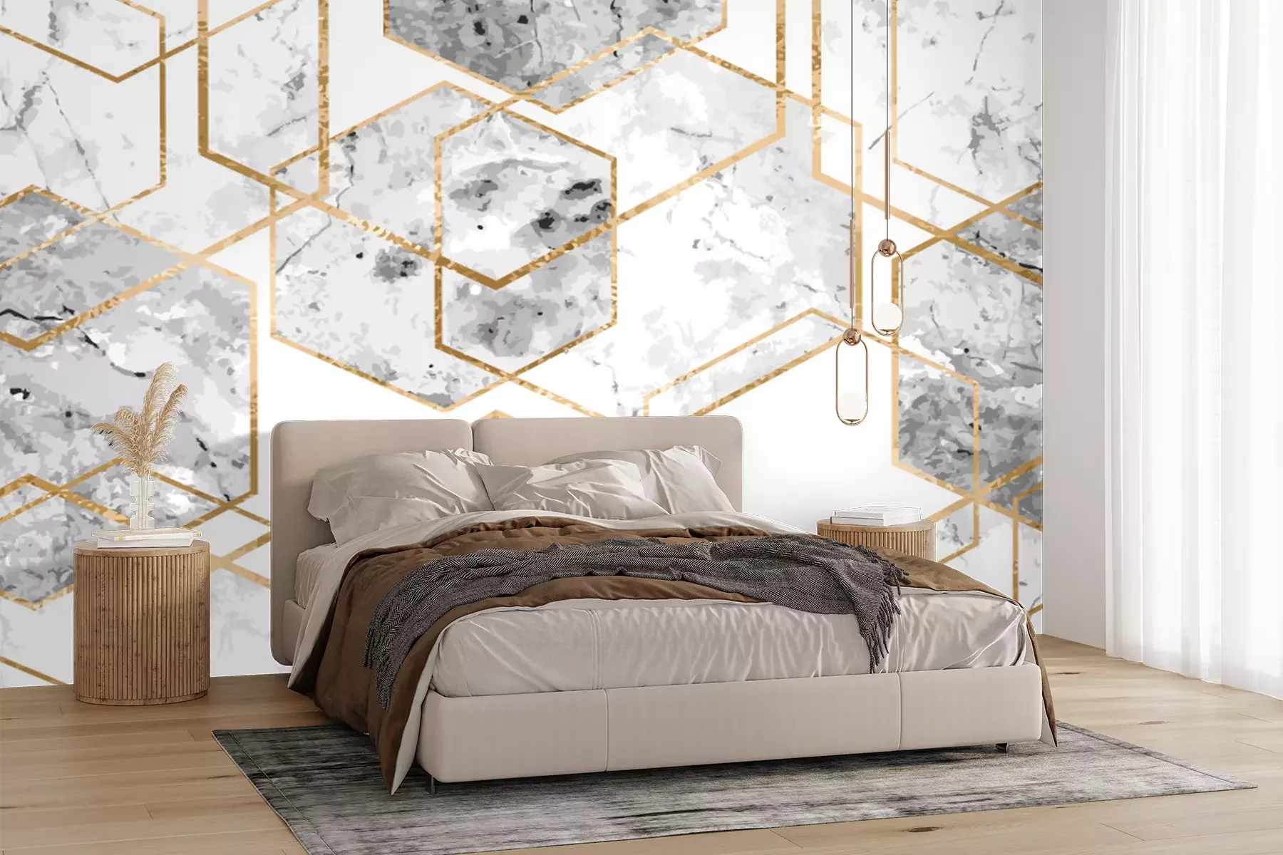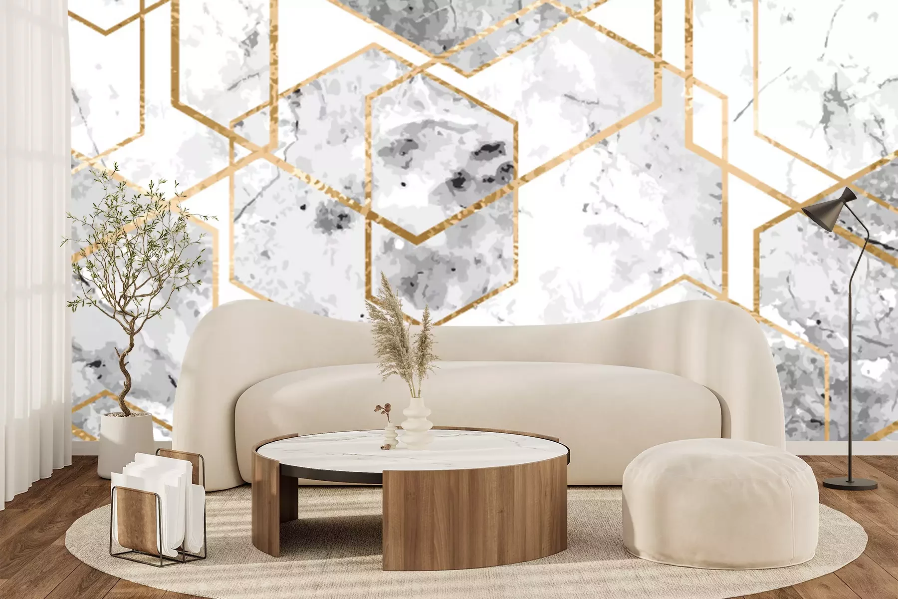 Papier peint  Lignes jaunes sur un marbre gris