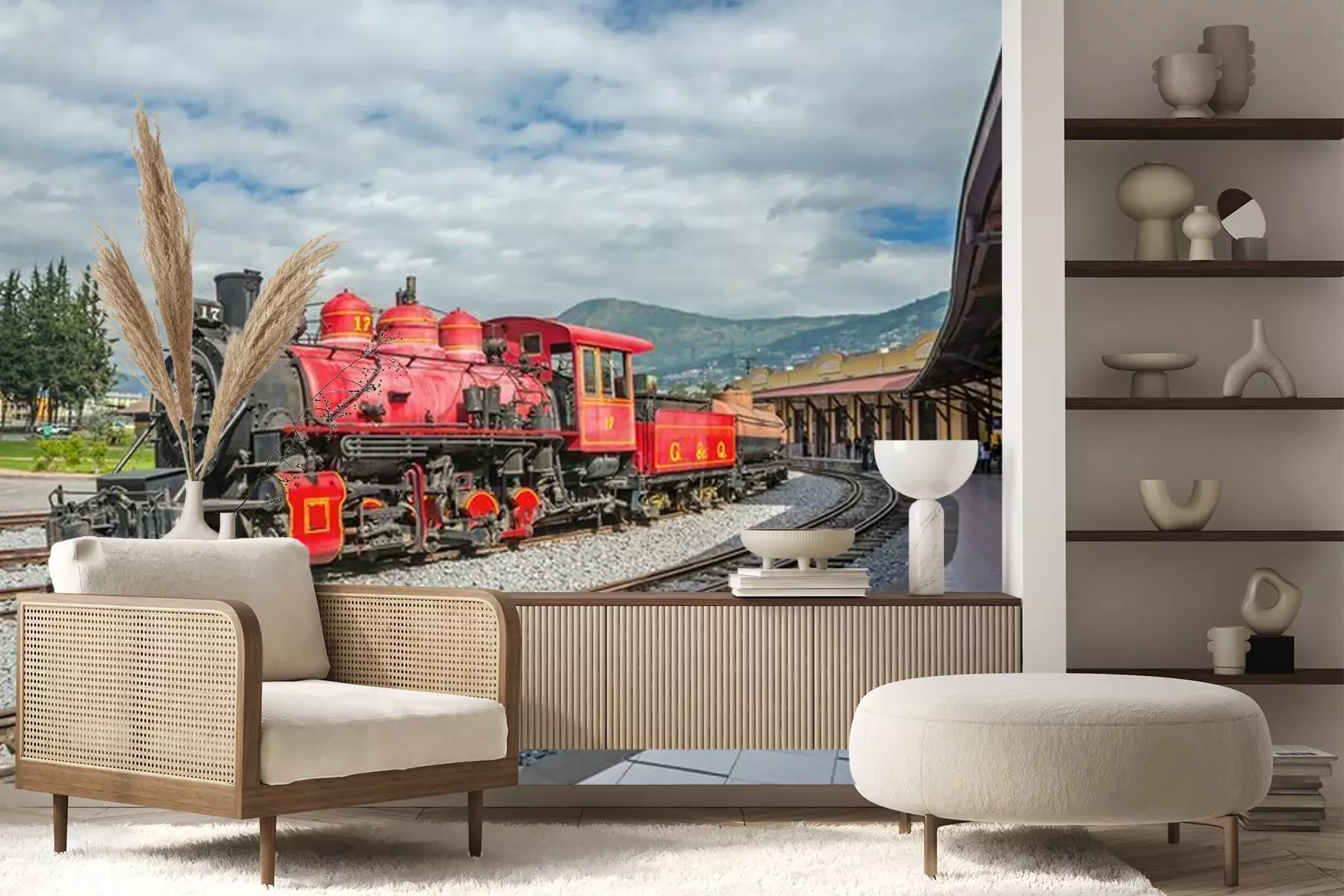 Papier peint  Locomotive rouge train rétro