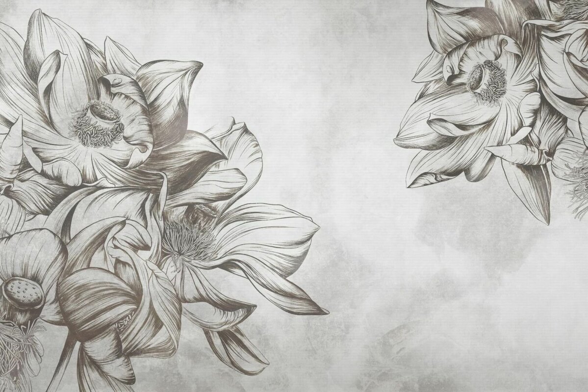 Papier peint : Lotus délicat sur fond brut dans des tons de gris