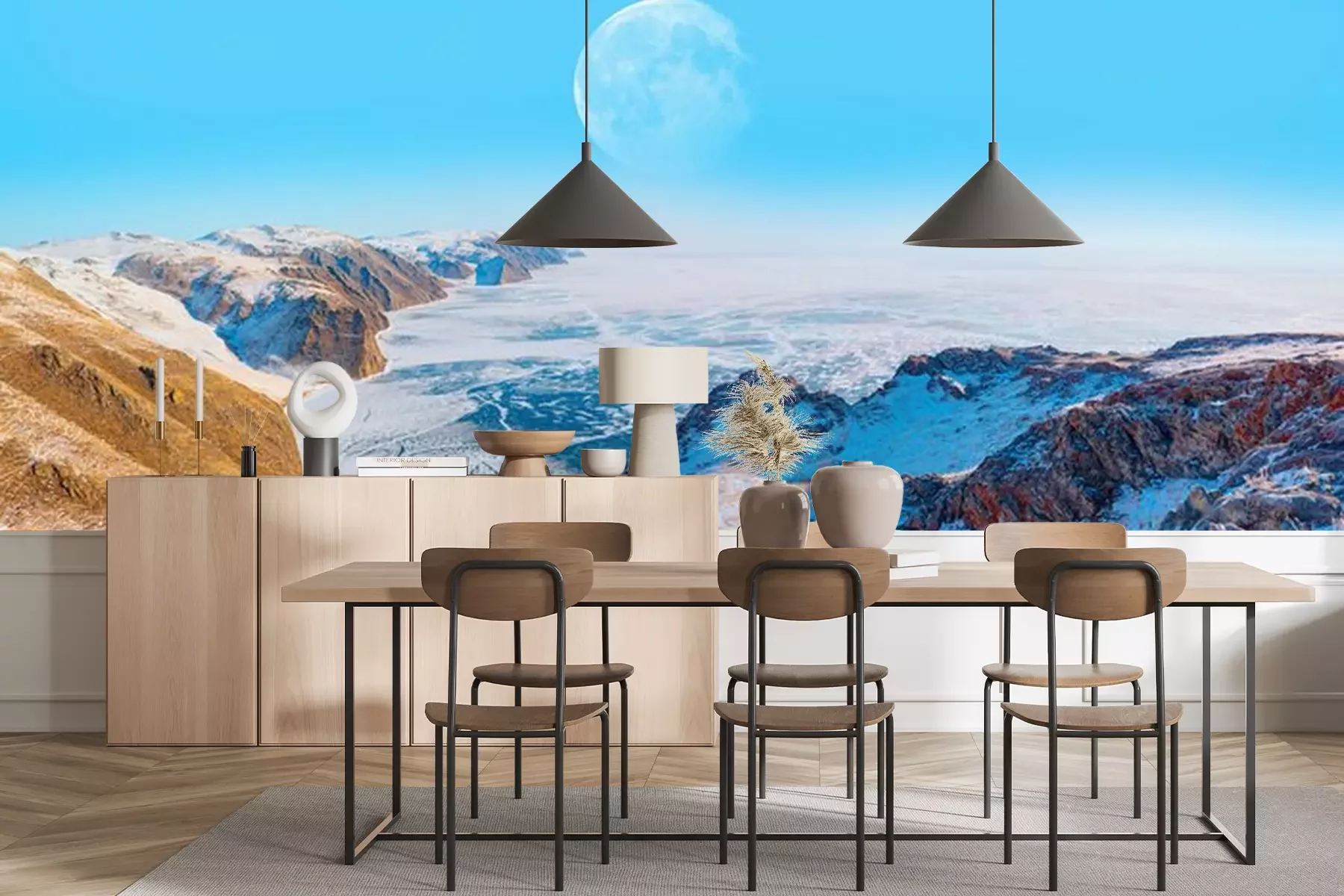 Papier peint  Lune subtile sur une chaîne de montagnes