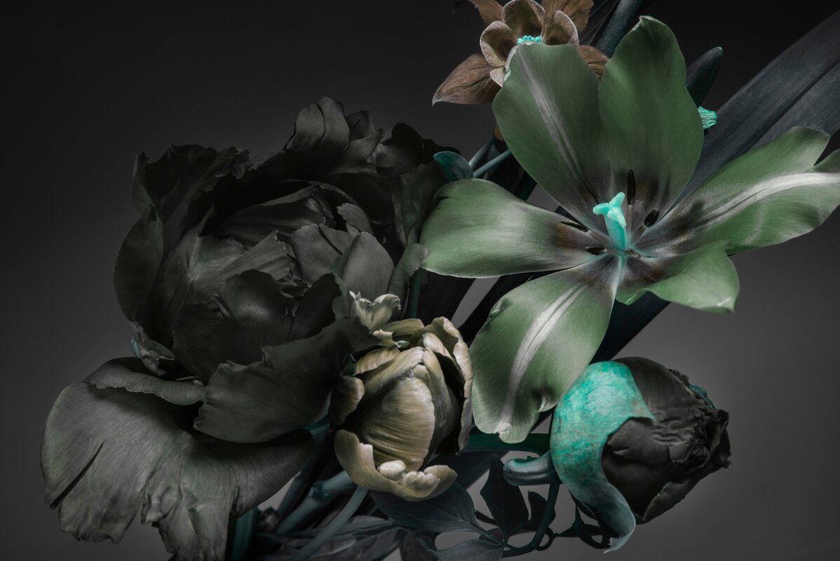 Papier peint : Lys et pivoines fleurs sur fond sombre