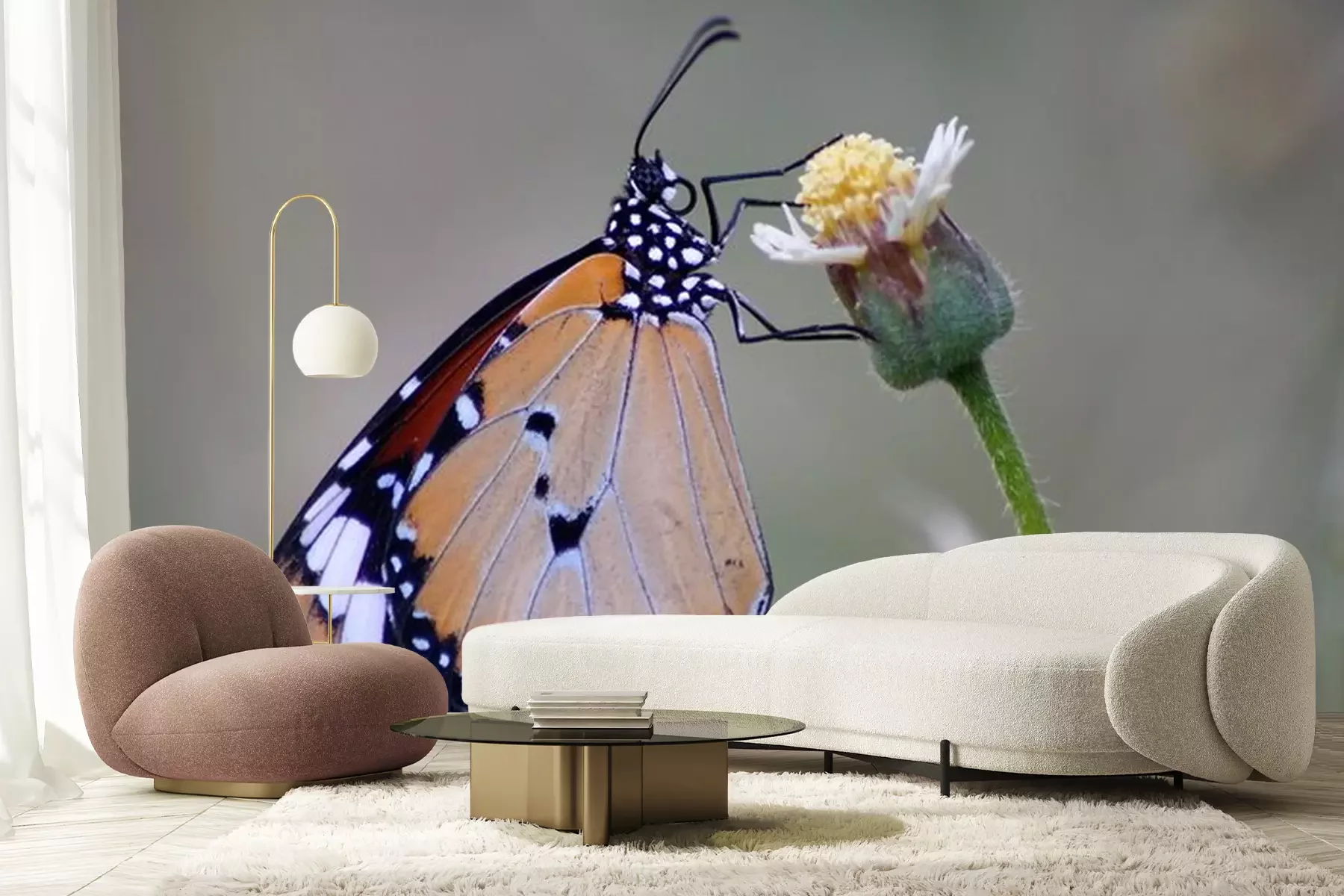 Papier peint  Magnifique papillon Monarque sur une fleur avec un arrière-plan flou