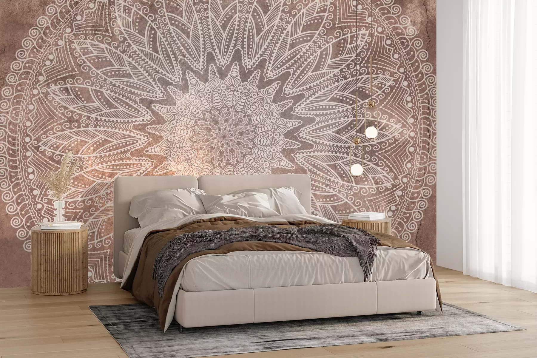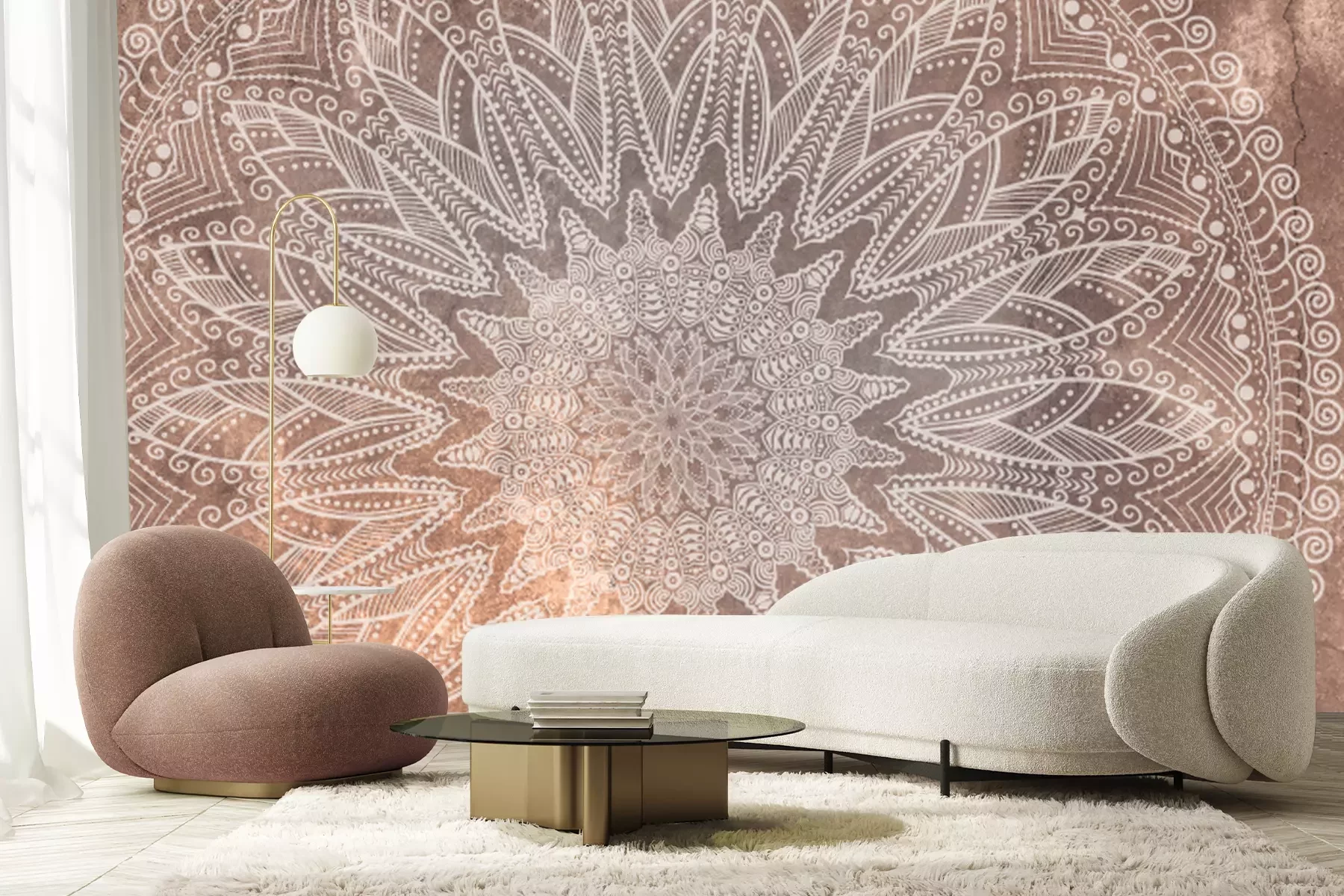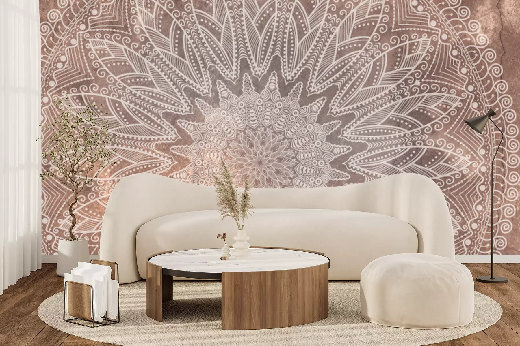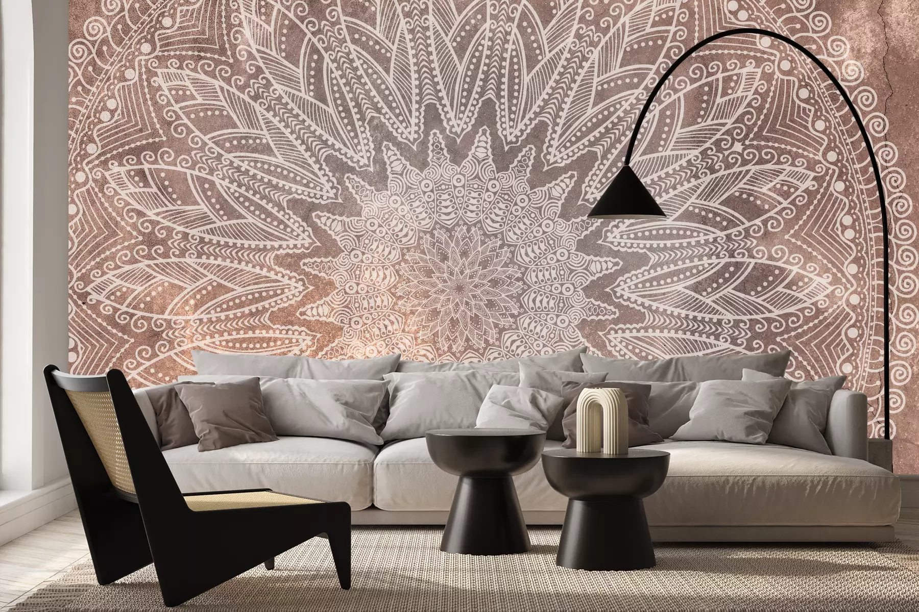 Mandala sur fond en béton dans les couleurs moka mousse