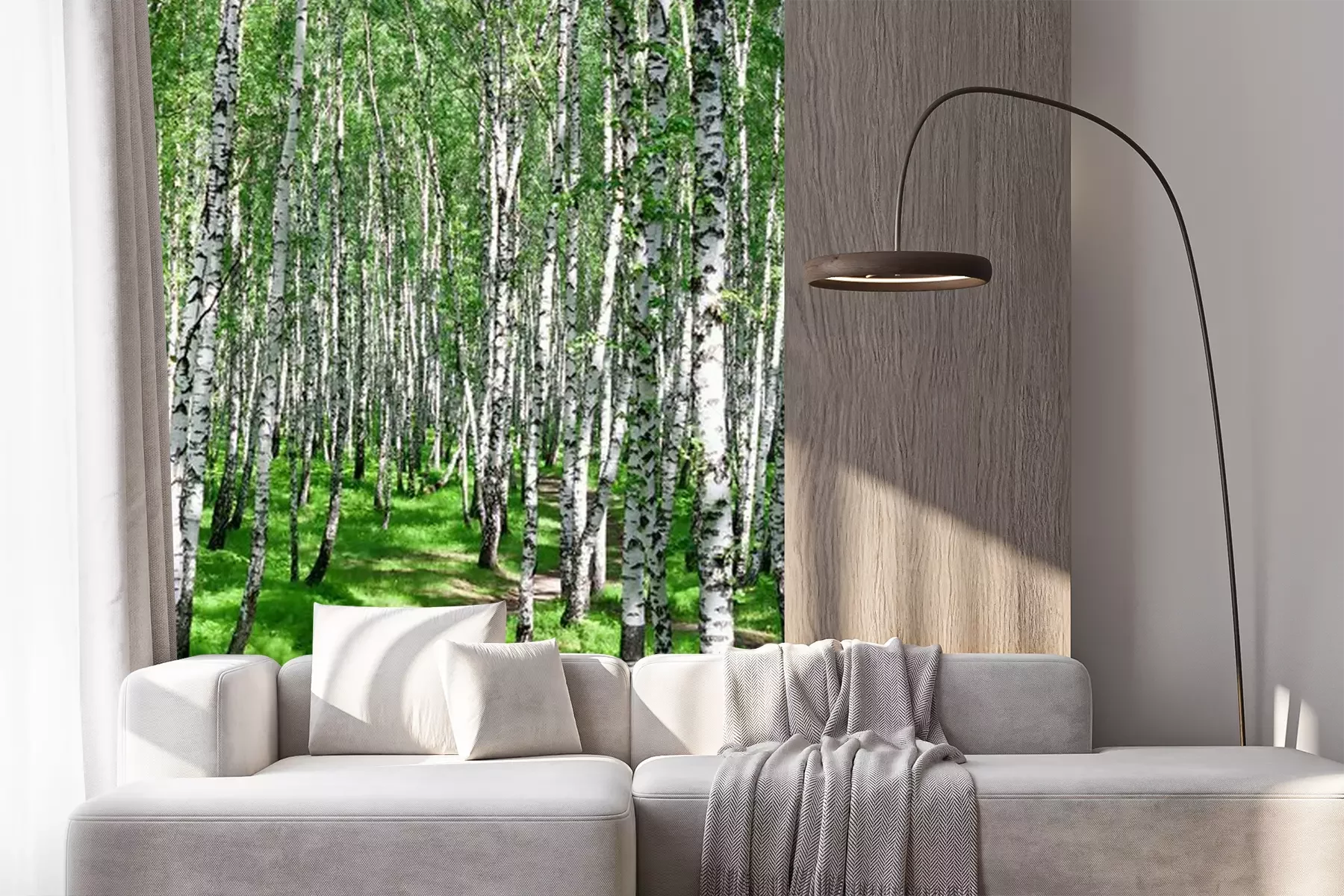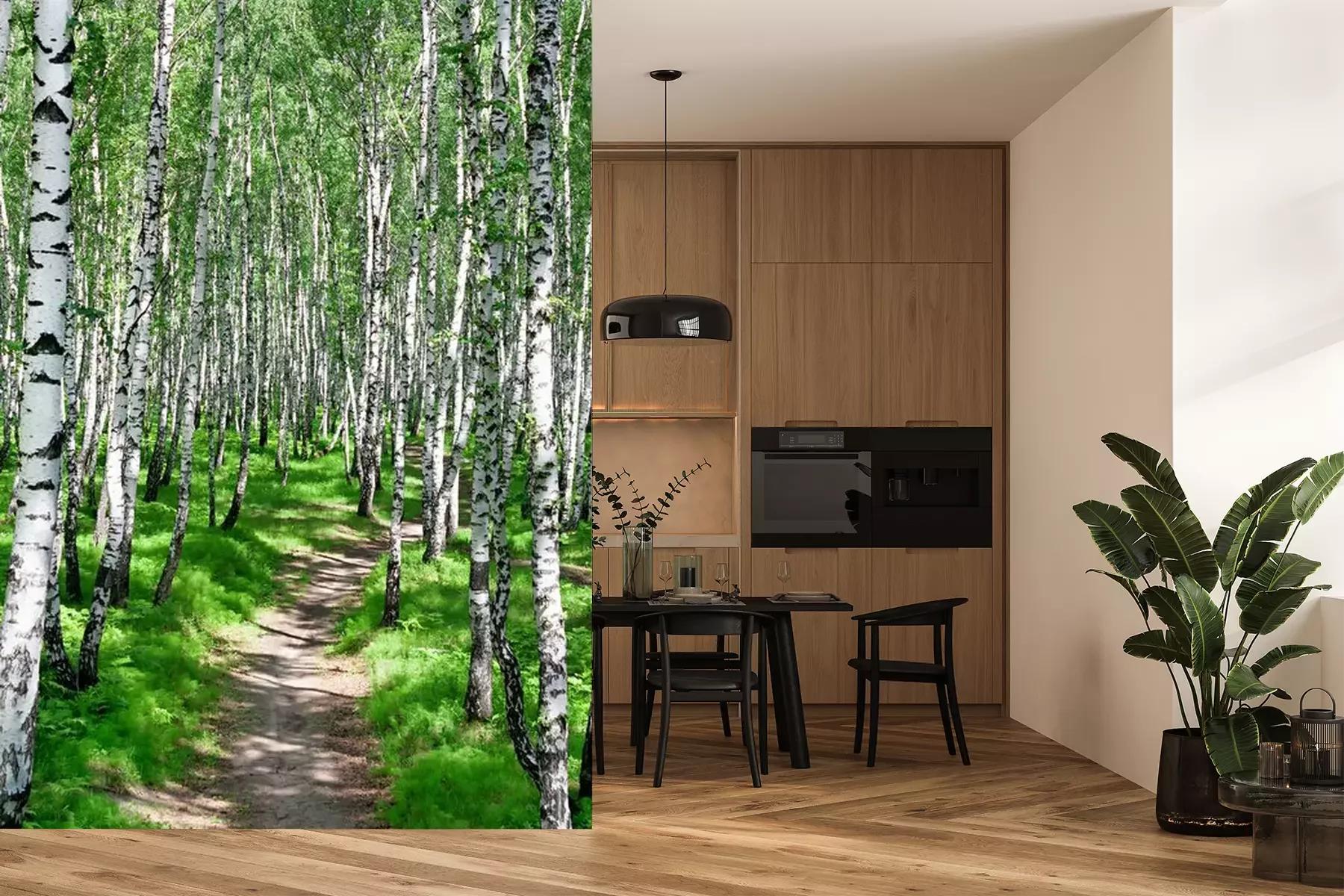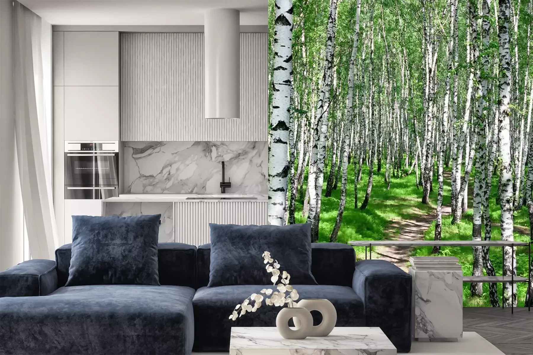Chemin piétiné dans une forêt de bouleauxLivraison sans problème assurée par des transporteurs de confiance