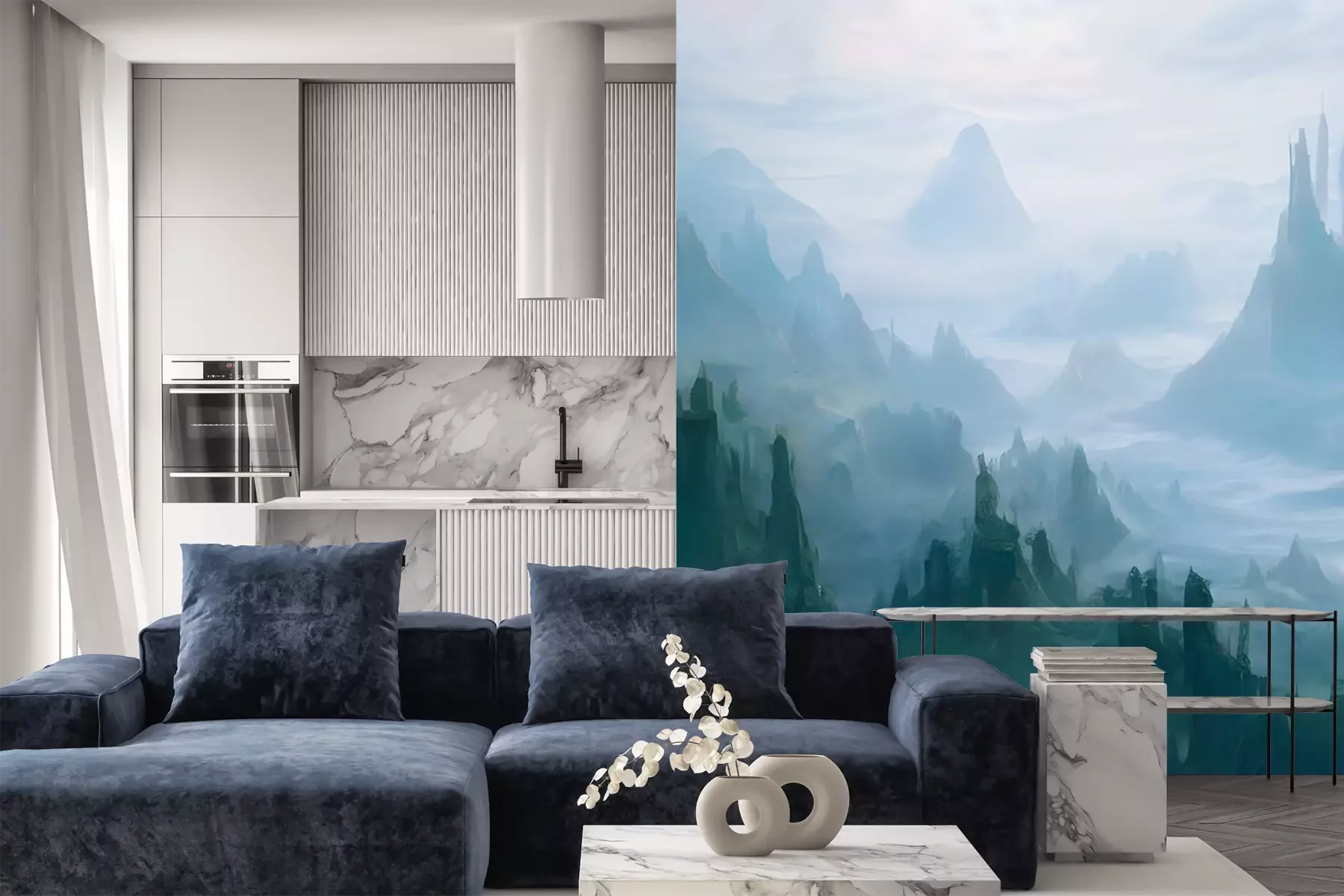 Papier peint  Matin calme dans les montagnes verdoyantes