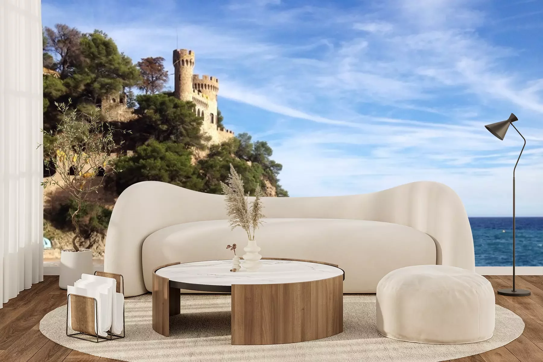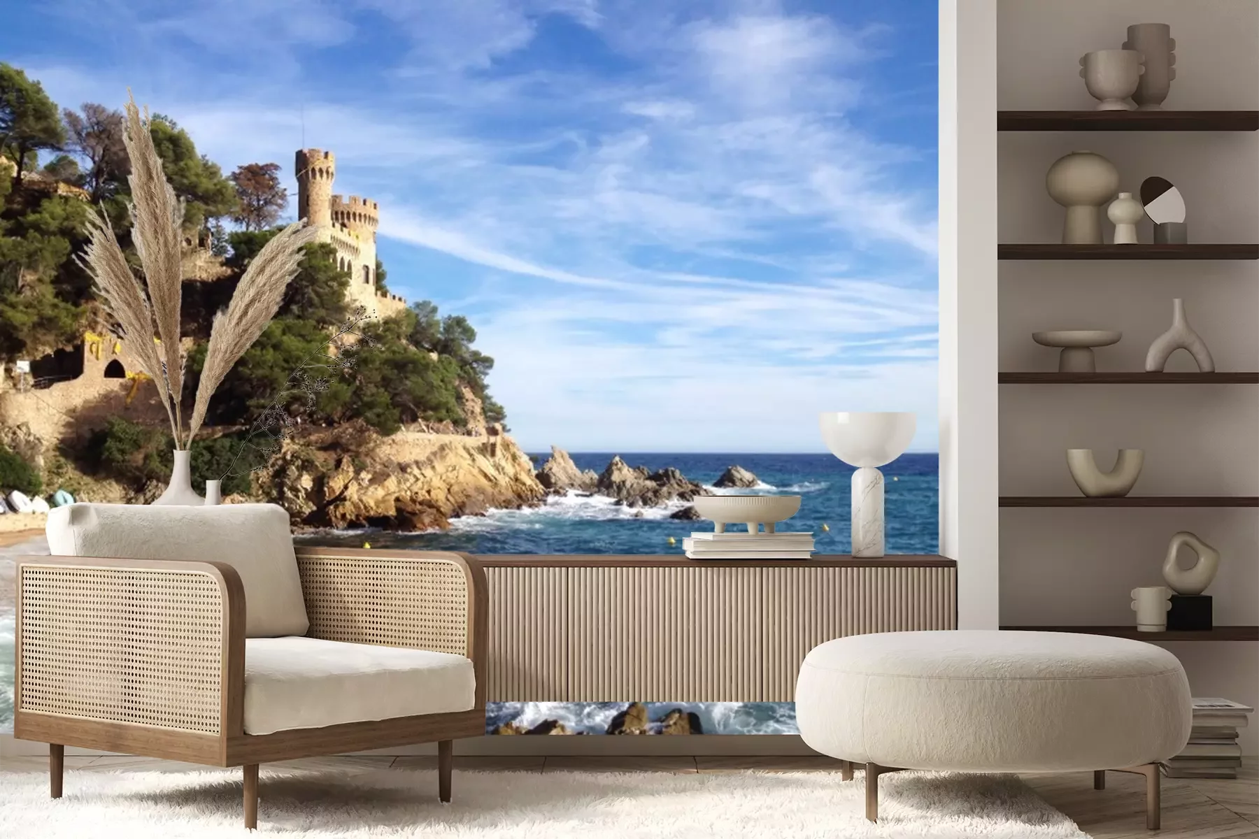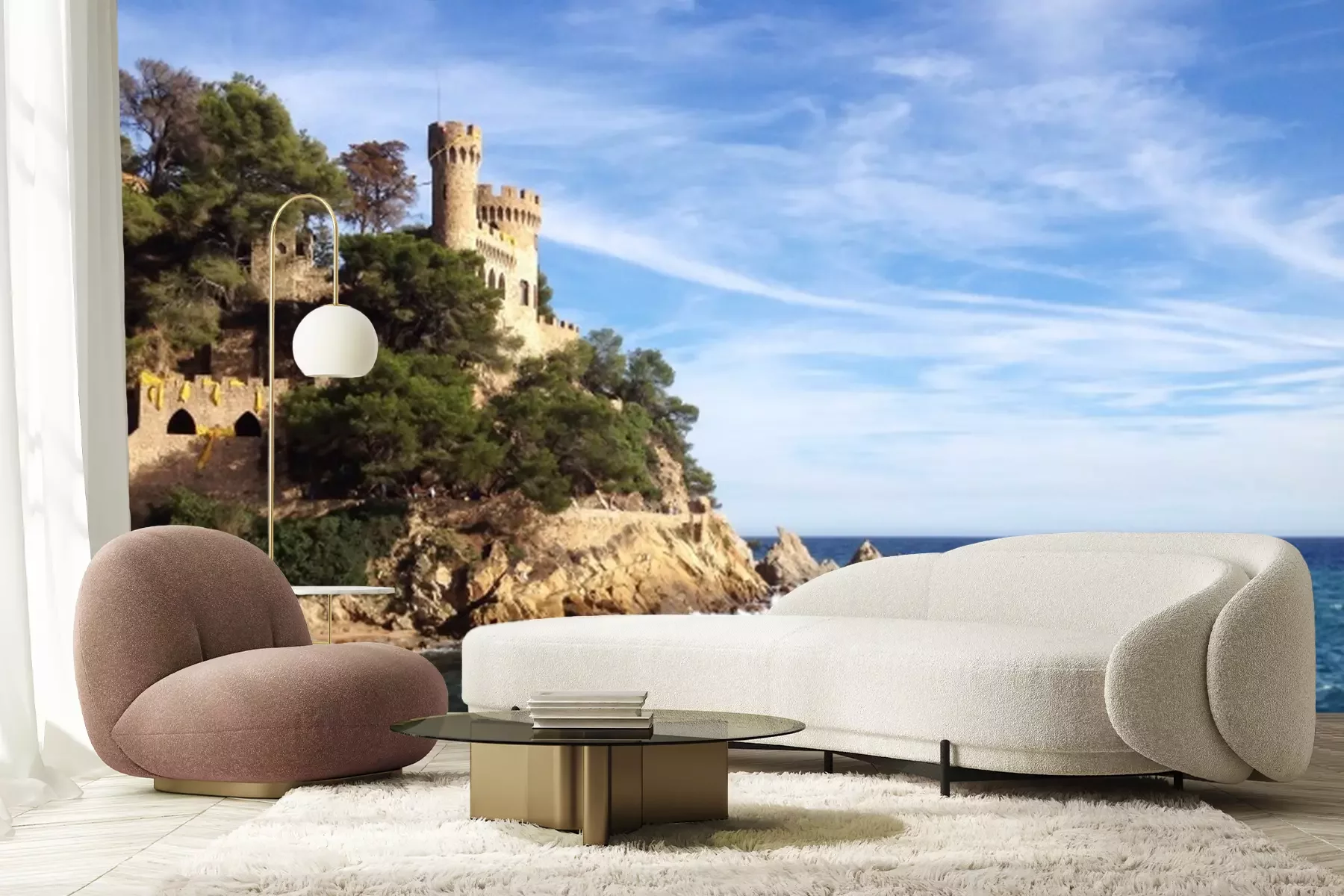 Papier peint  Mer et château sur les rochers