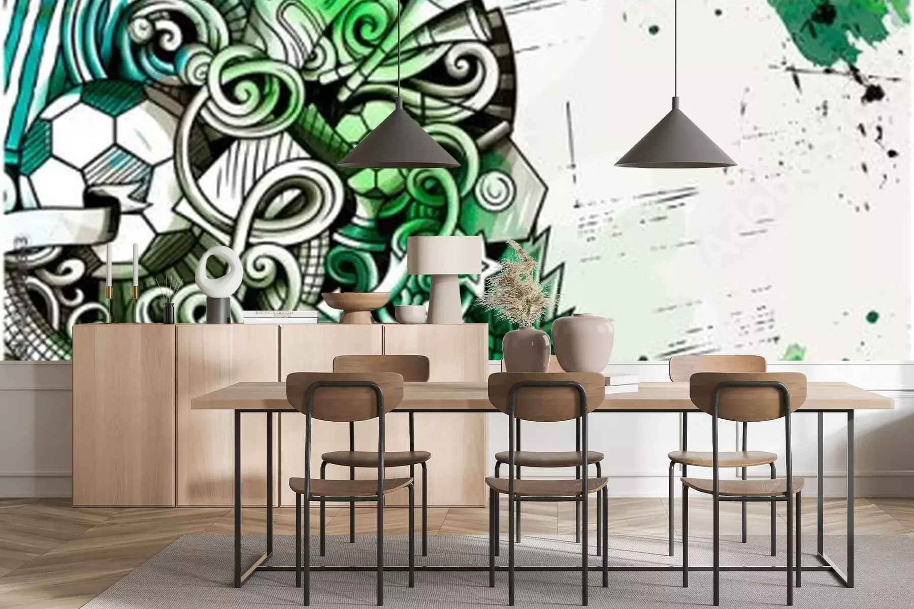 Papier peint  Modèle abstrait vert avec des symboles de football
