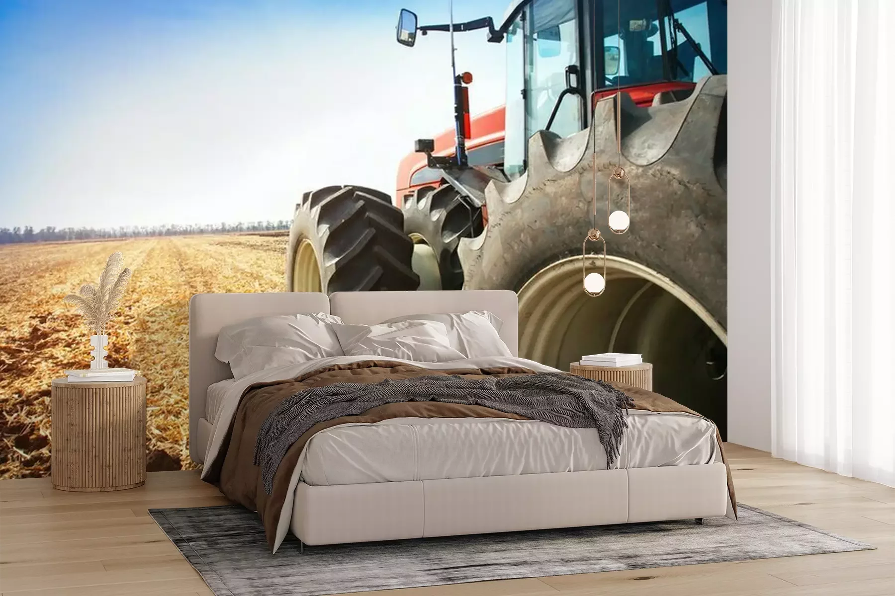 Papier peint  Moderne, rouge, tracteur, champ, gros plan