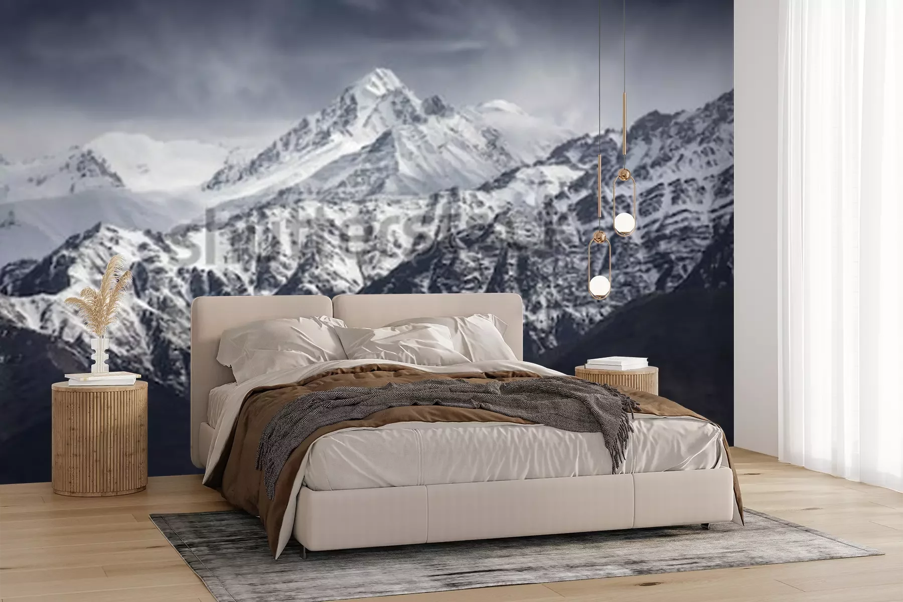 Papier peint  Montagnes enneigées aux couleurs sombres