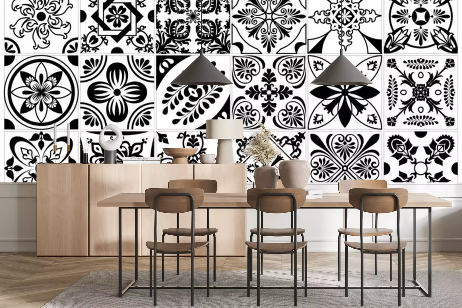 Papier peint  Mosaïque en noir et blanc dans des motifs orientaux