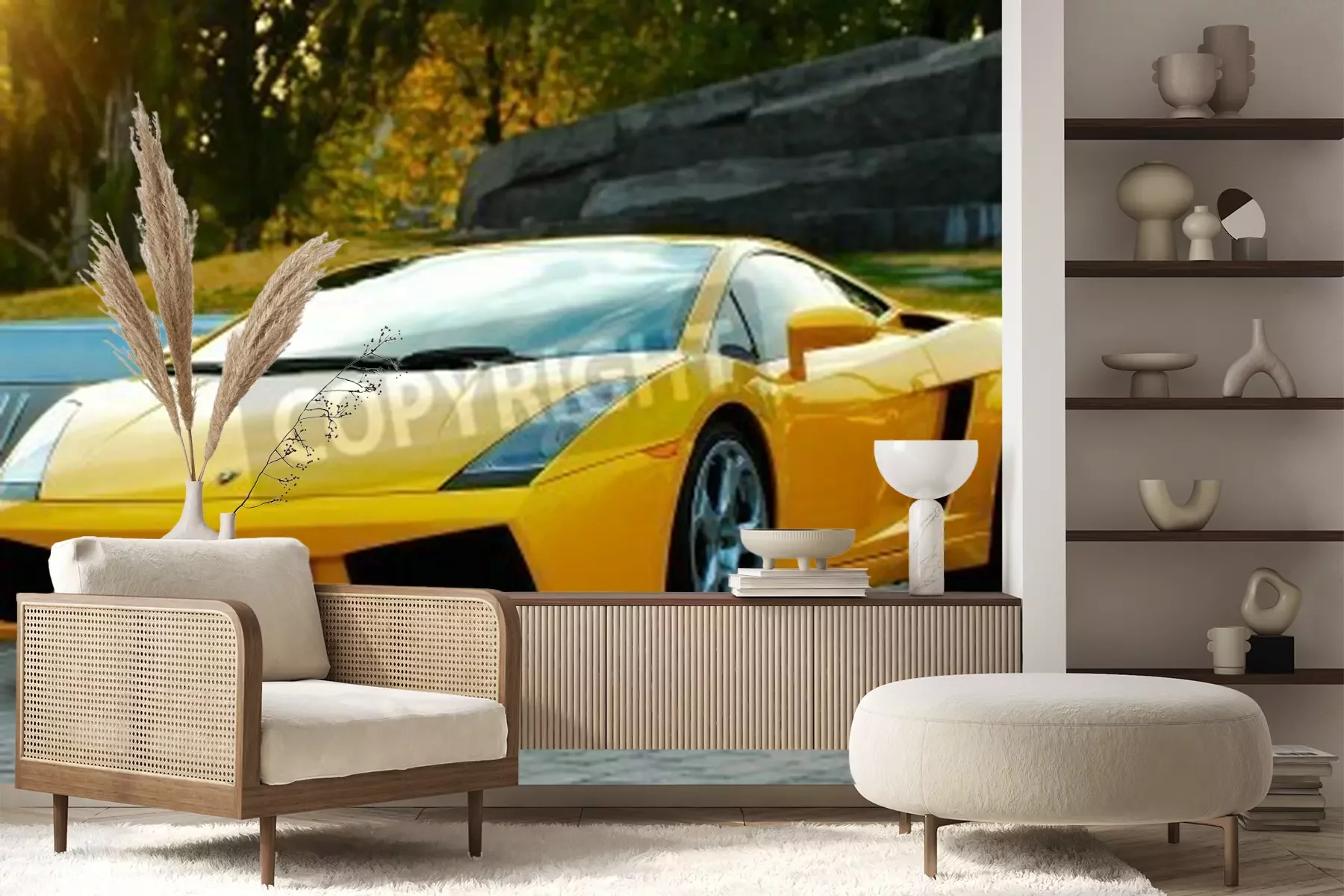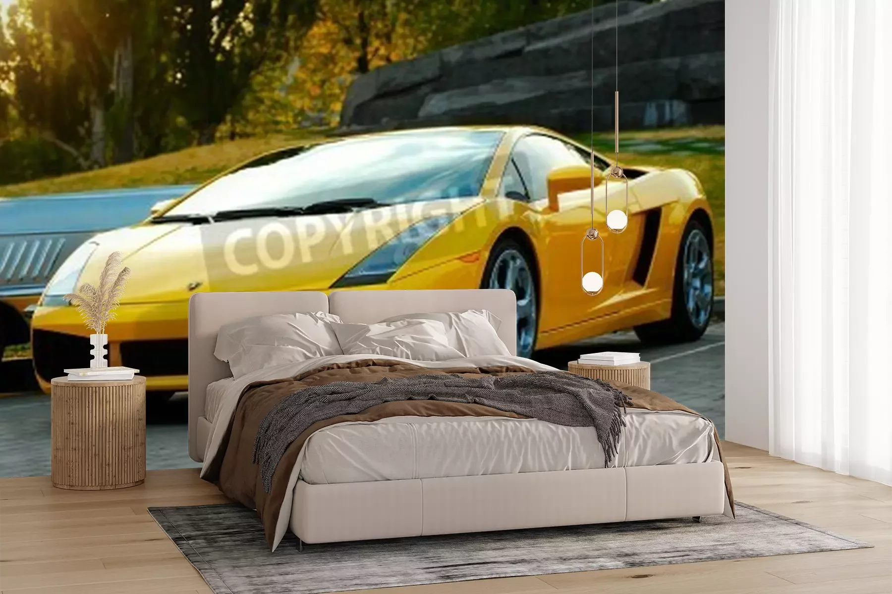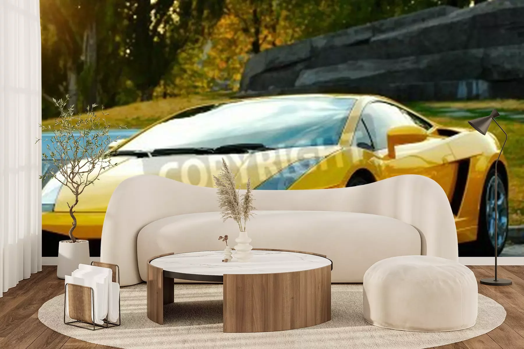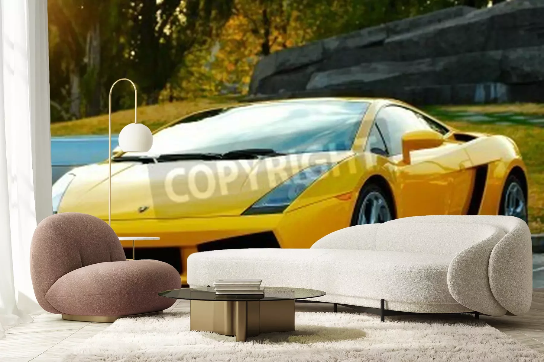 Papier peint  MOSCOU, RUSSIE JUILLET 31: jaune Lamborghini sur un parking exposition spectacle du Night Moscow Classic Rally 2010 'rétro-voitures sur Juillet 31,2010 à Moscou, Russie