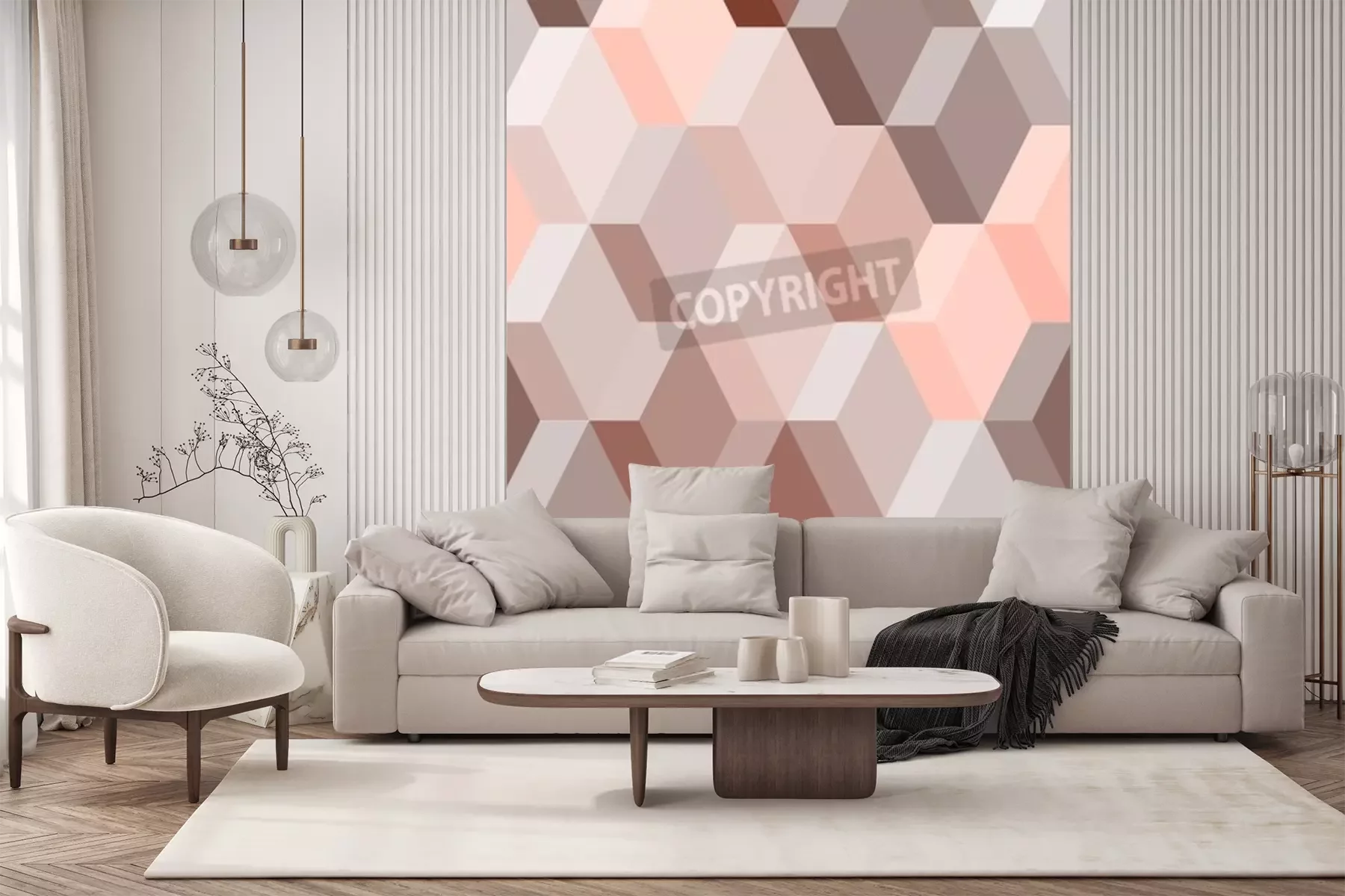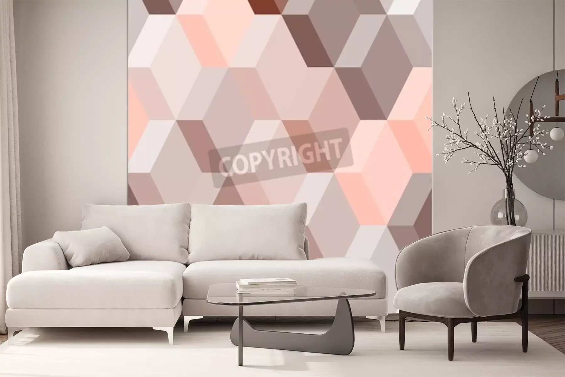 Papier peint  Motif 3D rose et marron