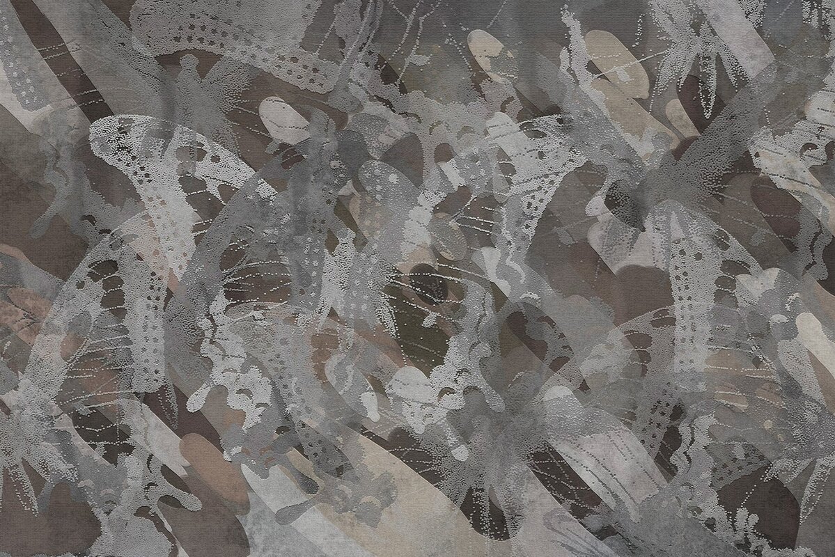 Papier peint : Motif abstrait avec des papillons dans des tons de gris et de brun motif moderne