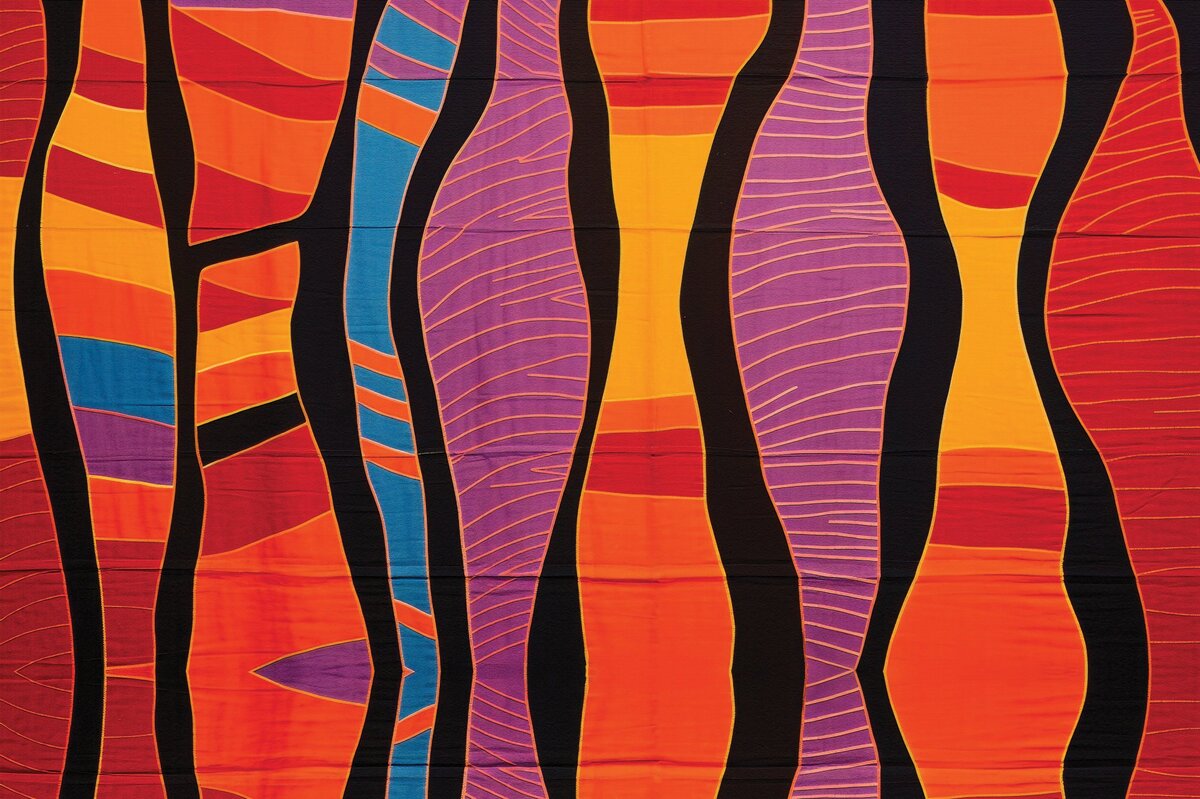 Papier peint : Motif abstrait de formes rouges et jaunes