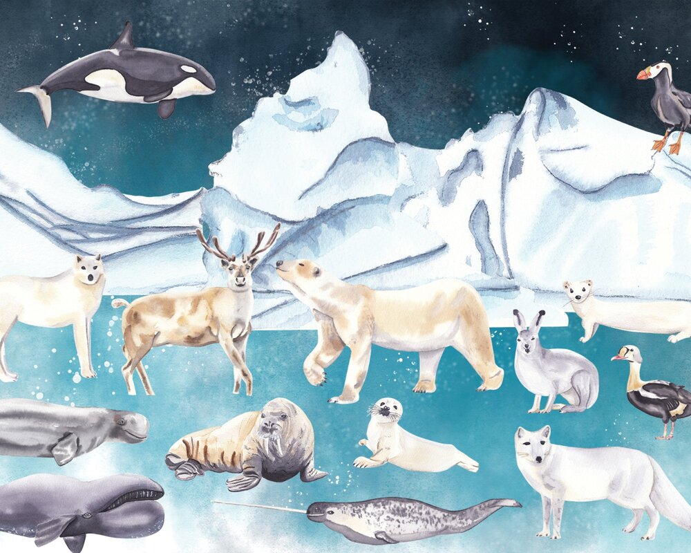 Papier peint : Motif d'animaux dans un pays des merveilles hivernal pour enfants