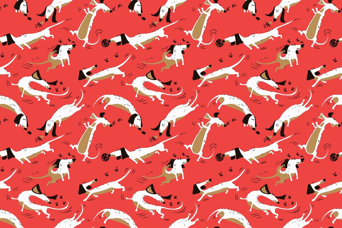 Motif de bande dessinée chiens sur fond rouge