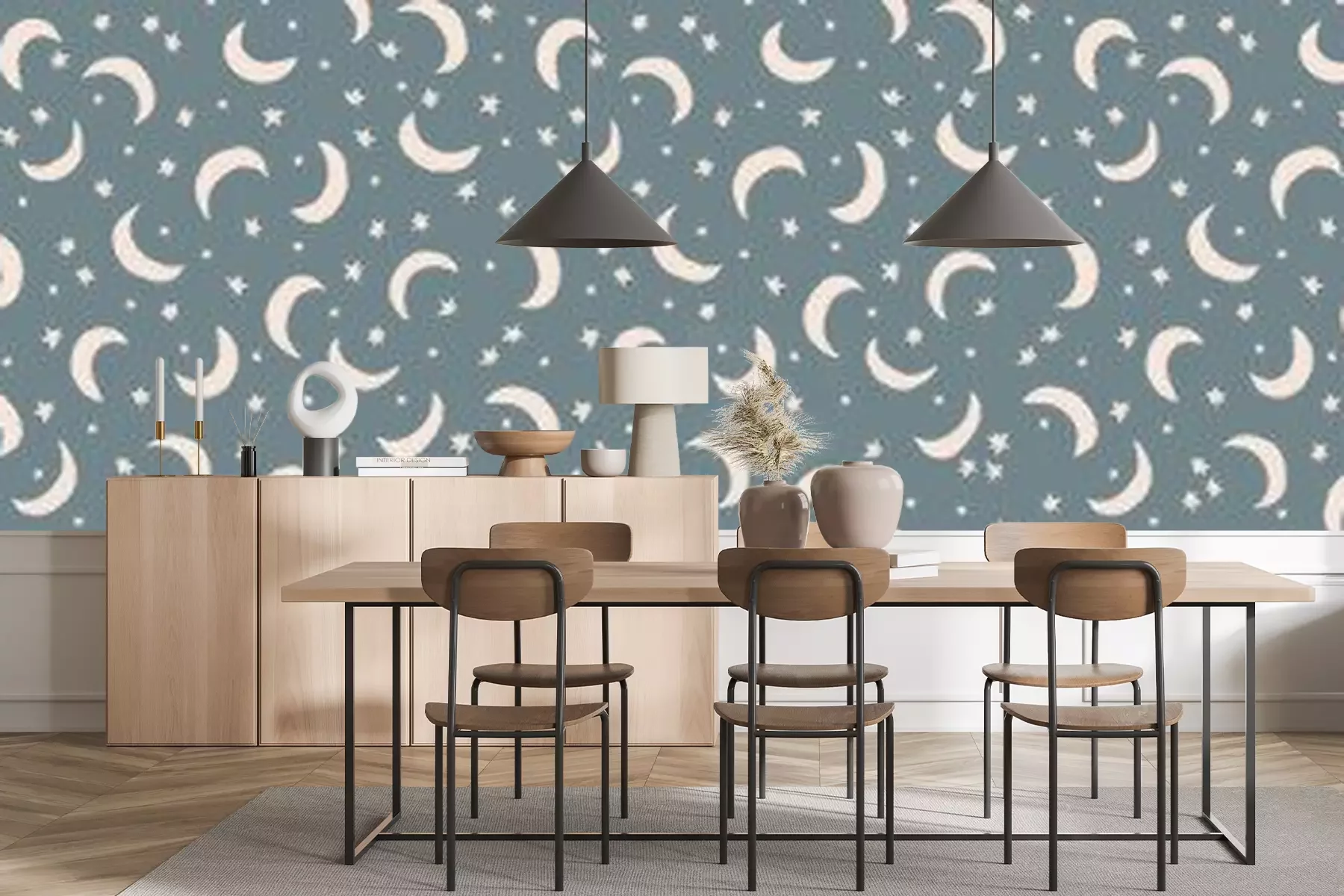 Papier peint  Motif de lunes minimalistes parmi les étoiles