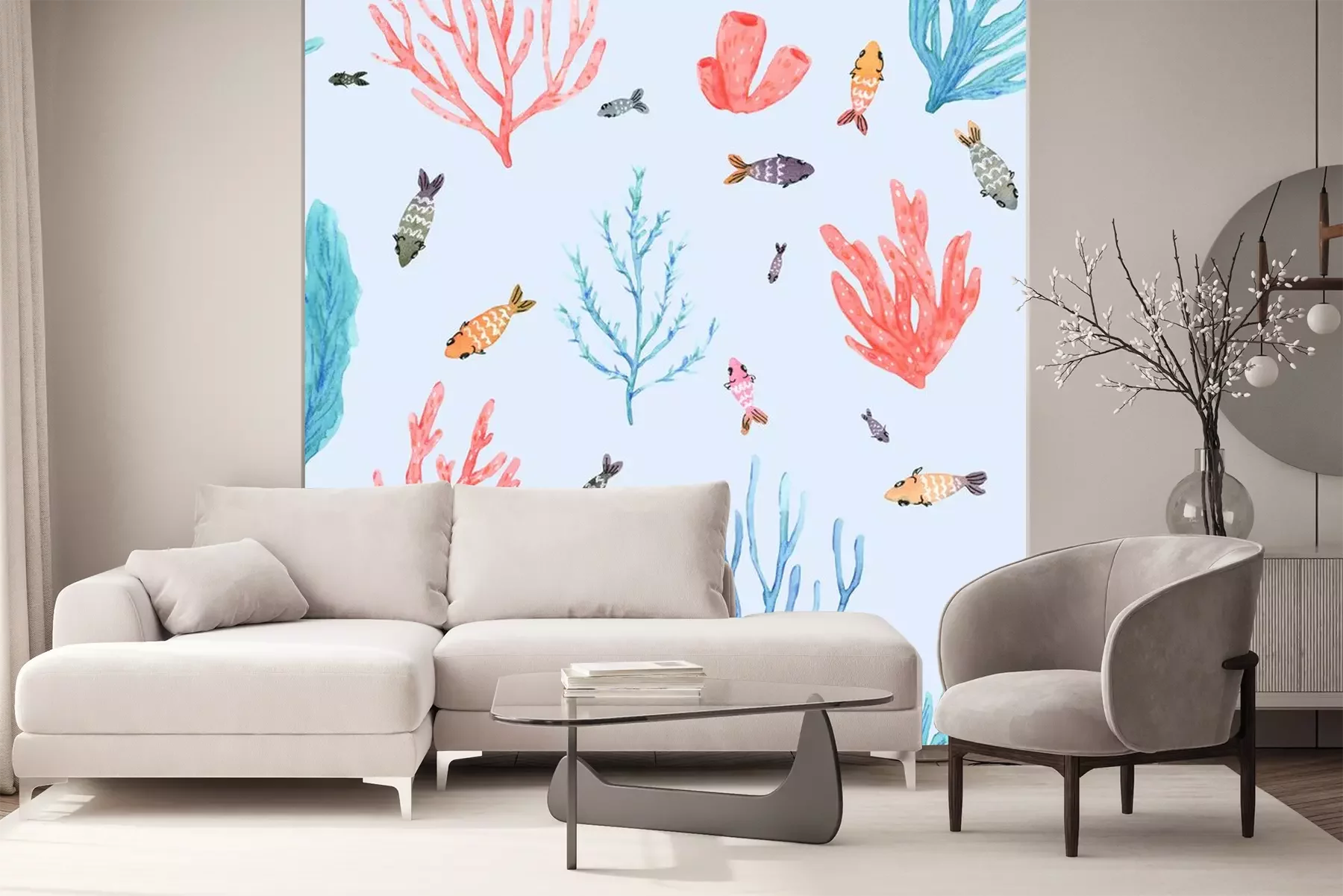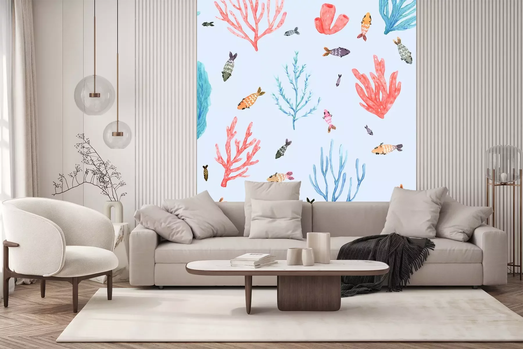 Papier peint  Motif de récif corallien sur fond bleu