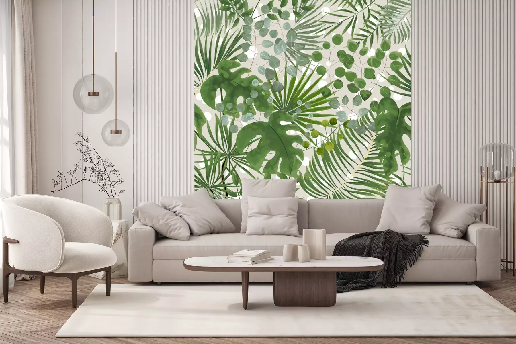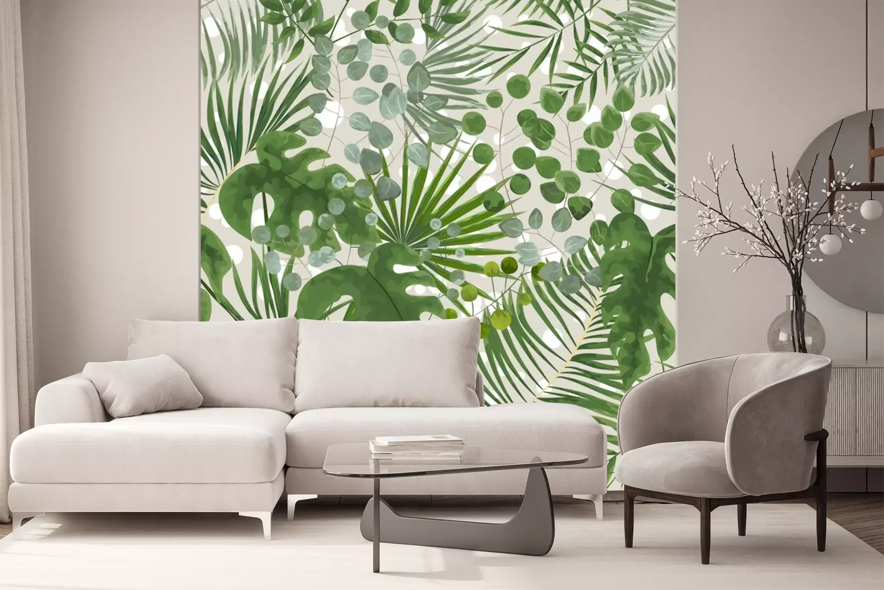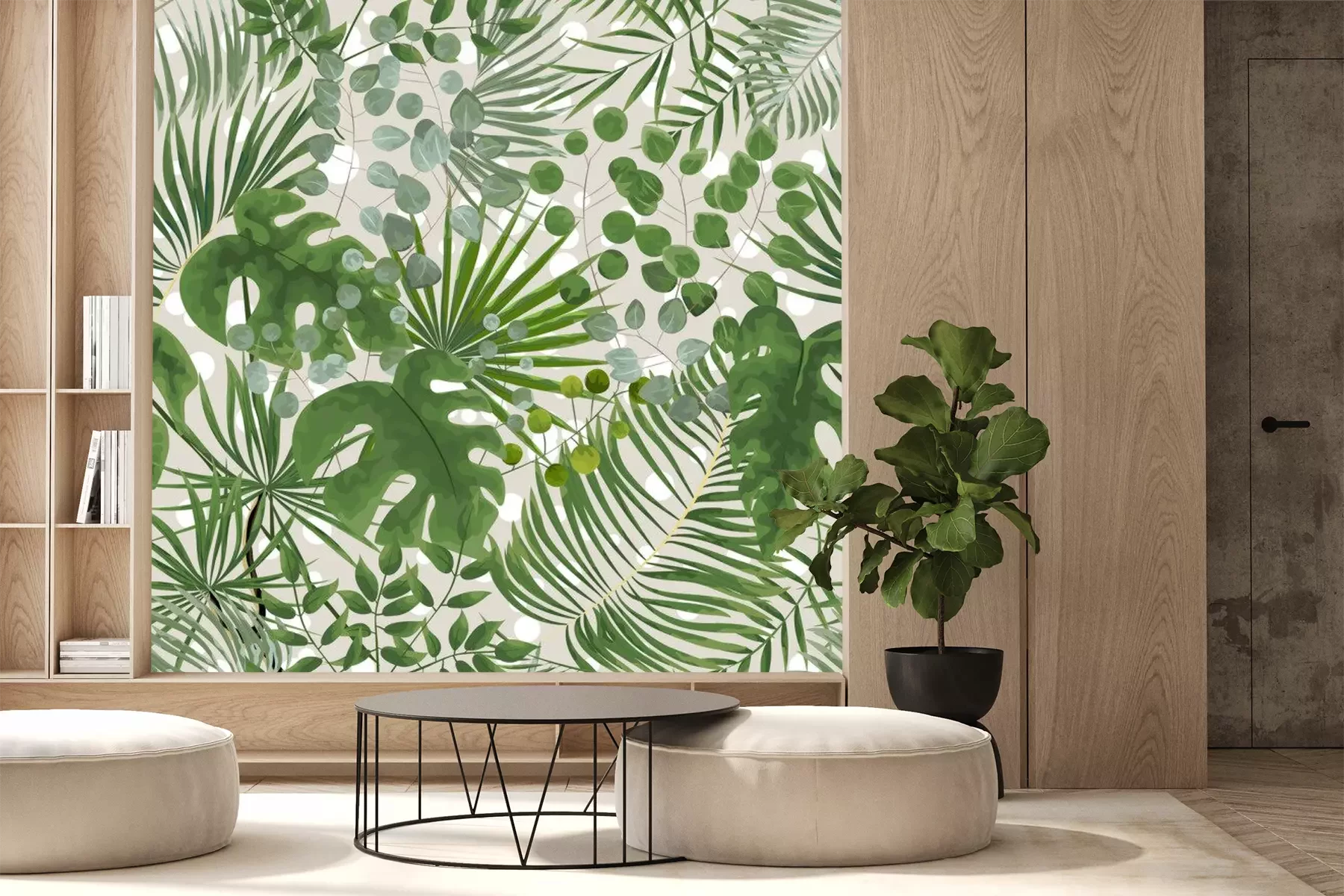 Papier peint  Motif moderne avec des feuilles tropicales vertes