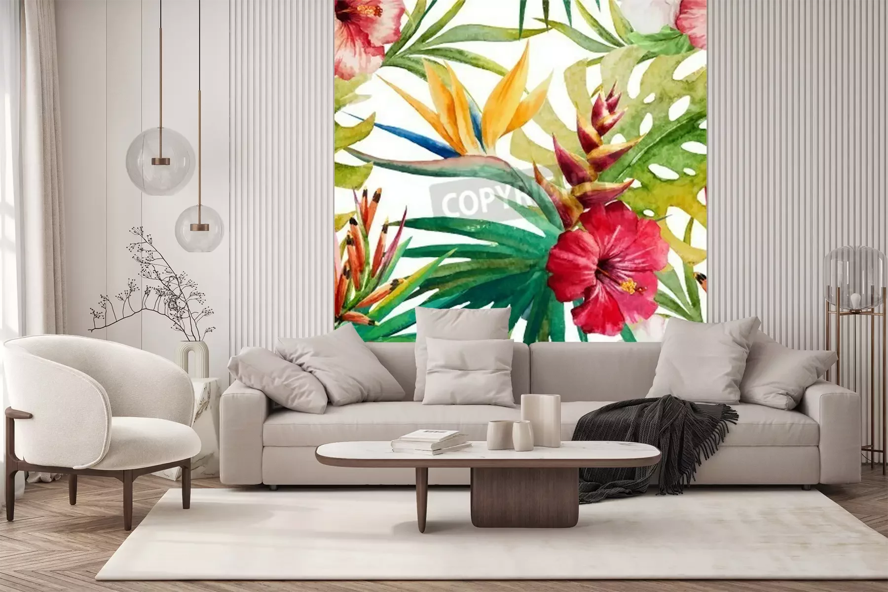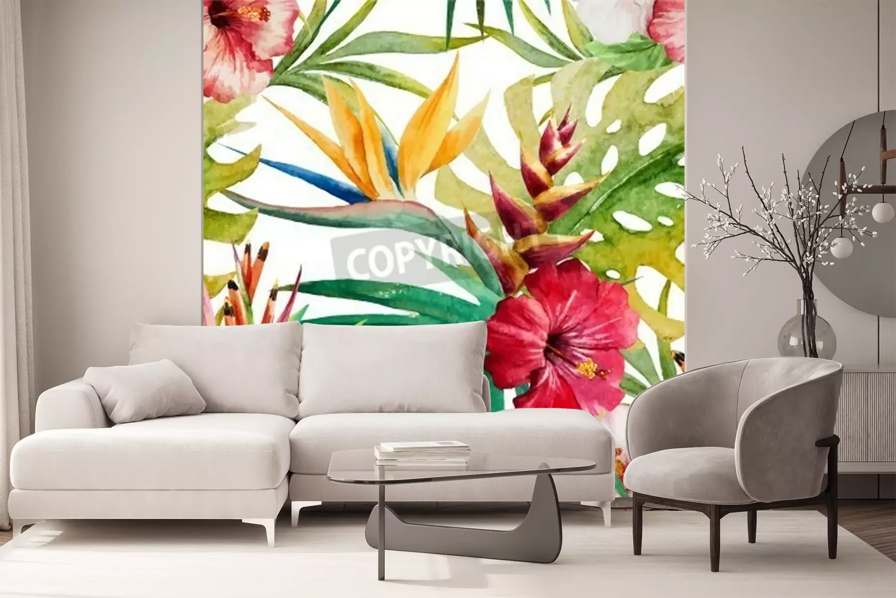 Papier peint  Motif naturel avec des fleurs