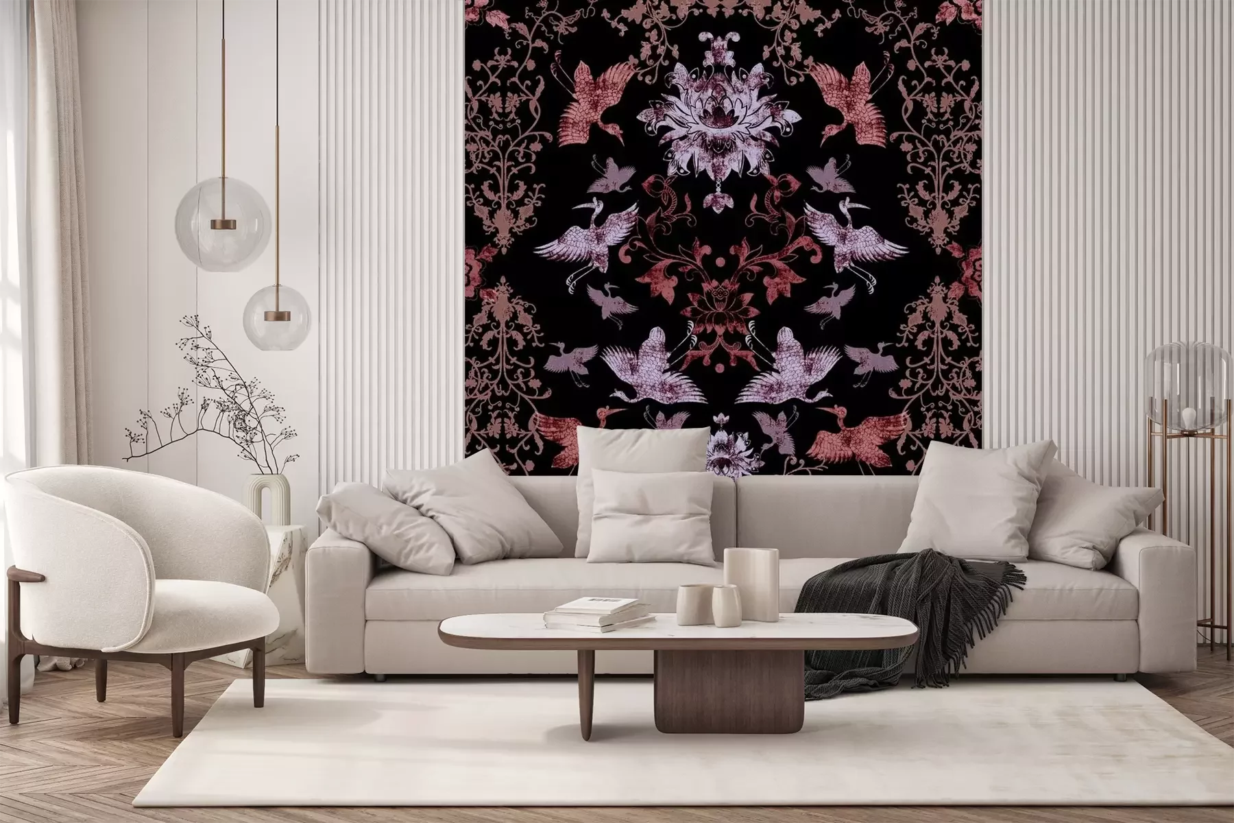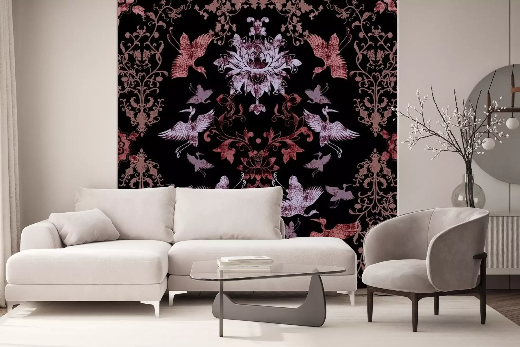 Papier peint  Motif oriental élégant avec des oiseaux