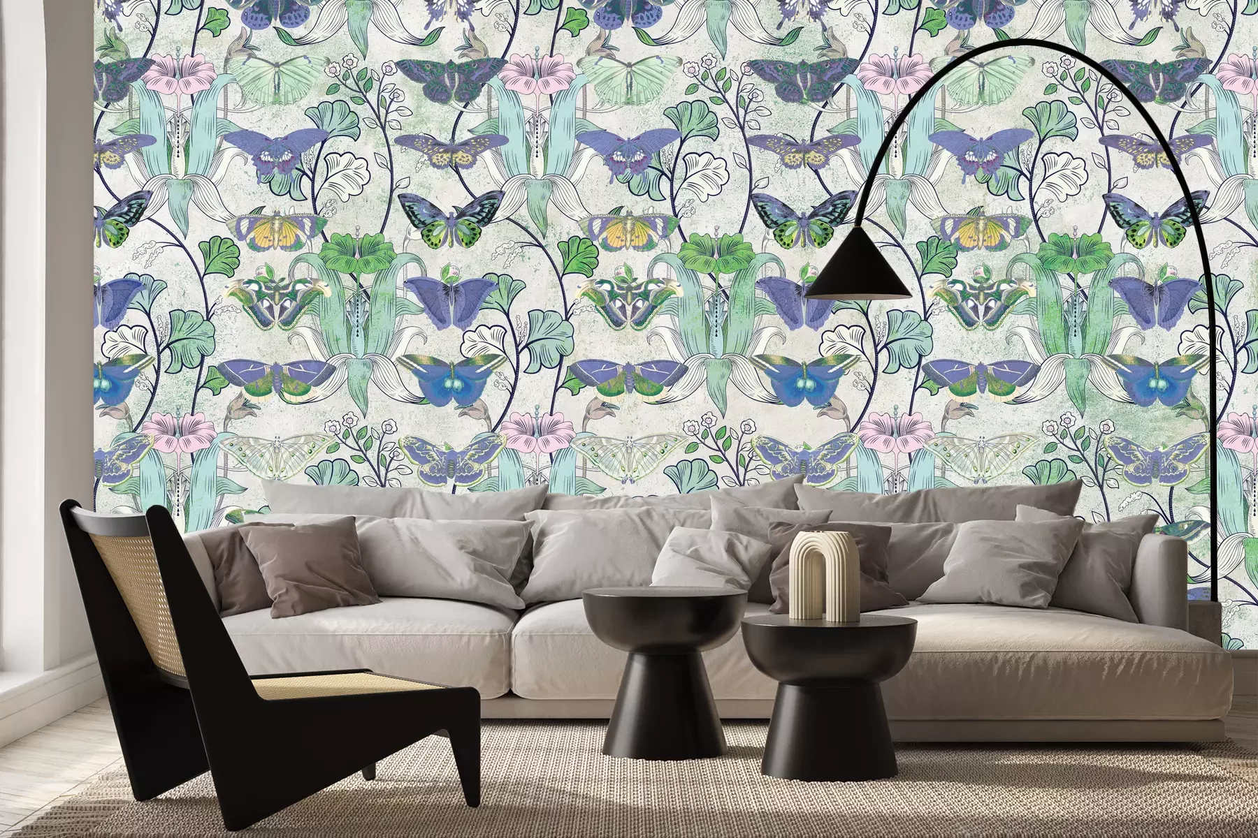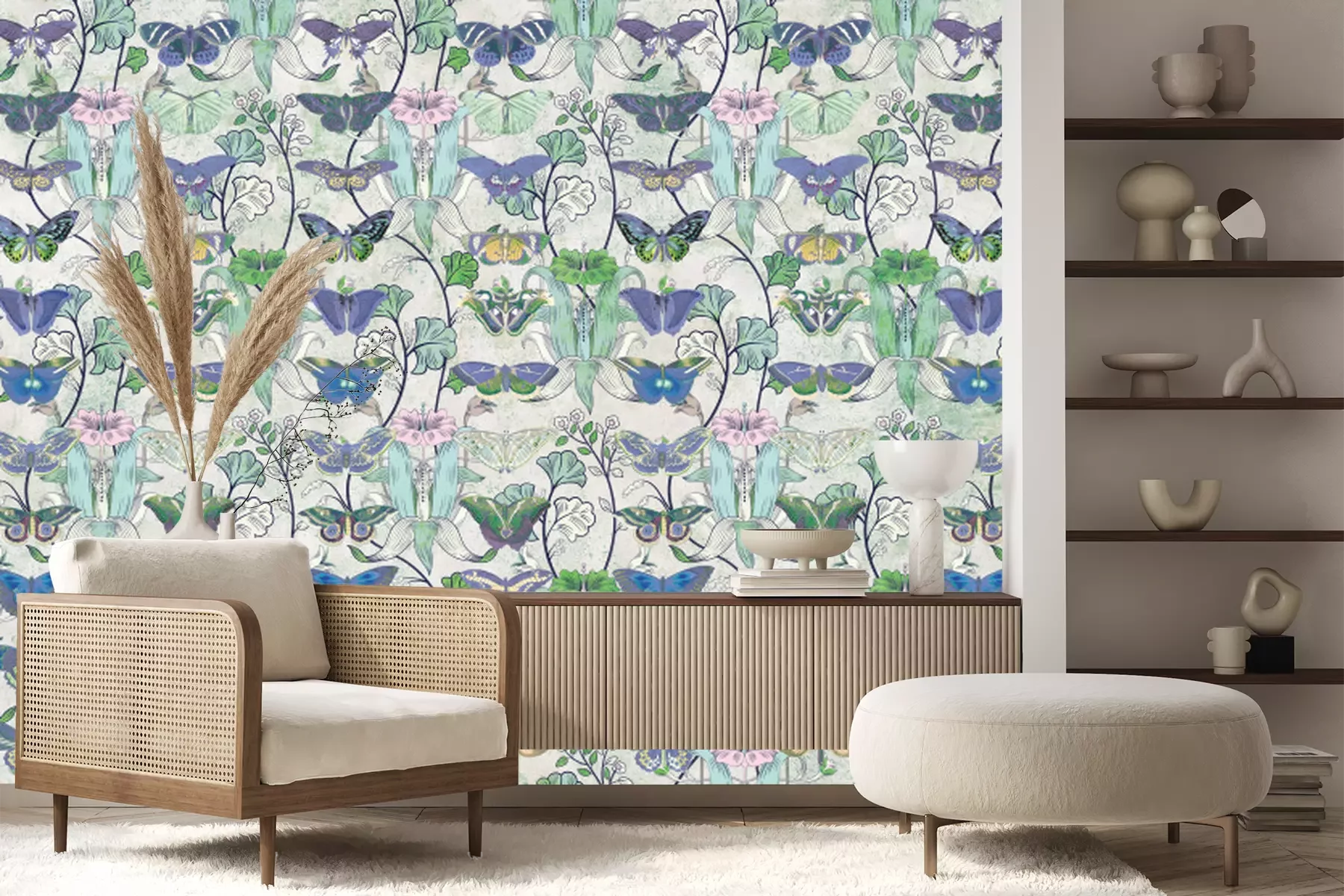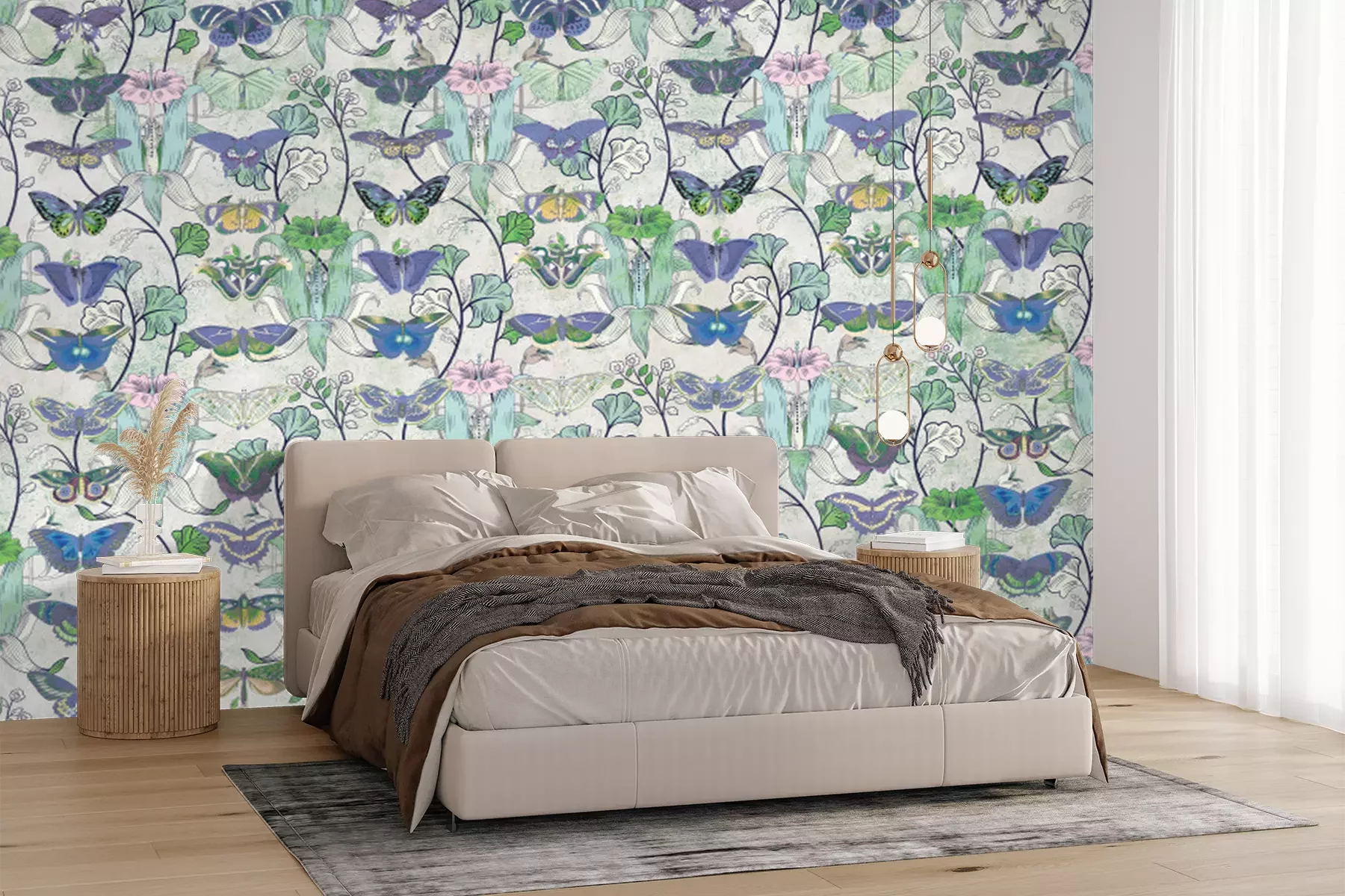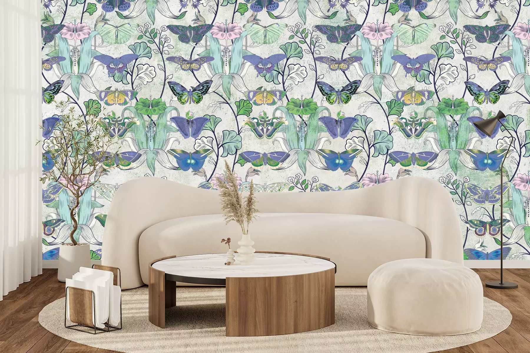 Motif papillons et plantes