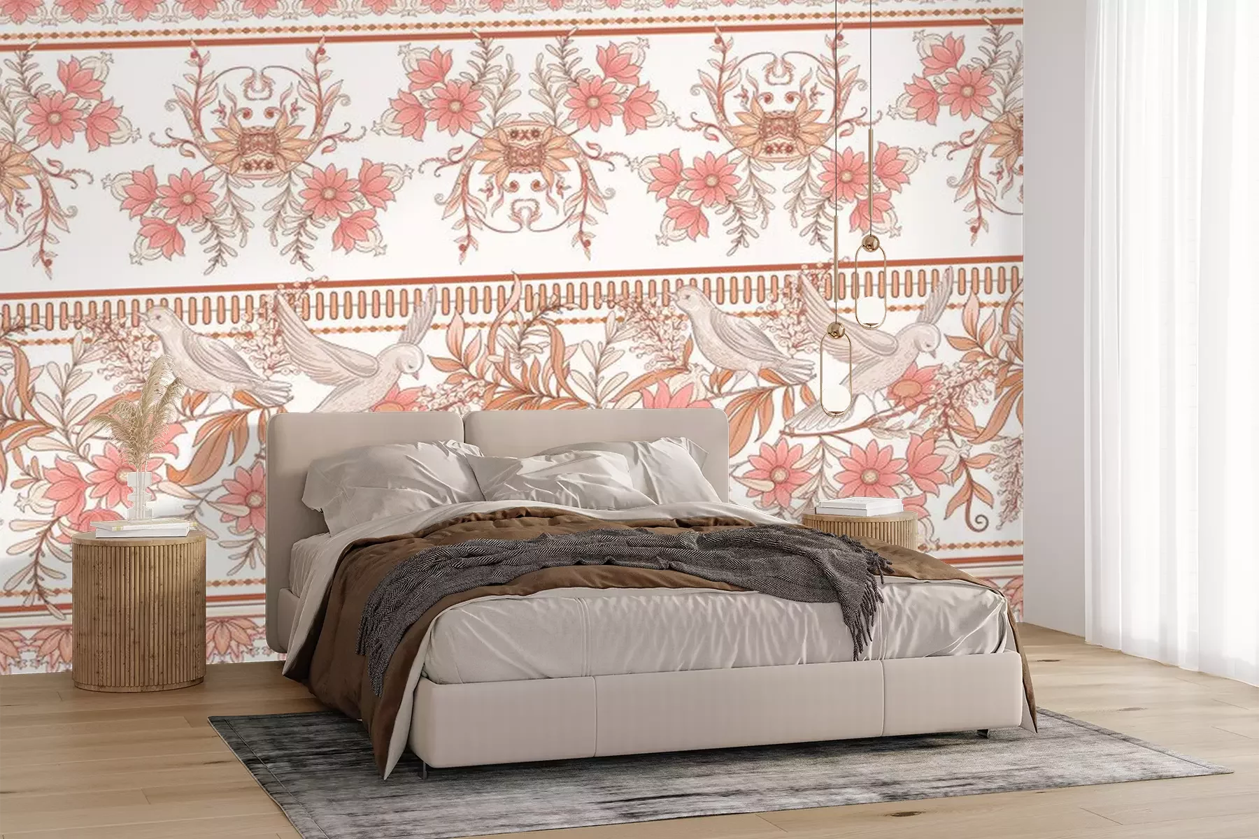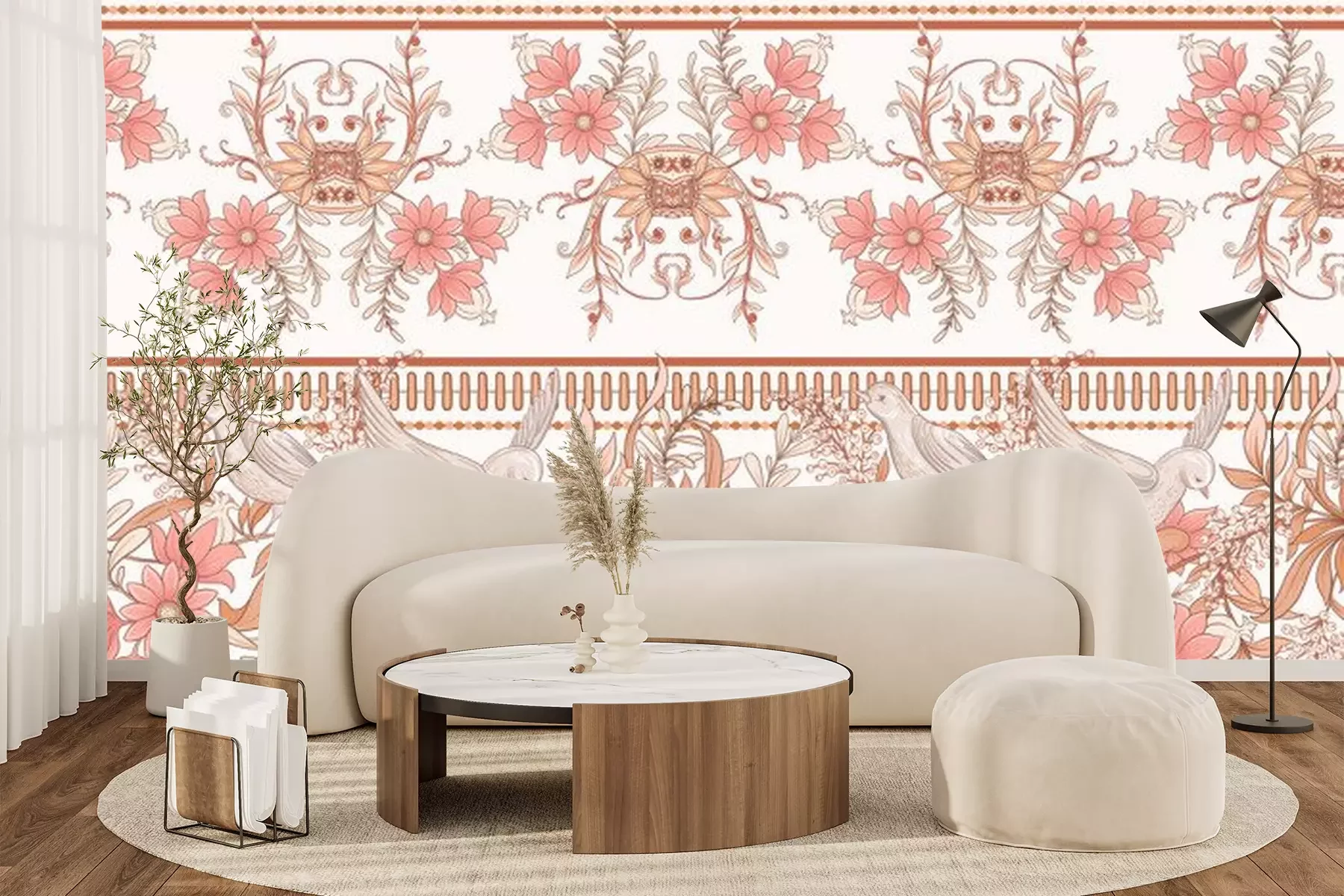 Papier peint  Motif rétro décoratif avec des oiseaux