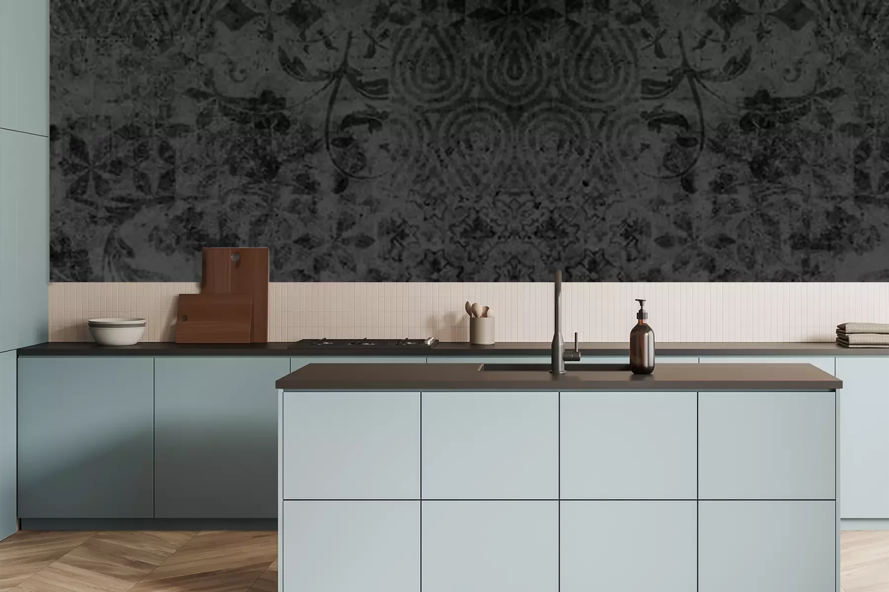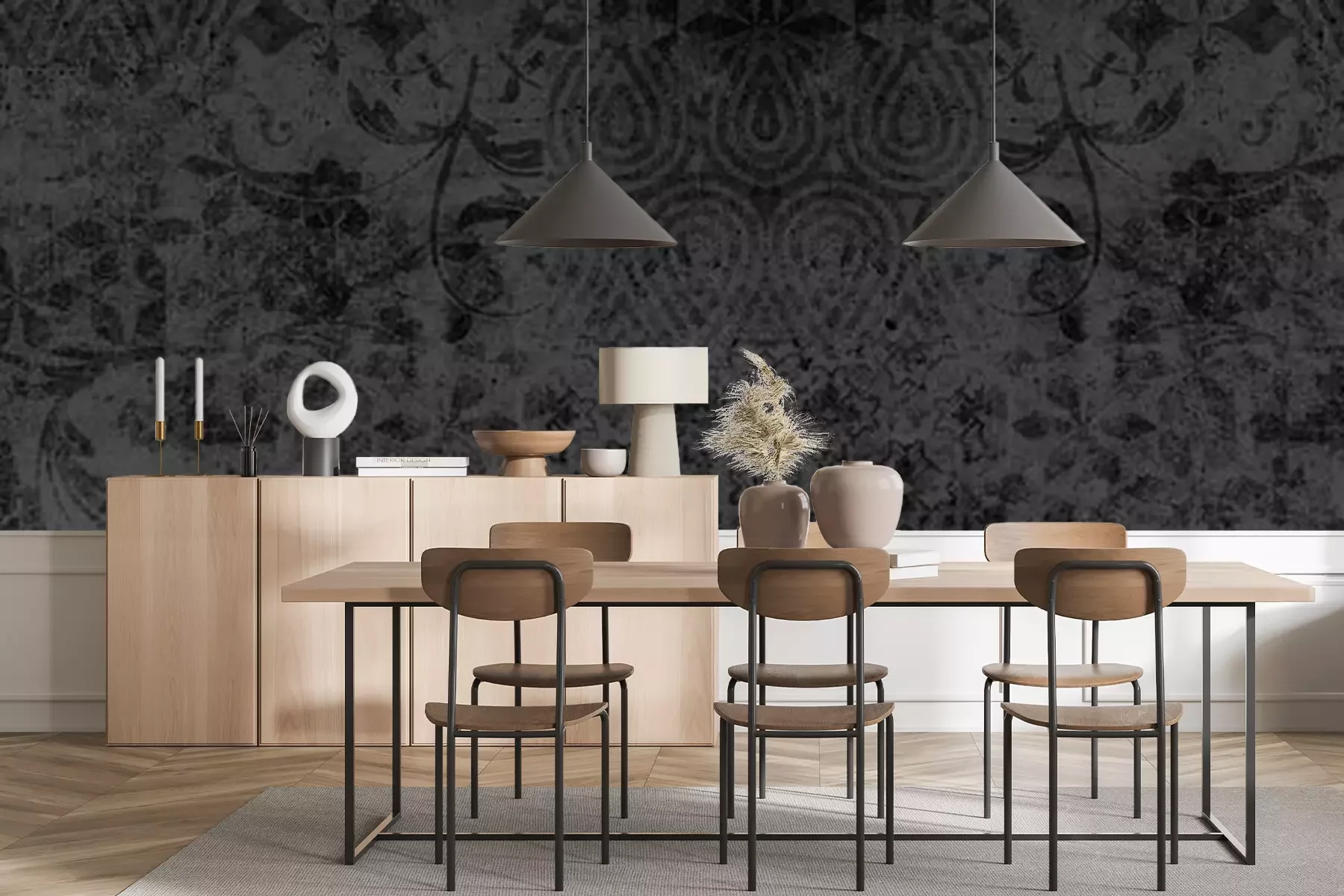 Papier peint  Motifs floraux sombres sur un fond de béton